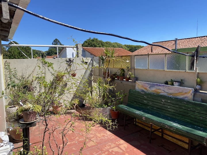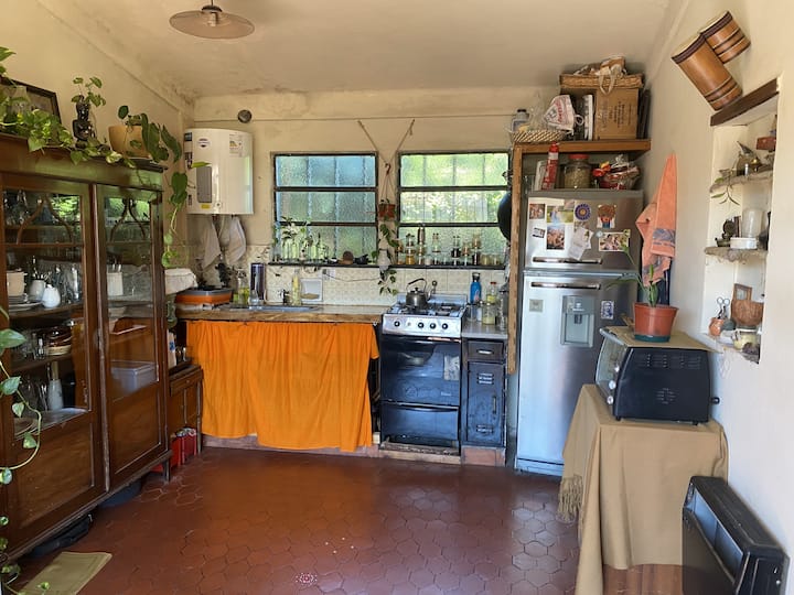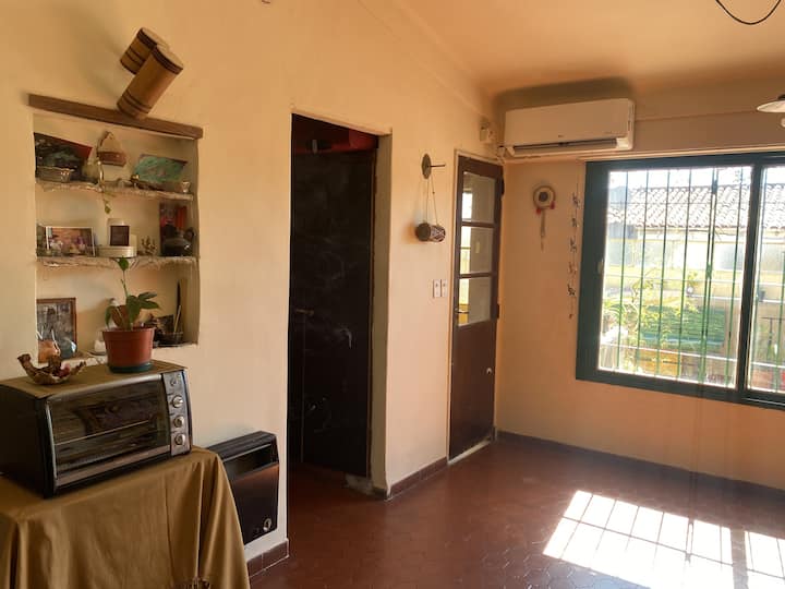 Kitnet em Saavedra com terraço e área tranquila. Conta com 1 cama, cozinha, geladeira e máquina de lavar. Acesso a um parque a 50 metros.