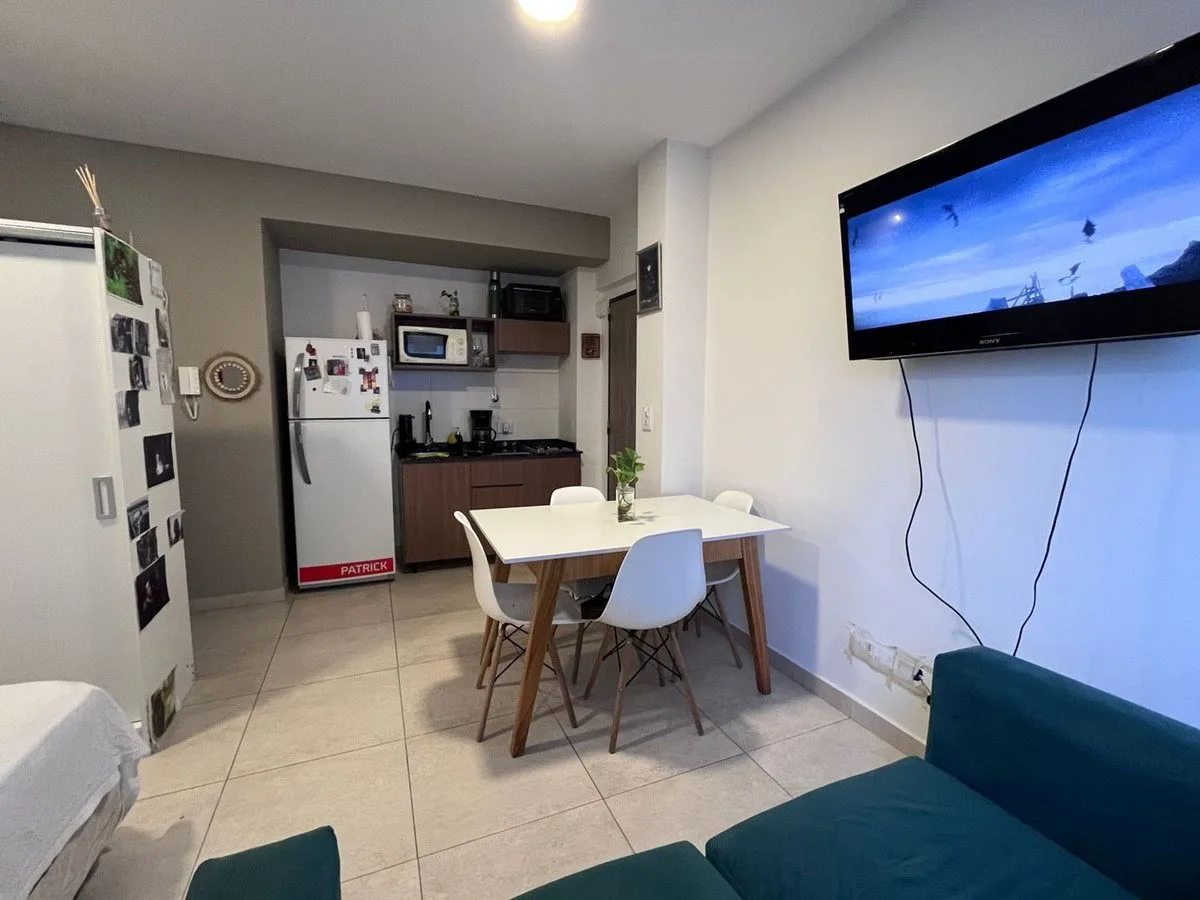 Kitnet para aluguel em San Cristóbal, em edifício com 3 anos de antiguidade. Unidade no 5º andar, com vista para o miolo de quadra e 24 m². O banheiro é compartimentado e tem espaço para máquina de lavar. A unidade possui pré-instalação para ar-condicionado, estufa a gás tipo tiro balanceado, cooktop elétrico embutido e aquecedor de água elétrico. O prédio tem salão de festas com churrasqueira e é apto para uso profissional.