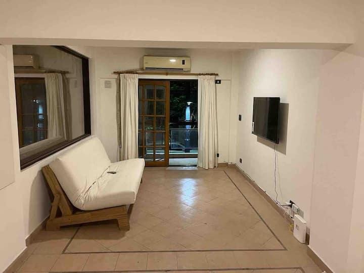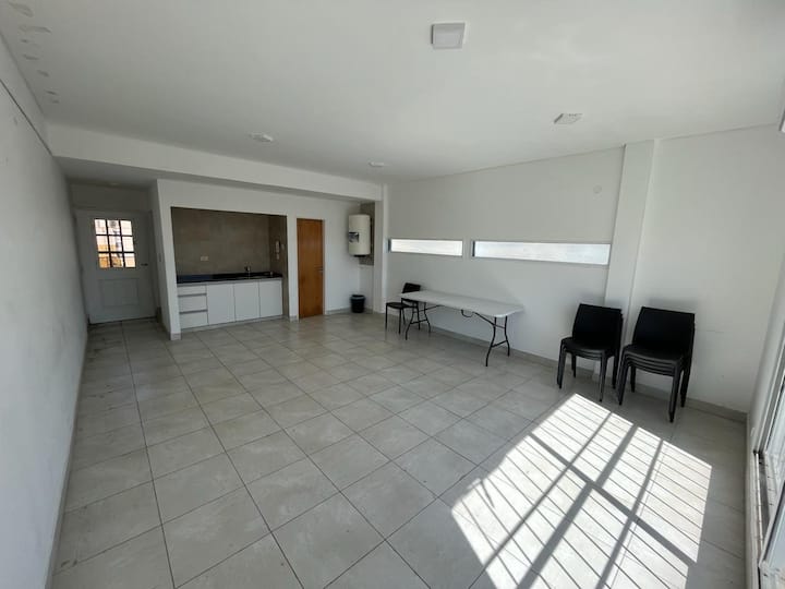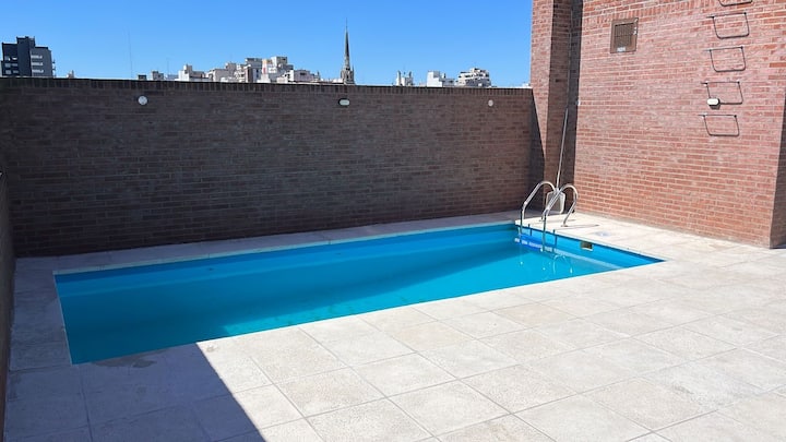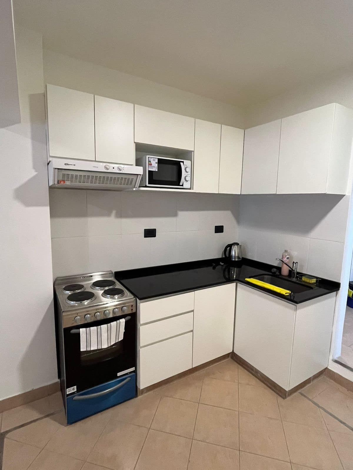 Apartamento de 1 quarto com 65 m² em San Cristóbal, no último andar, com varanda de frente para a rua. A unidade tem sala integrada à cozinha, um banheiro completo com chuveiro e um banheiro privativo sem chuveiro, além de varanda para a rua. O prédio é novo e dispõe de piscina entre dezembro e março, área de churrasqueira e salão de usos múltiplos (SUM), mediante reserva e conforme disponibilidade, com regras de acesso diárias e limpeza regular em dias específicos.