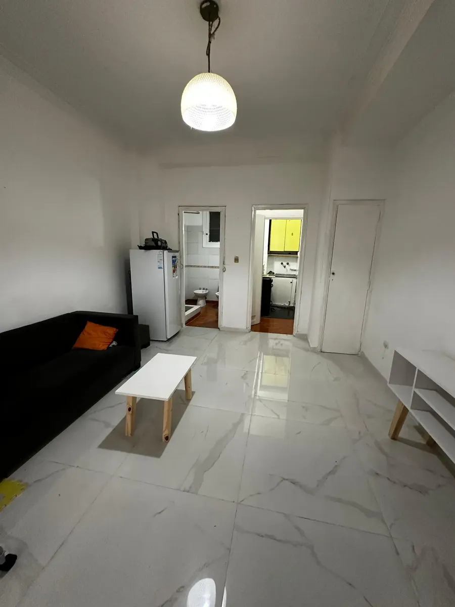 Kitnet para alugar em San Cristóbal, no contrafrente de Carlos Calvo 1885, com pátio privativo. Unidade reformada, com ambiente único amplo, pisos de porcelanato e paredes recém-pintadas. Cozinha independente reformada, com área para lavanderia, e banheiro grande completo. Inclui Wi-Fi, Aysa, ABL e eletricidade; gás por conta do locatário.