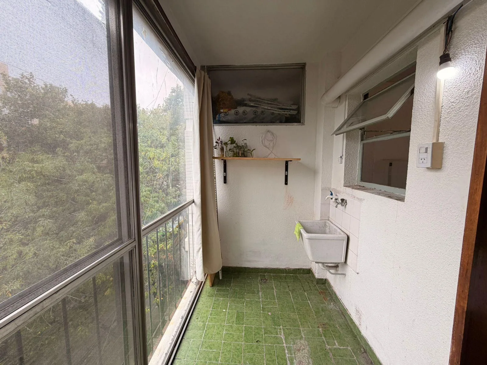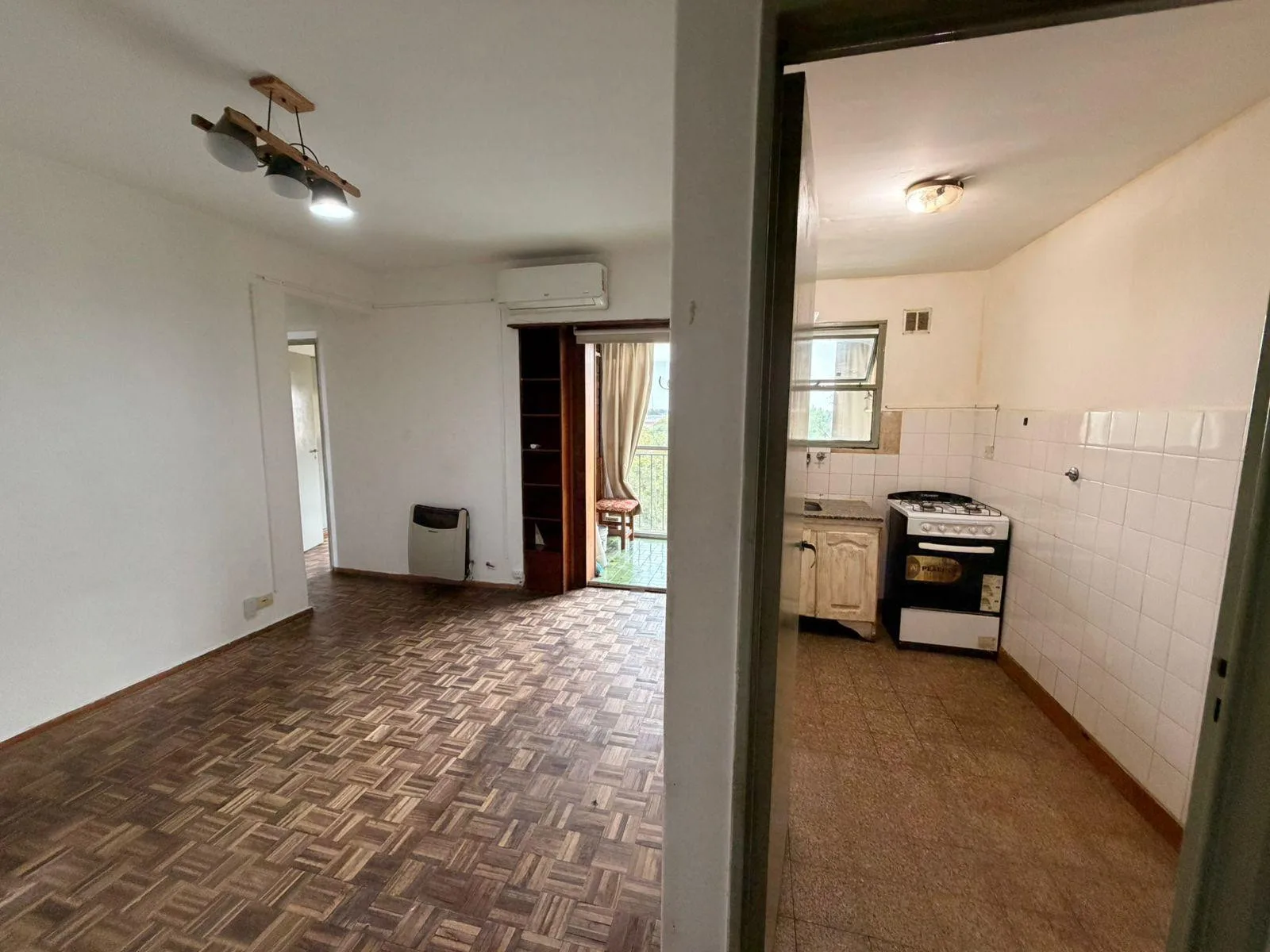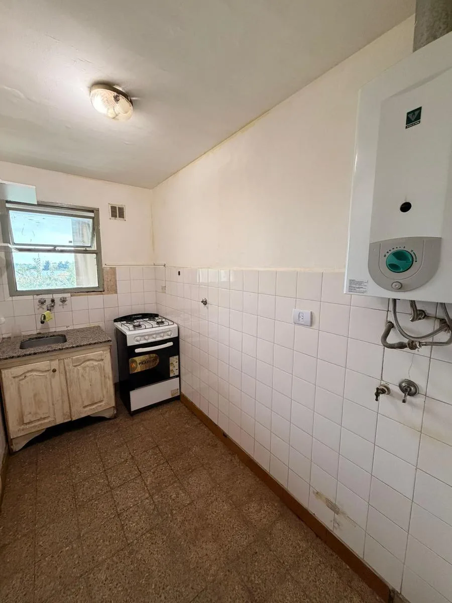 Apartamento de 2 ambientes no 4º andar, de frente para a avenida. Possui sala de estar e jantar com piso de madeira, ar-condicionado frio e quente, cozinha independente com aquecedor a gás (calefón) e aquecimento por estufas a gás. Conta com varanda com fechamento, área de lavanderia, quarto com armário e banheiro com banheira. Contrato de 24 meses, com reajuste trimestral pelo IPC. Condomínio de 130.000, ABL de 55.200 e AYSA de 20.300.