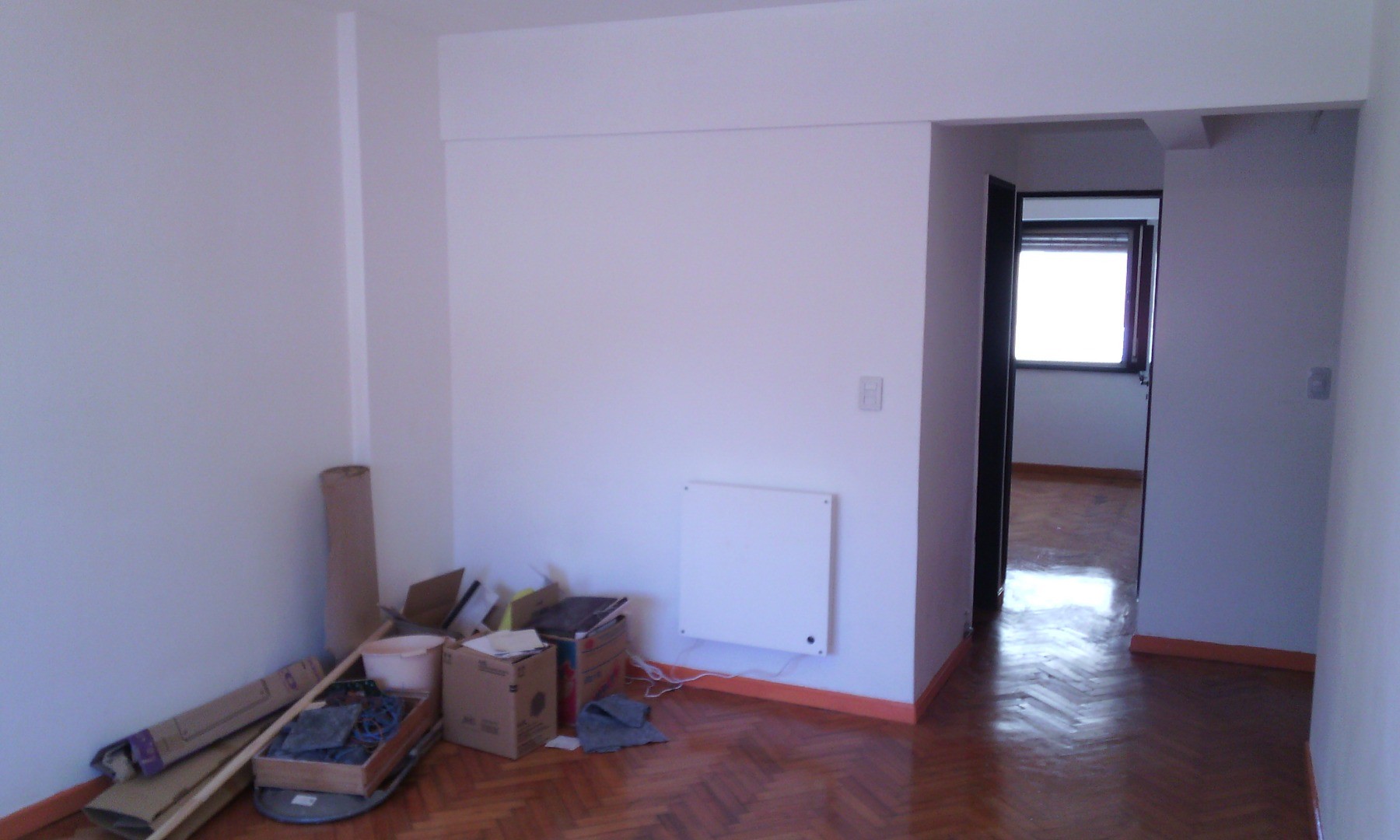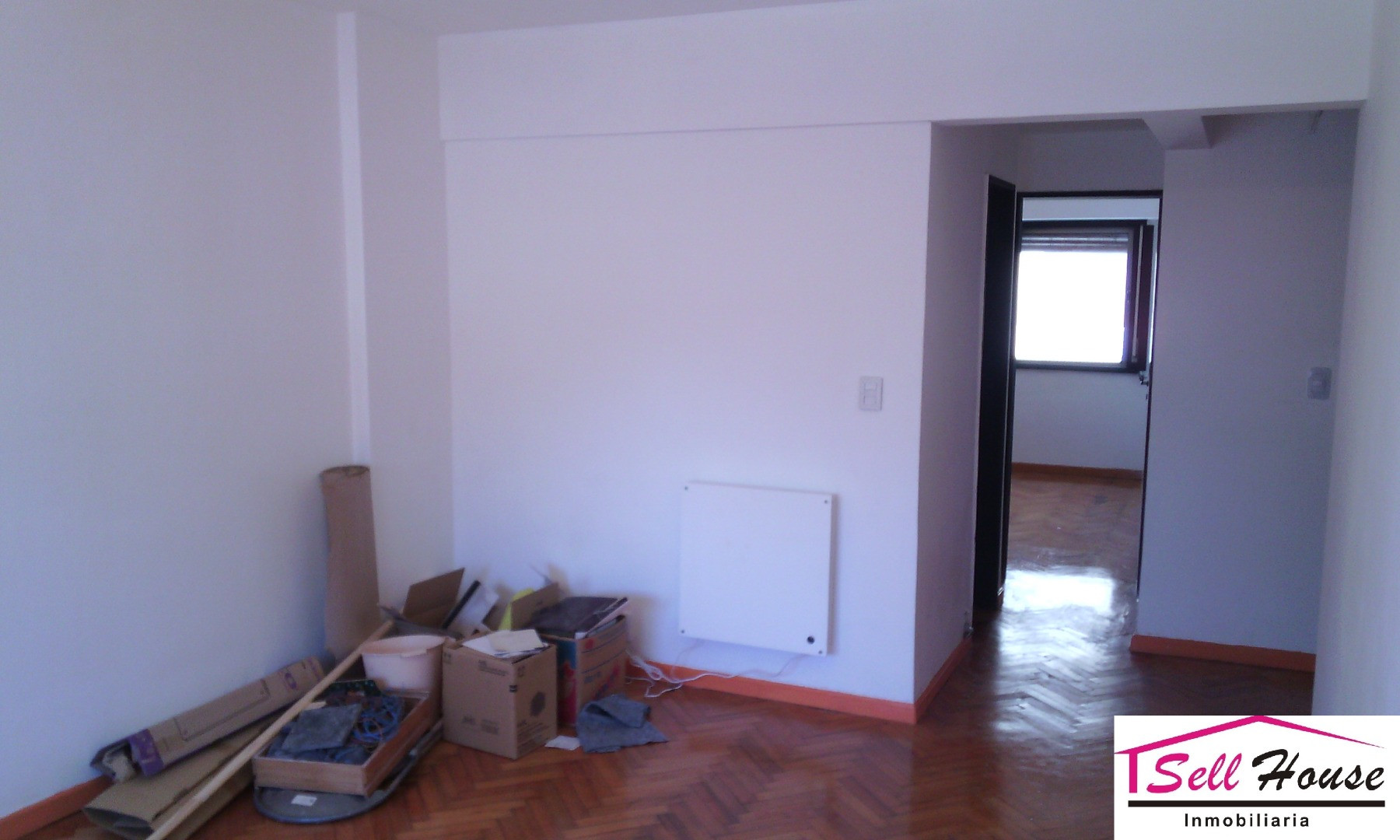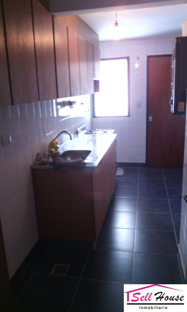 Apartamento de 2 ambientes sem varanda em San Fernando, tipo semipiso, com 1 quarto e mobiliário planejado. Sala de estar e jantar com placa Ecosol, dormitório com armário embutido e cozinha alongada com área de serviço incorporada. Possui entrada dupla, com acesso privativo pelo hall e entrada de serviço pela cozinha.