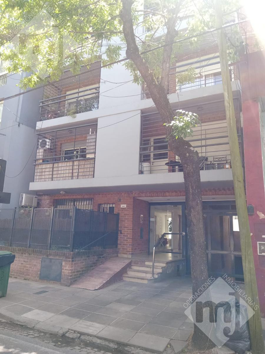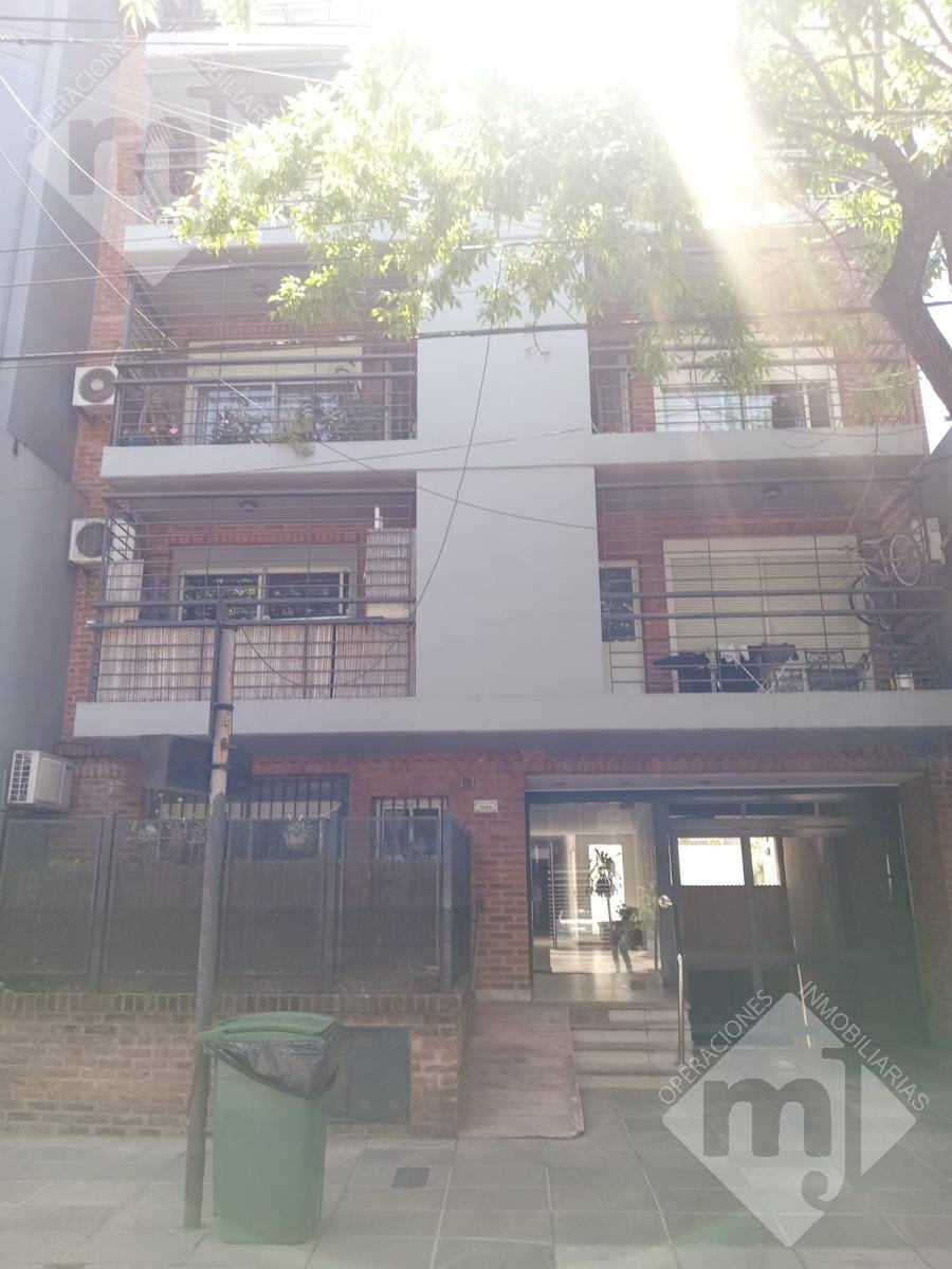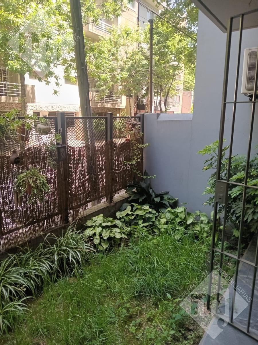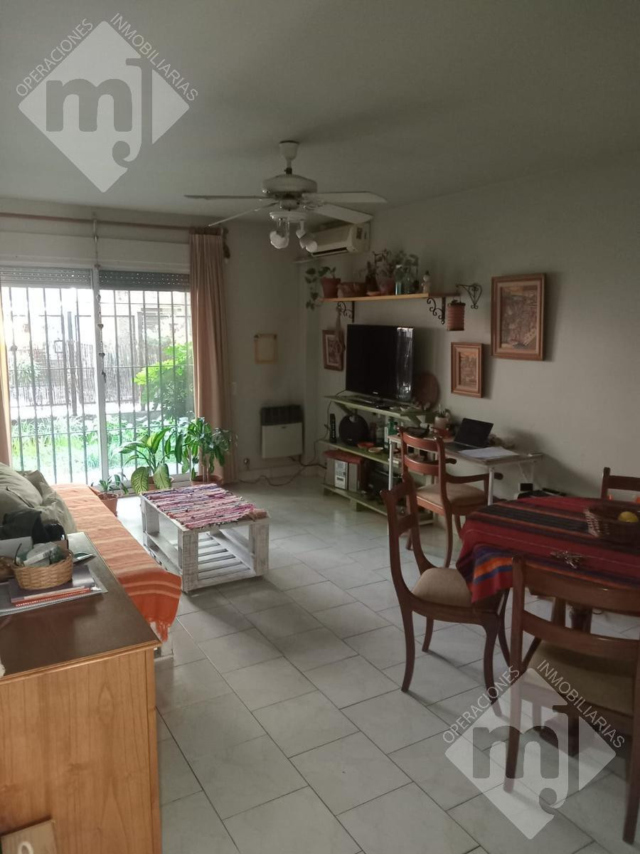 Apartamento térreo em San Fernando, com 1 quarto. Fica em avenida Perón, a poucos metros de Necochea, e tem living com área de jantar com saída para jardim voltado para a rua. Inclui cozinha com armários superiores e inferiores, banheiro, quarto com grande armário e saída para pátio interno, onde fica o lavadero coberto.