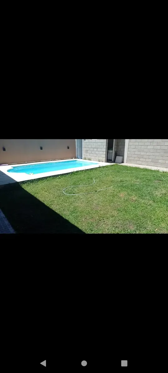 Casa tipo quinta em San Fernando com piscina, parque, 2 banheiros e área de churrasco. Capacidade informada de até 25 pessoas, com freezer e cozinha/utensílios completos incluídos, além de mesas e cadeiras. A música ambiente é permitida, com respeito aos vizinhos, sem música alta.