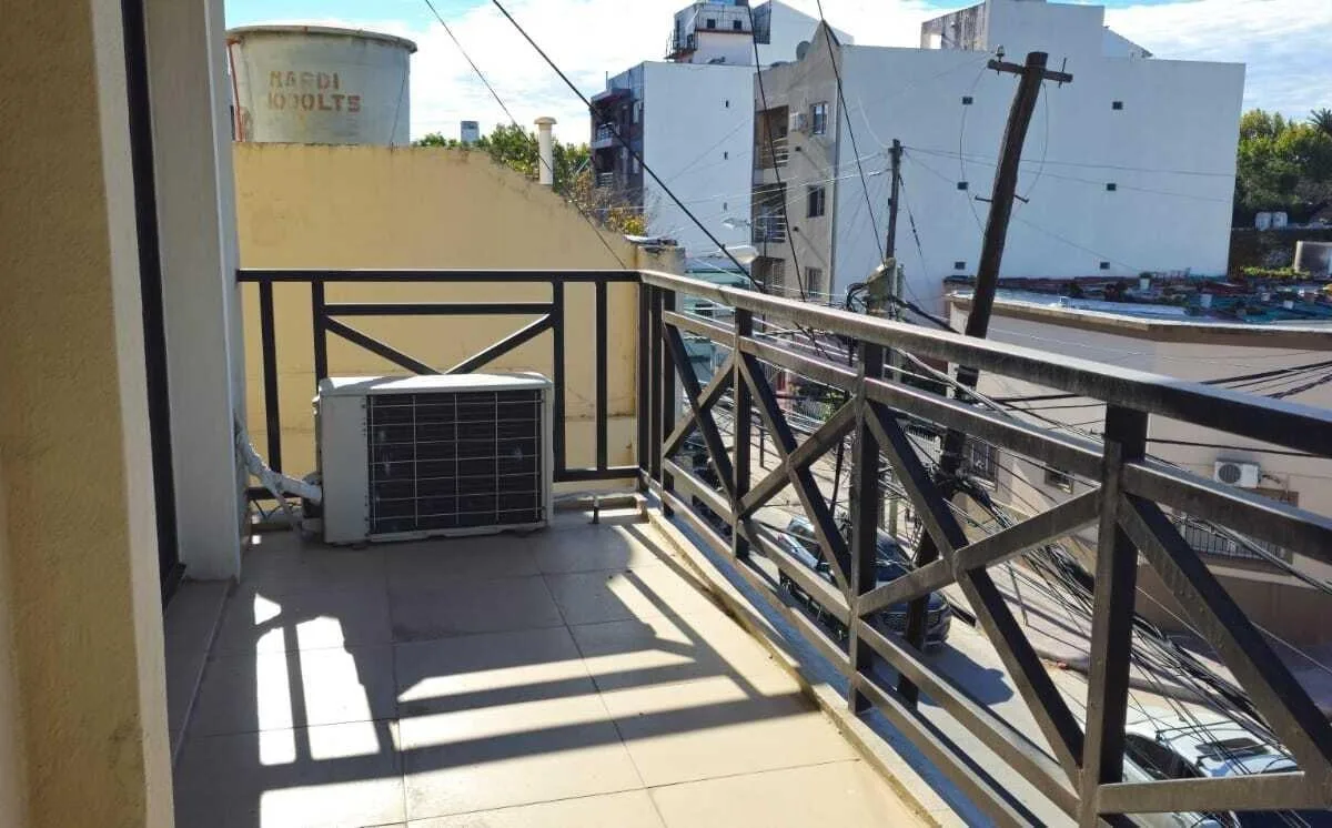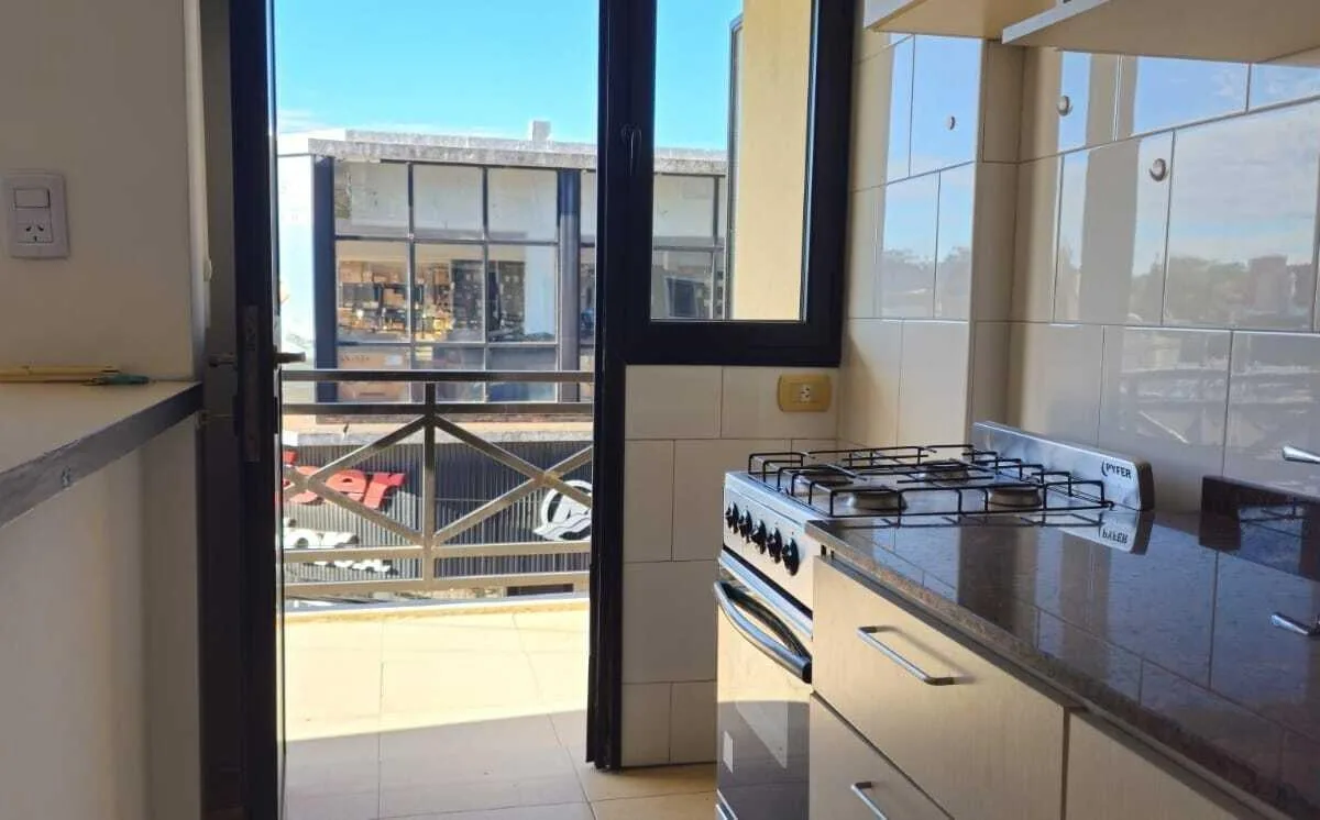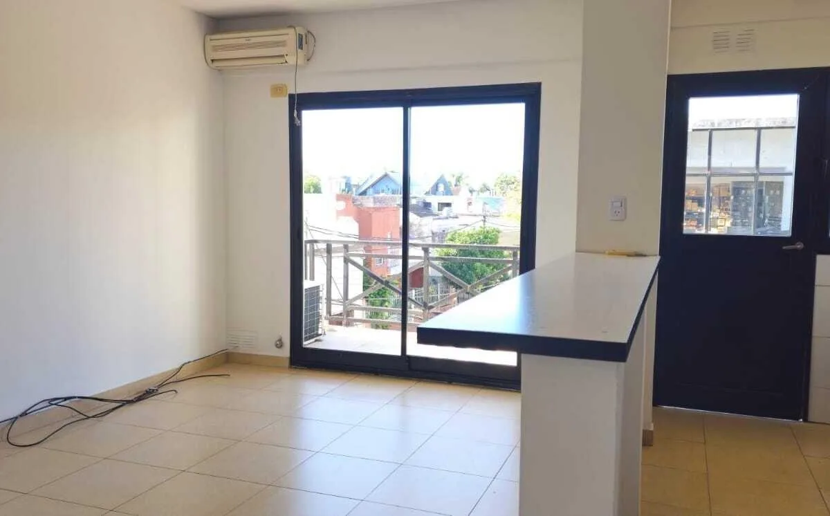 Apartamento de dois ambientes com 1 quarto em San Fernando. Sala de estar e jantar, cozinha integrada com saída para a varanda e banheiro completo. O quarto tem armário embutido; há churrasqueira no terraço (com acesso via varanda) e banheiro. Possui vaga de garagem com entrada controlada por controle remoto e depósito no subsolo. Condomínio com valor baixo. Contrato de 2 anos com reajuste trimestral pelo IPC; exigem-se 1 mês de depósito, 1 mês de aluguel e comissão imobiliária. Requerem comprov