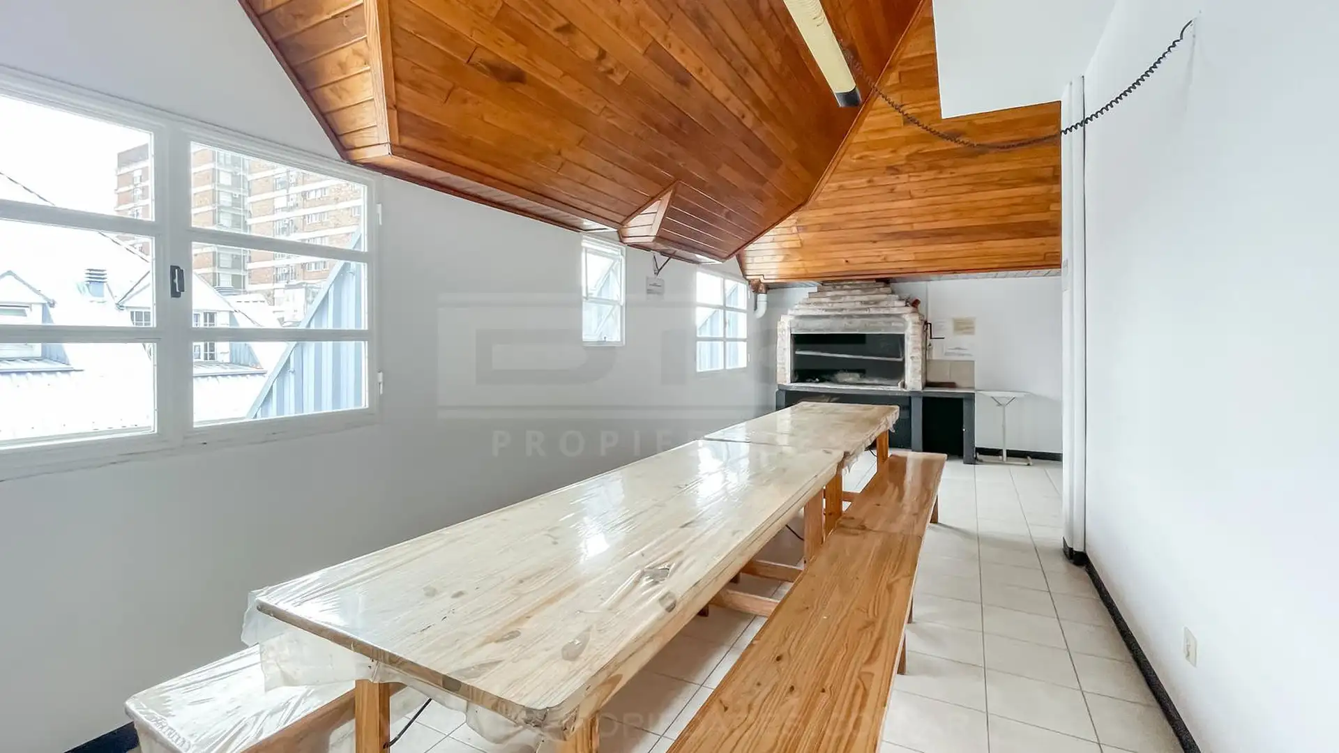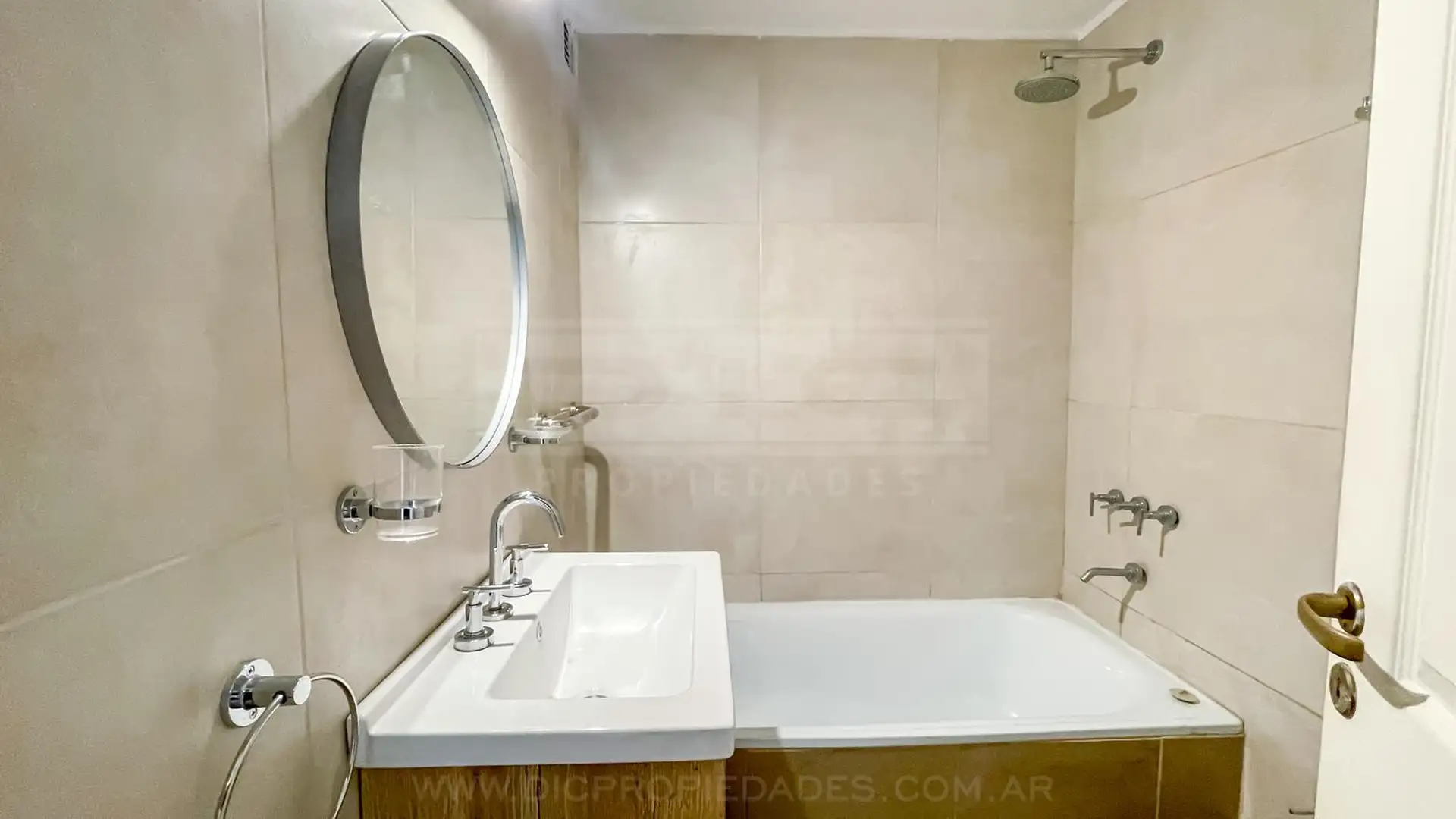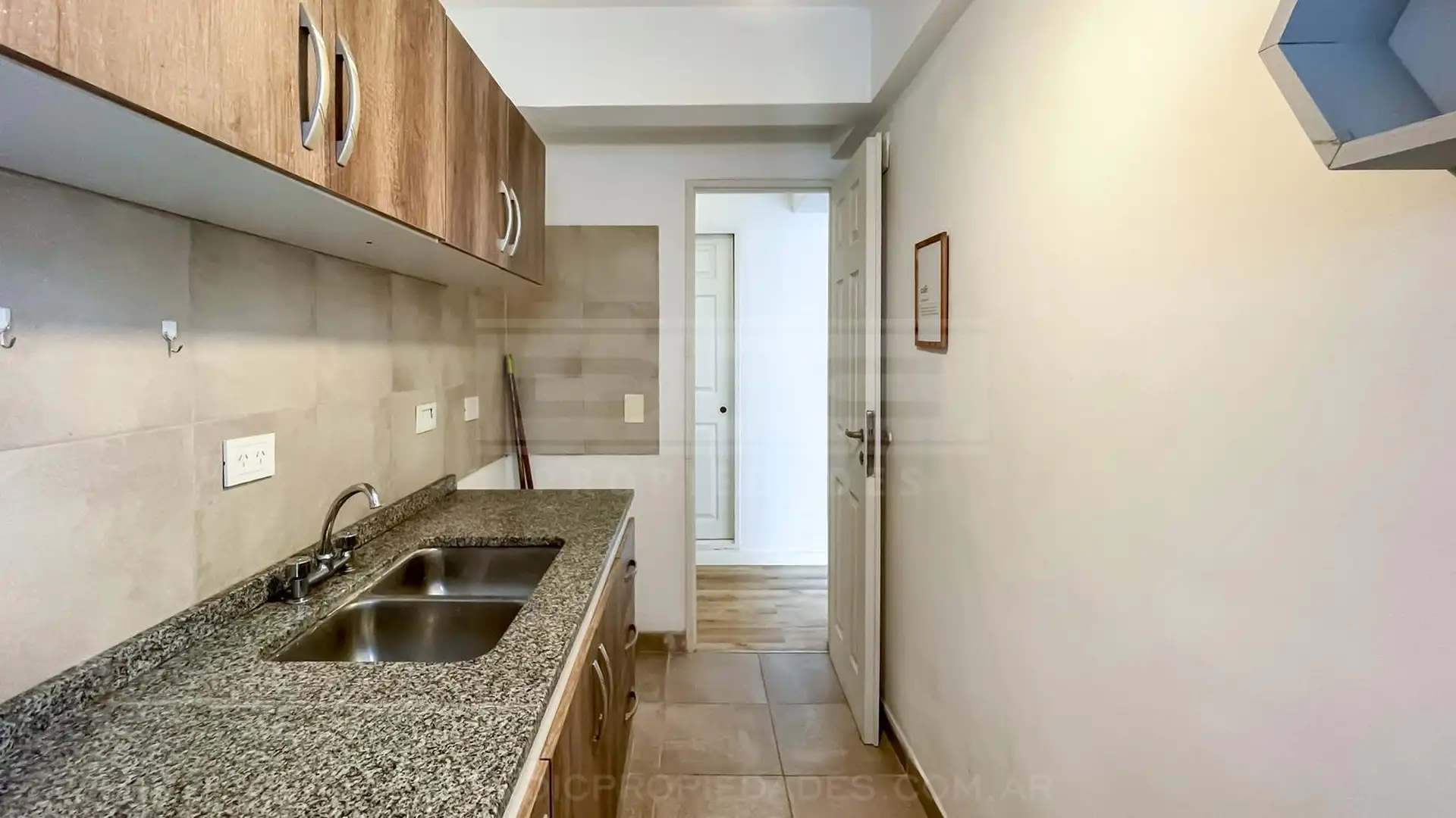 Apartamento de 2 ambientes em San Isidro, com área social e cozinha independente, além de 1 dormitório com armário embutido. Possui banheiro completo com banheira, além de lavadora (lavarropas). O corredor de distribuição tem outro armário embutido. O prédio oferece SUM, área de churrasco e laundry.