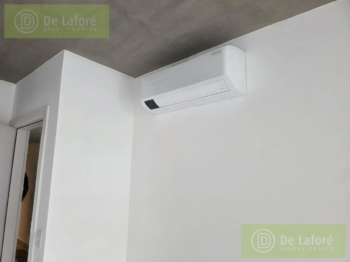 Apartamento novo de 2 ambientes, 1 dormitório, 50 m² cobertos, 4 m² descobertos e 54 m² totais, no contrafrente e orientação sul, em San Isidro. Possui vaga de garagem fixa, split frio/calor na sala e no quarto, cozinha integrada com bancada e armários planejados, banheiro completo com banheira e piso cerâmico. A varanda tem churrasqueira. O edifício não tem gás; utiliza aquecedor de água, fogão ou fogareiro elétrico. Aluguel com contrato de 2 anos e reajuste trimestral pelo IPC; condomínio de $