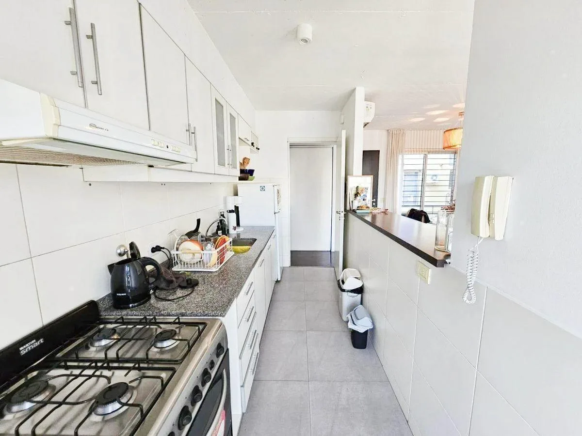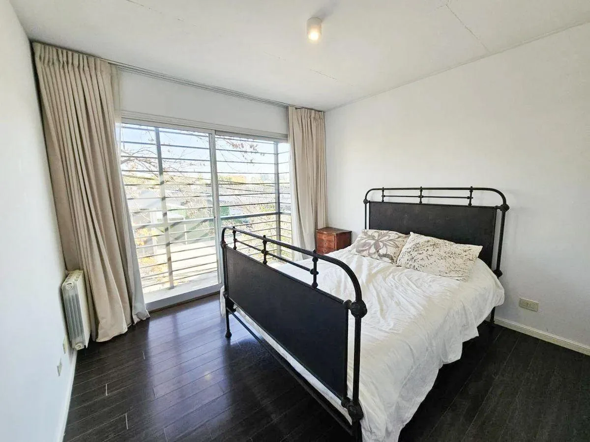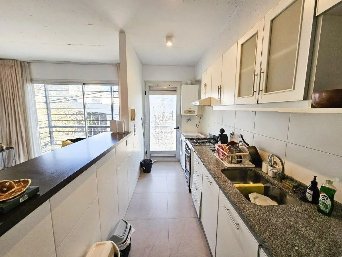 Apartamento de 2 ambientes na frente, com vista aberta para área arborizada. Possui sala de estar e jantar, cozinha, quarto com armário e espaço de armazenamento nos ambientes, além de calefação individual e ar-condicionado frio/quente. Inclui vaga de garagem fixa; o condomínio é descrito como de baixas expensas. O imóvel fica a 5 quadras da Av. Centenario e há acesso ao trem Mitre com destino a Retiro.