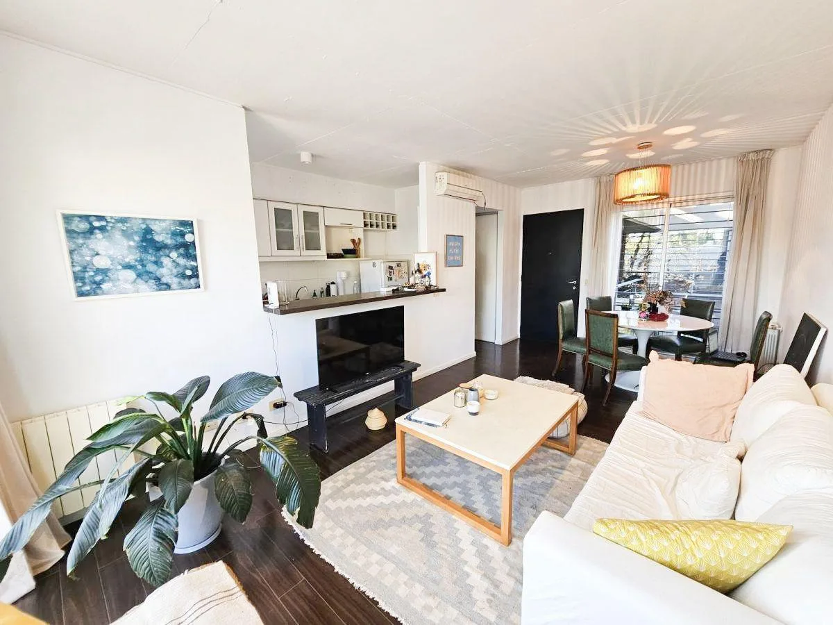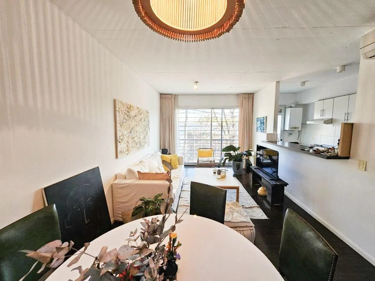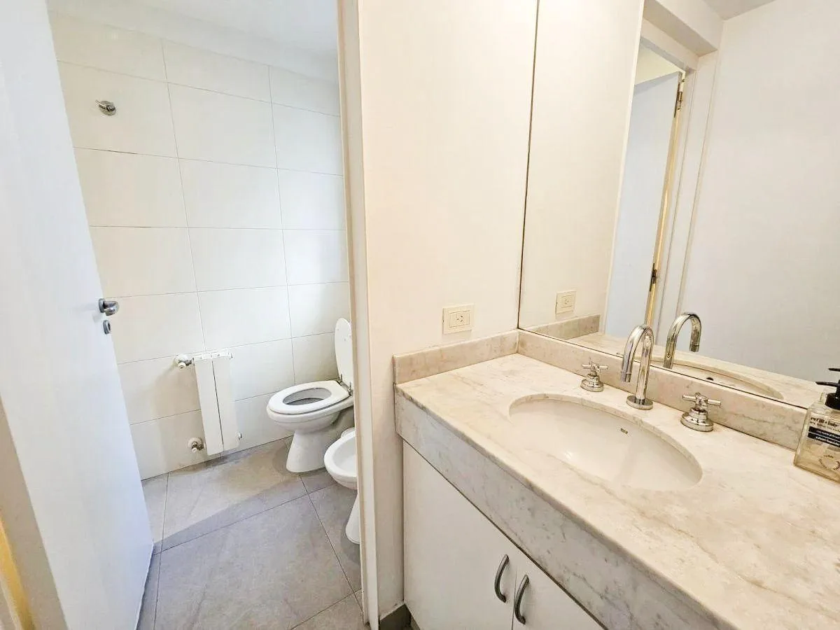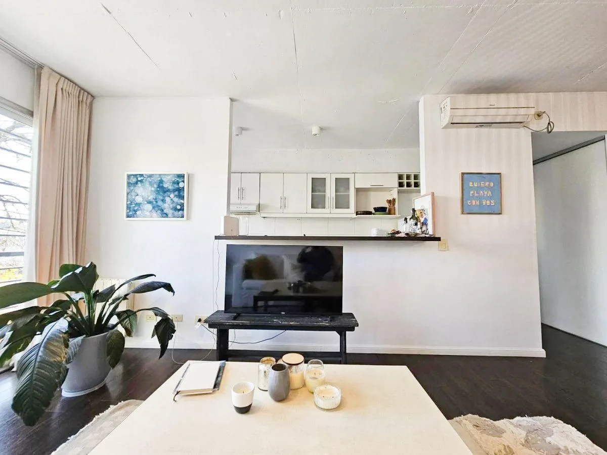 Apartamento de 2 ambientes na frente, com vista aberta para área arborizada. Possui sala de estar e jantar, cozinha, quarto com armário e espaço de armazenamento nos ambientes, além de calefação individual e ar-condicionado frio/quente. Inclui vaga de garagem fixa; o condomínio é descrito como de baixas expensas. O imóvel fica a 5 quadras da Av. Centenario e há acesso ao trem Mitre com destino a Retiro.
