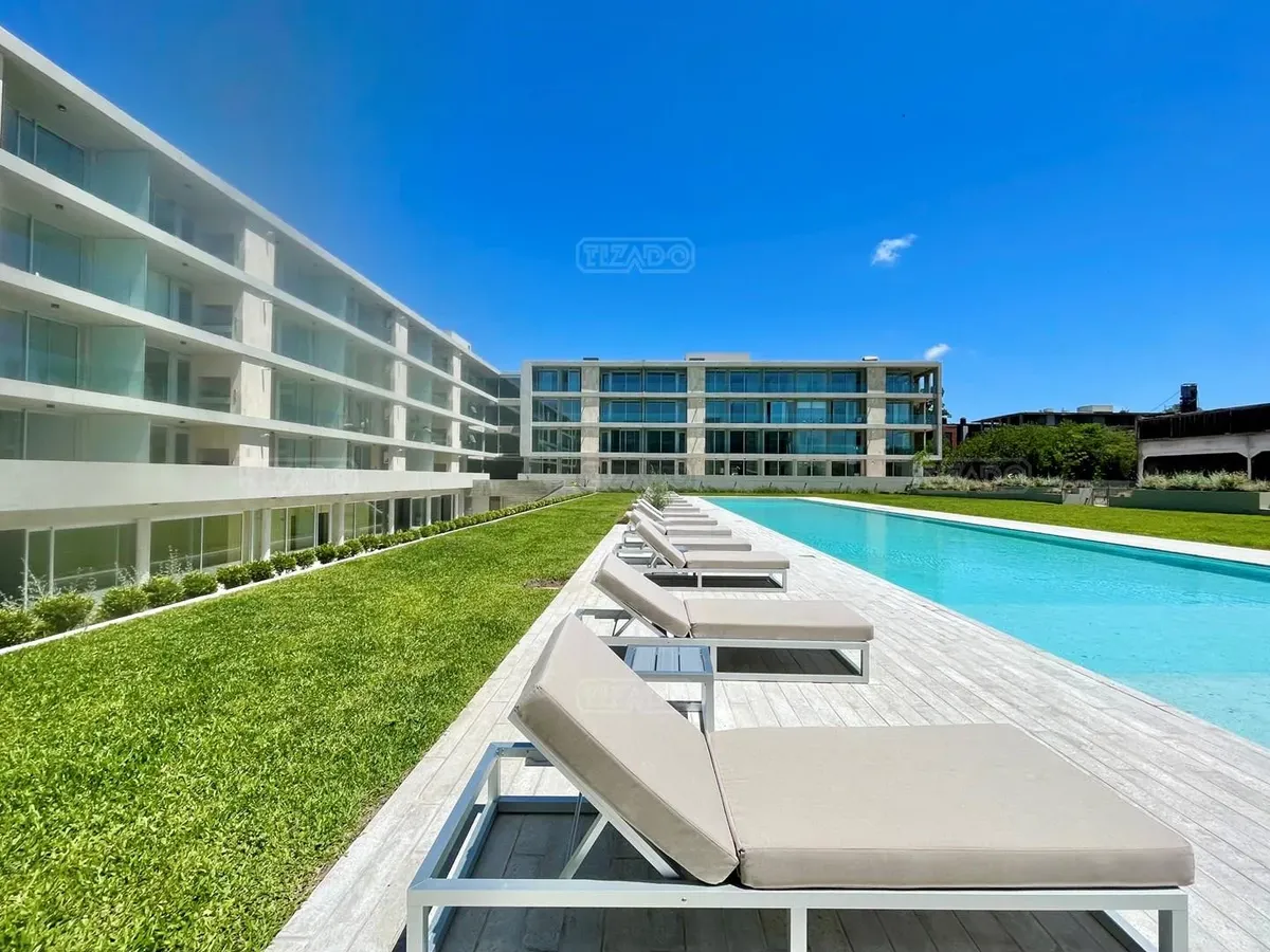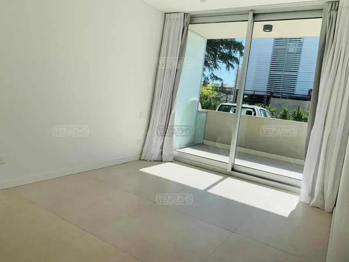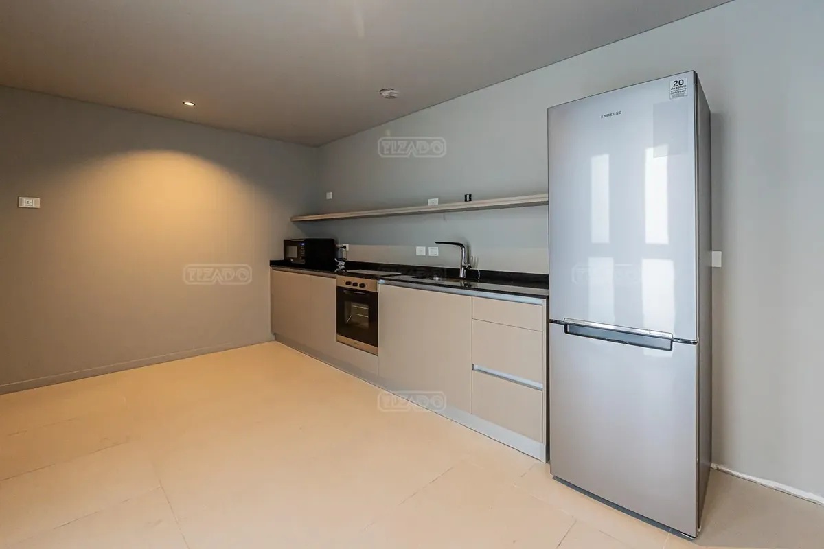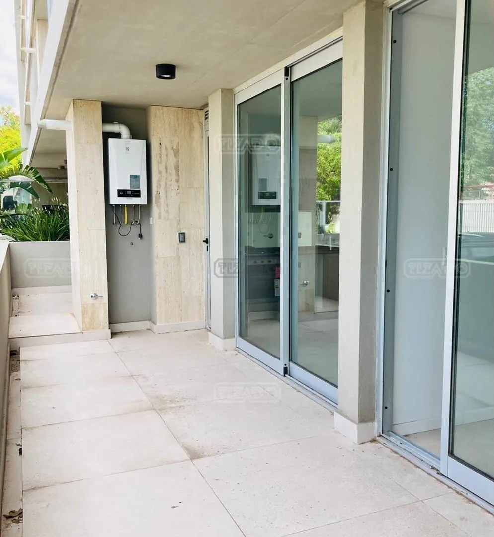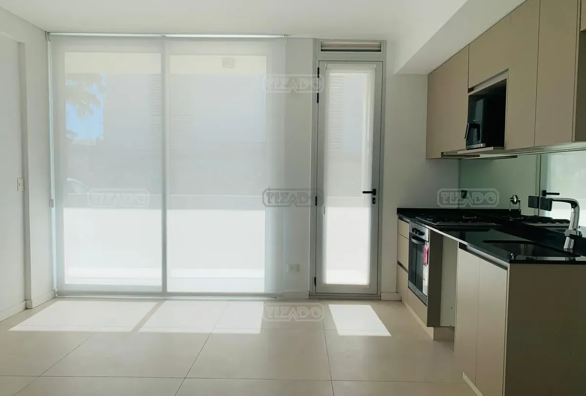 Apartamento térreo (PB) em edifício Prana San Isidro, em San Isidro, com 2 ambientes e possibilidade de criar um 2º dormitório. Orientação leste. Sala de jantar com saída para varanda com parrilla. Cozinha com armários superiores e inferiores, espaço para lava-louças ou lavadora, extrator, cooktop a gás de 4 bocas e forno elétrico embutido. Há lavabo de recepção e banheiro completo, além de antebanheiro. Quarto com closet e acesso a varanda contínua. Locação em pesos com reajuste trimestral pelo