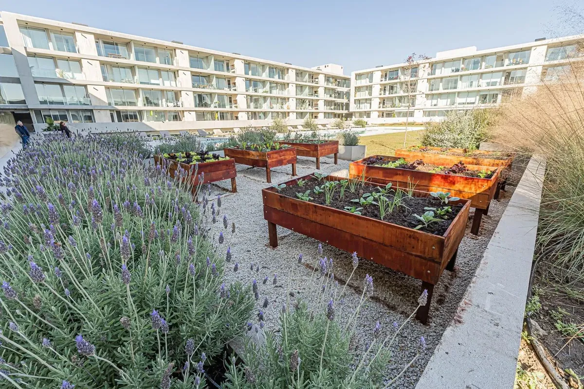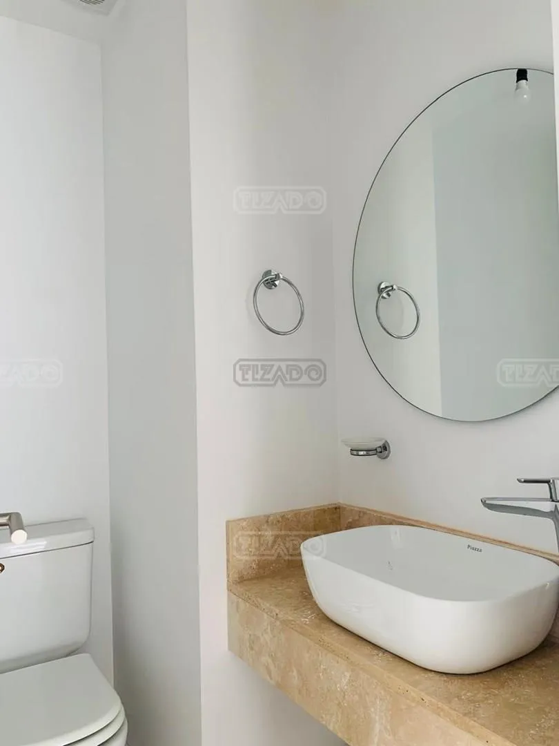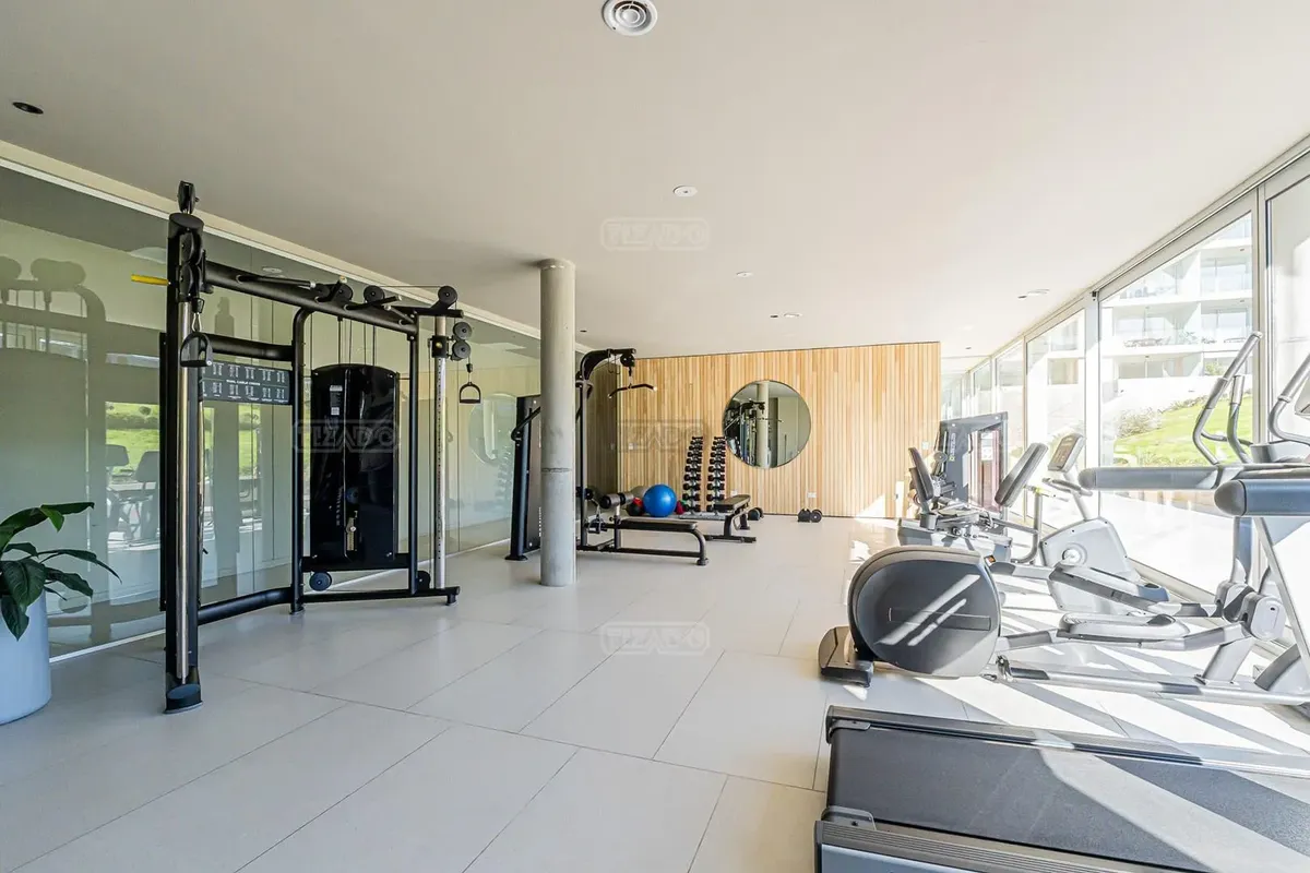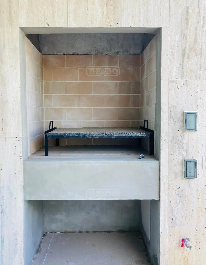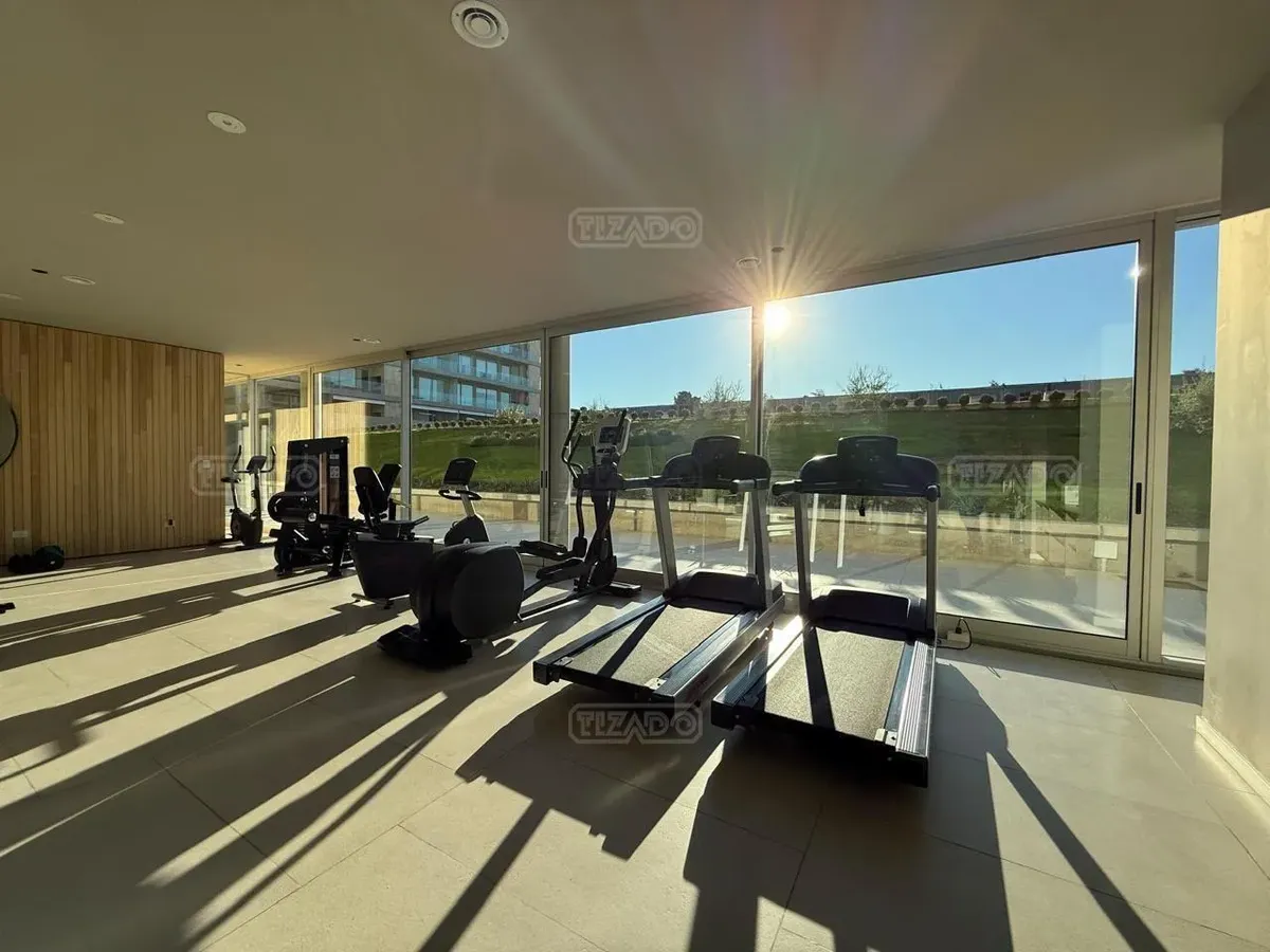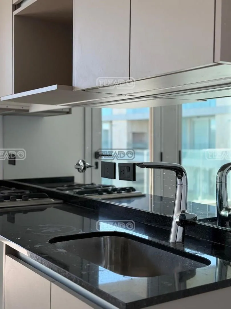Apartamento térreo (PB) em edifício Prana San Isidro, em San Isidro, com 2 ambientes e possibilidade de criar um 2º dormitório. Orientação leste. Sala de jantar com saída para varanda com parrilla. Cozinha com armários superiores e inferiores, espaço para lava-louças ou lavadora, extrator, cooktop a gás de 4 bocas e forno elétrico embutido. Há lavabo de recepção e banheiro completo, além de antebanheiro. Quarto com closet e acesso a varanda contínua. Locação em pesos com reajuste trimestral pelo