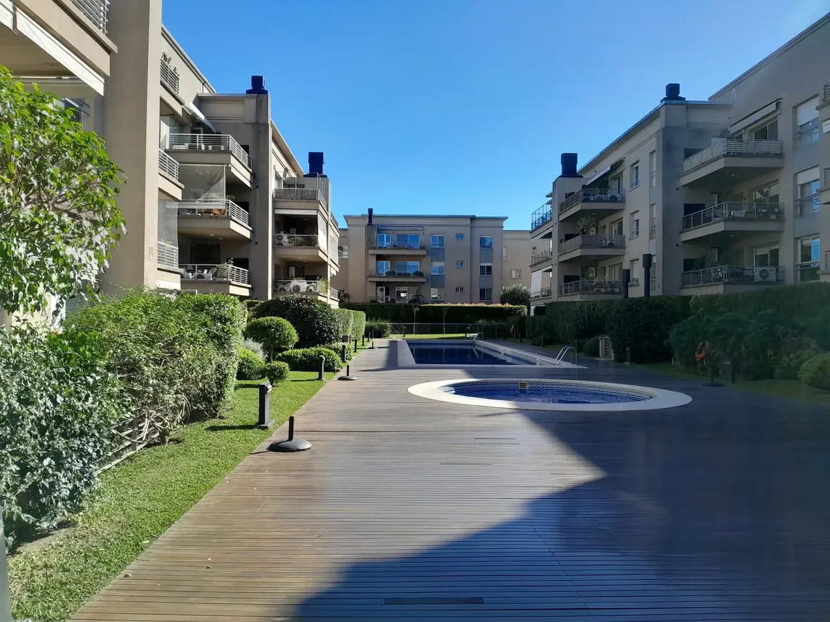 Apartamento novo em Jardines III, Aracuaría, disponível para aluguel a partir de maio de 2026. Tem 1 dormitório com armário embutido e ar-condicionado, 1 banheiro com box, além de hall e living com ar-condicionado com acesso a varanda-terraço com toldo e churrasqueira, com espaço para máquina de lavar. A cozinha é completa, com móveis sob e sobre a bancada em mármore preto e saída para a varanda. Inclui janelas com vidro duplo, persianas, pisos cerâmicos, aquecimento por piso radiante, caldeira