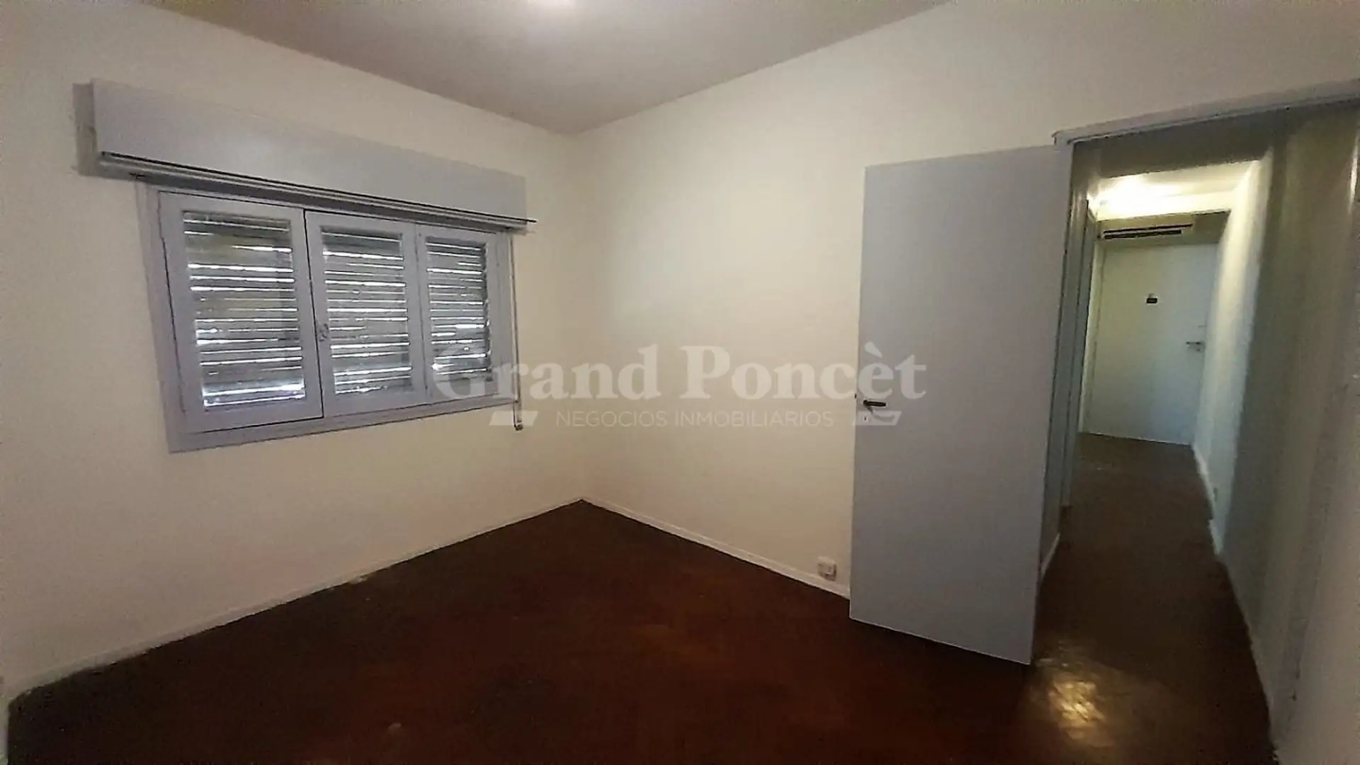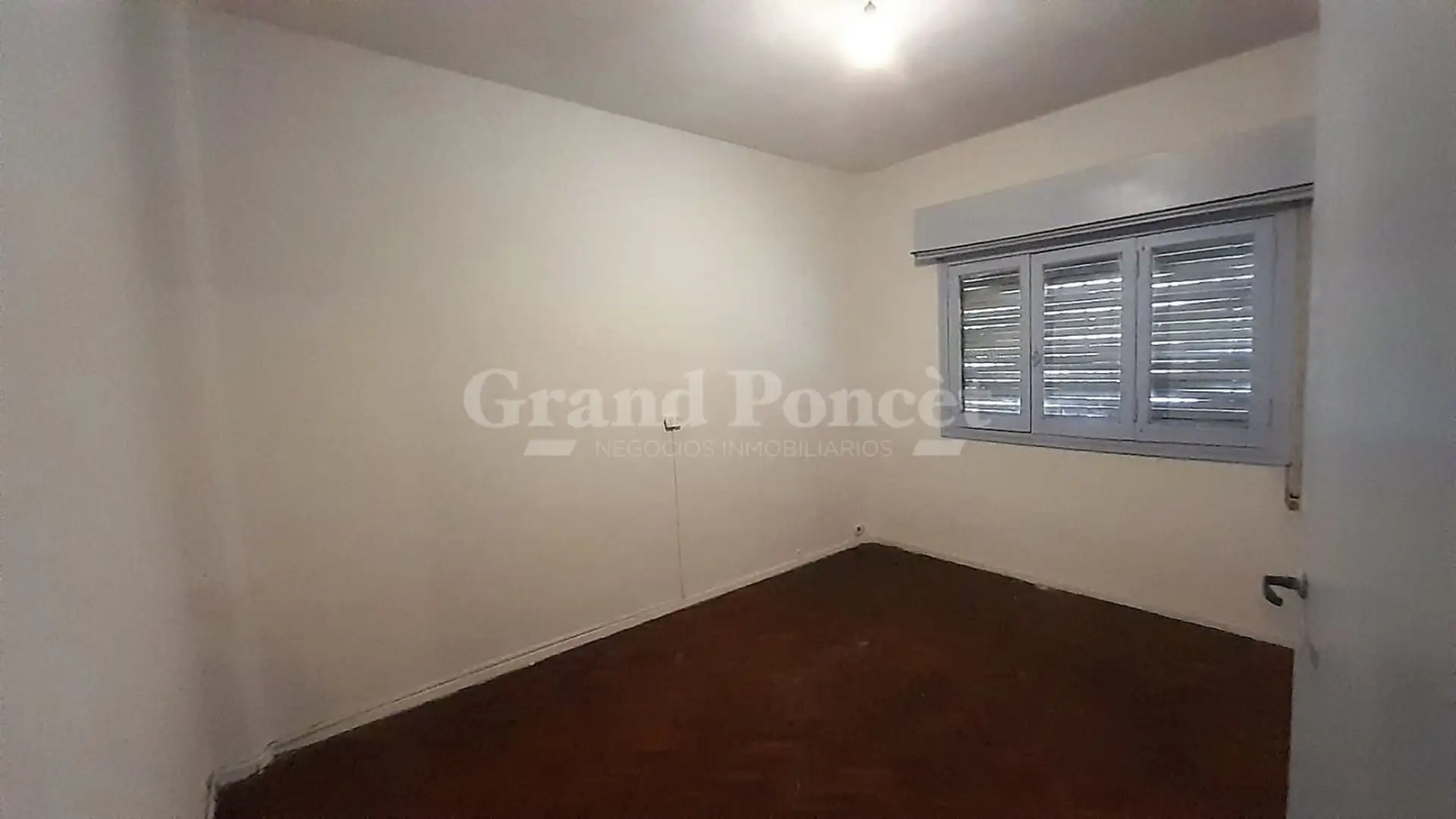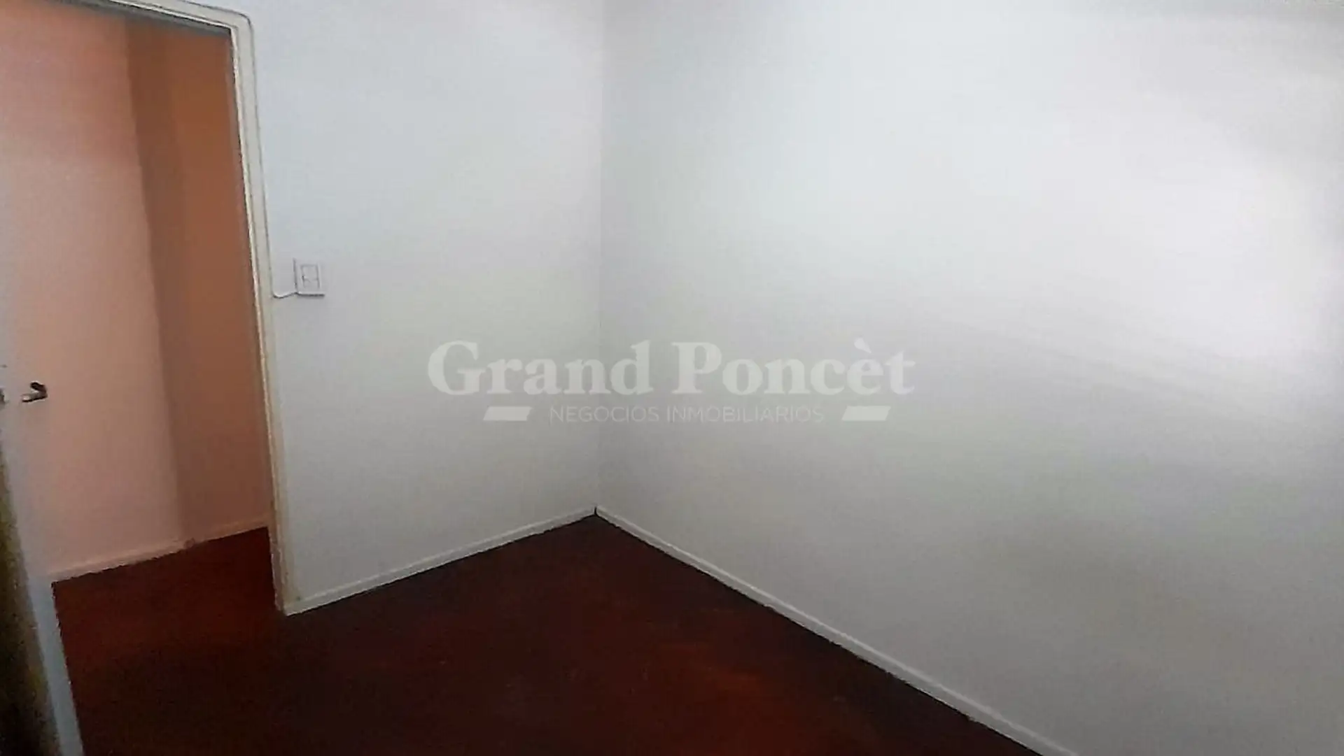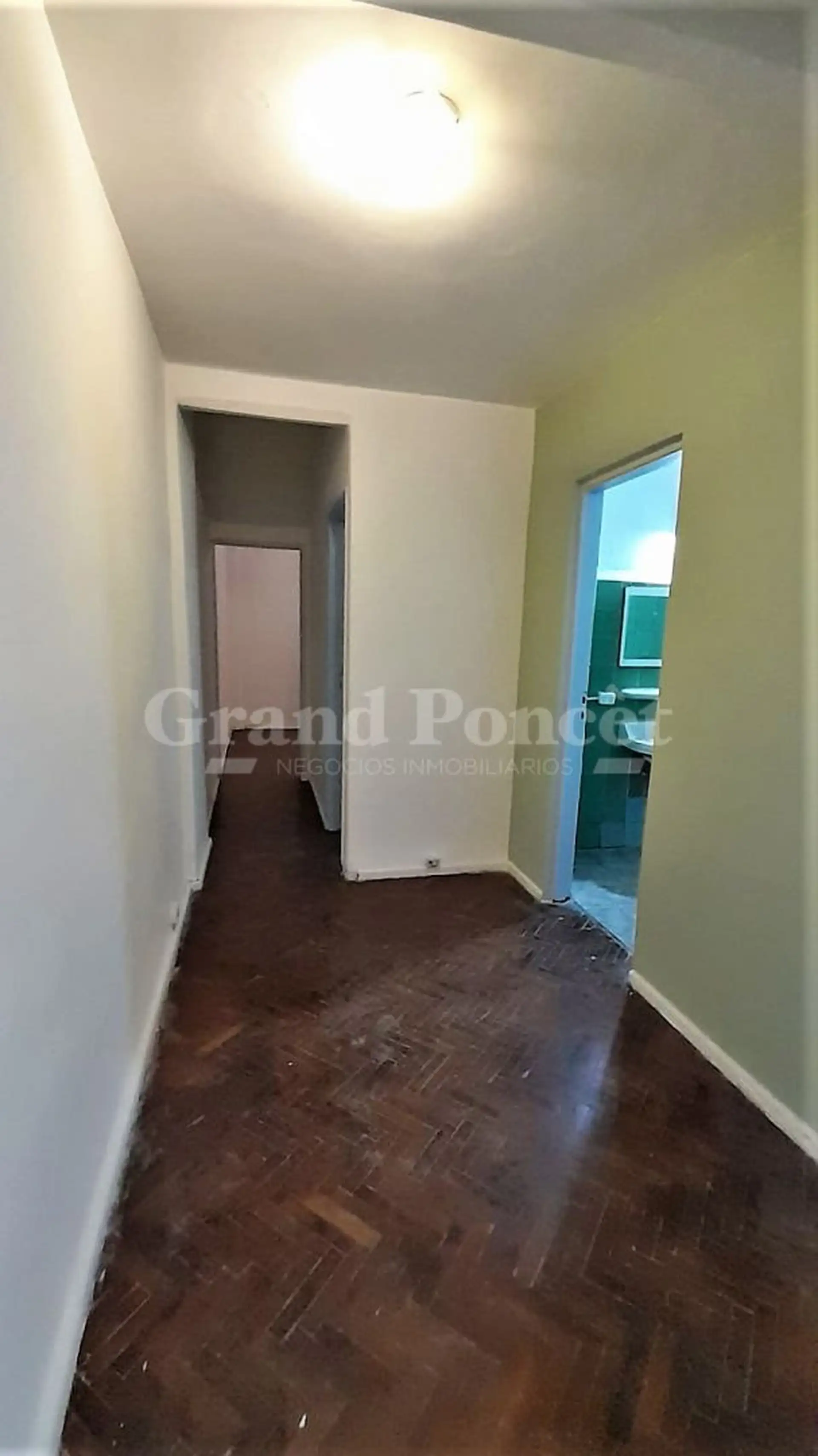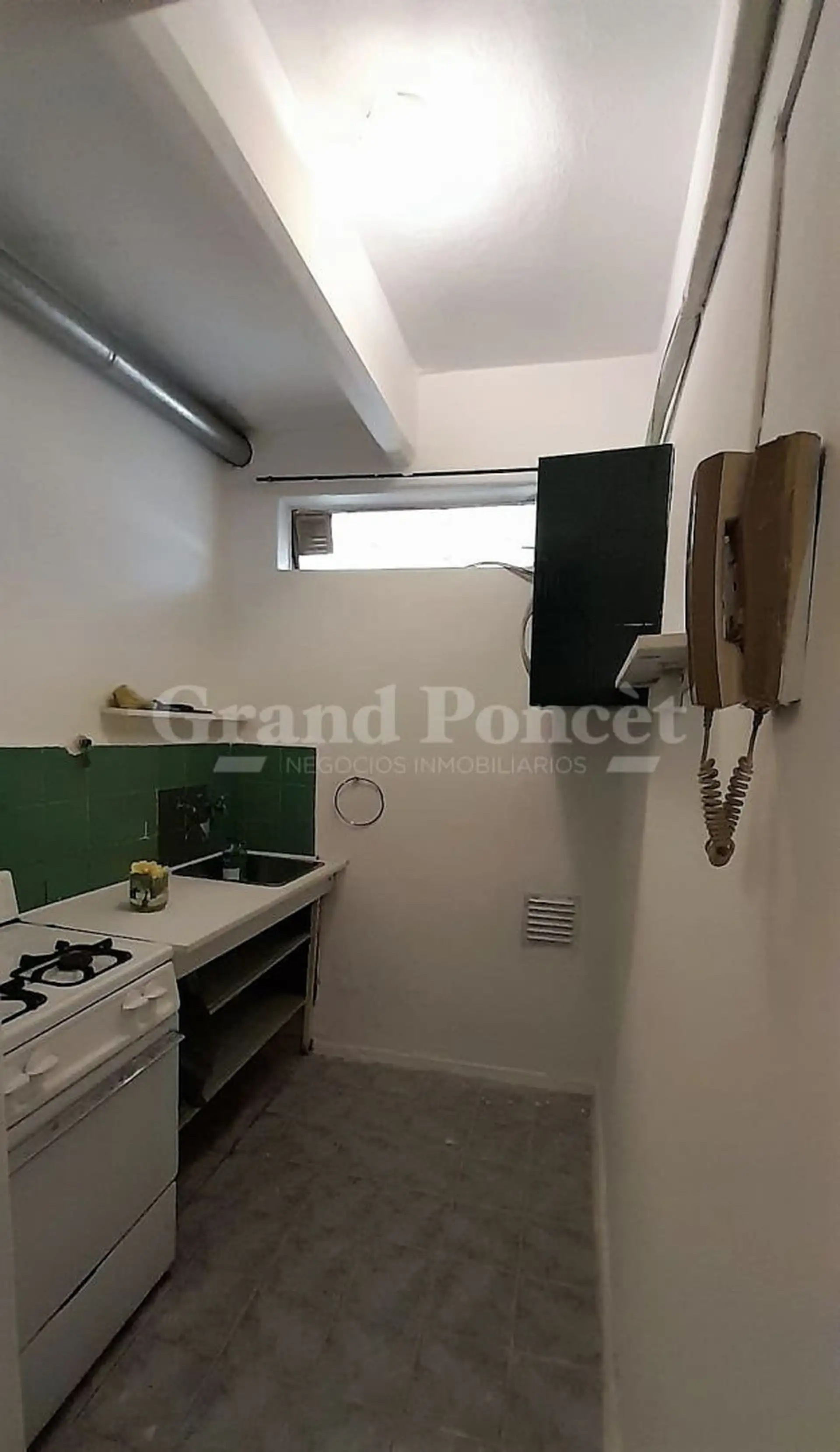 Apartamento com dois ambientes e meio, no térreo de frente, em San Telmo. Possui hall de entrada, cozinha, banheiro com box, corredor e 2 dormitórios. Tem 30 m² totais, com pisos de parquet e apto para uso profissional, com linha telefônica.