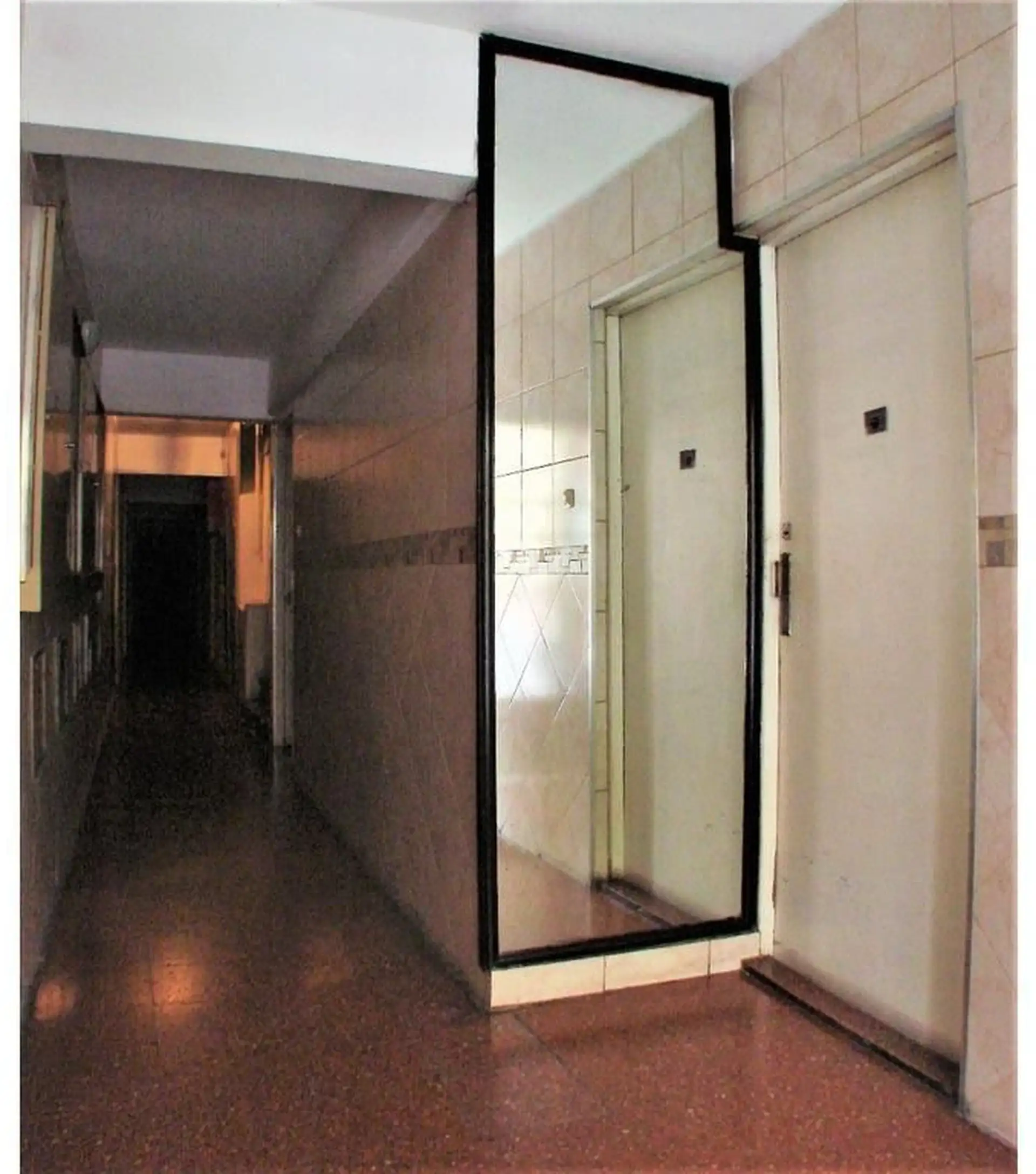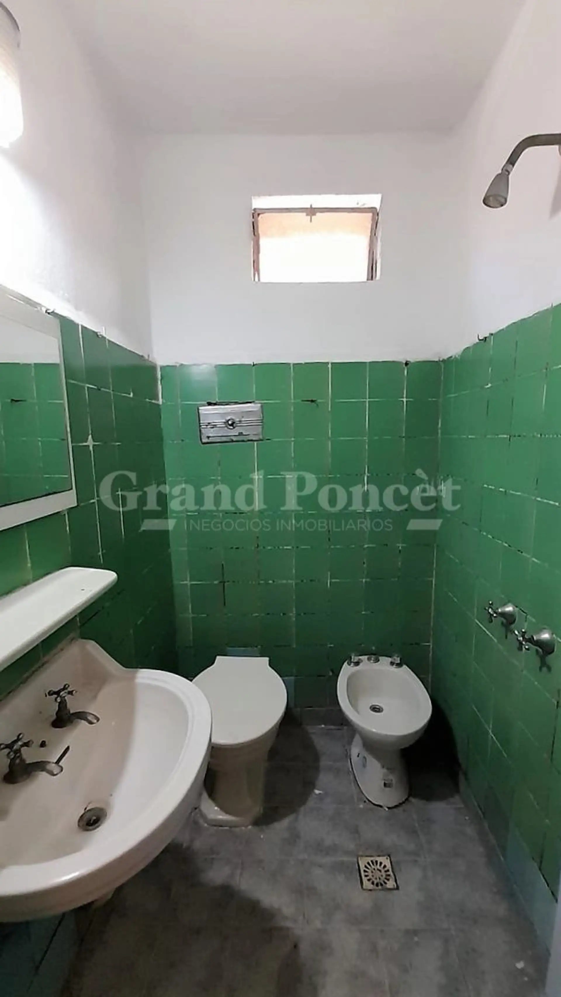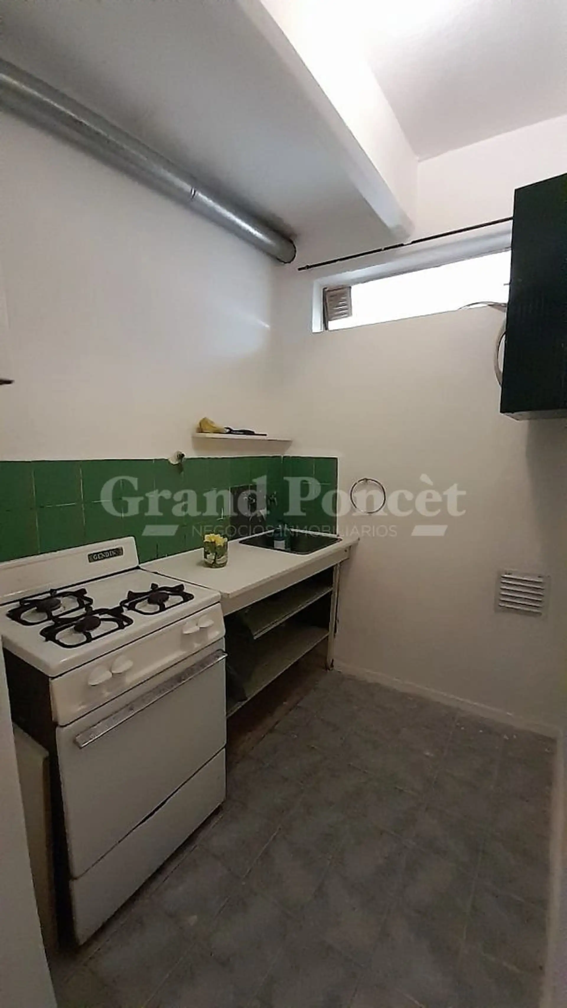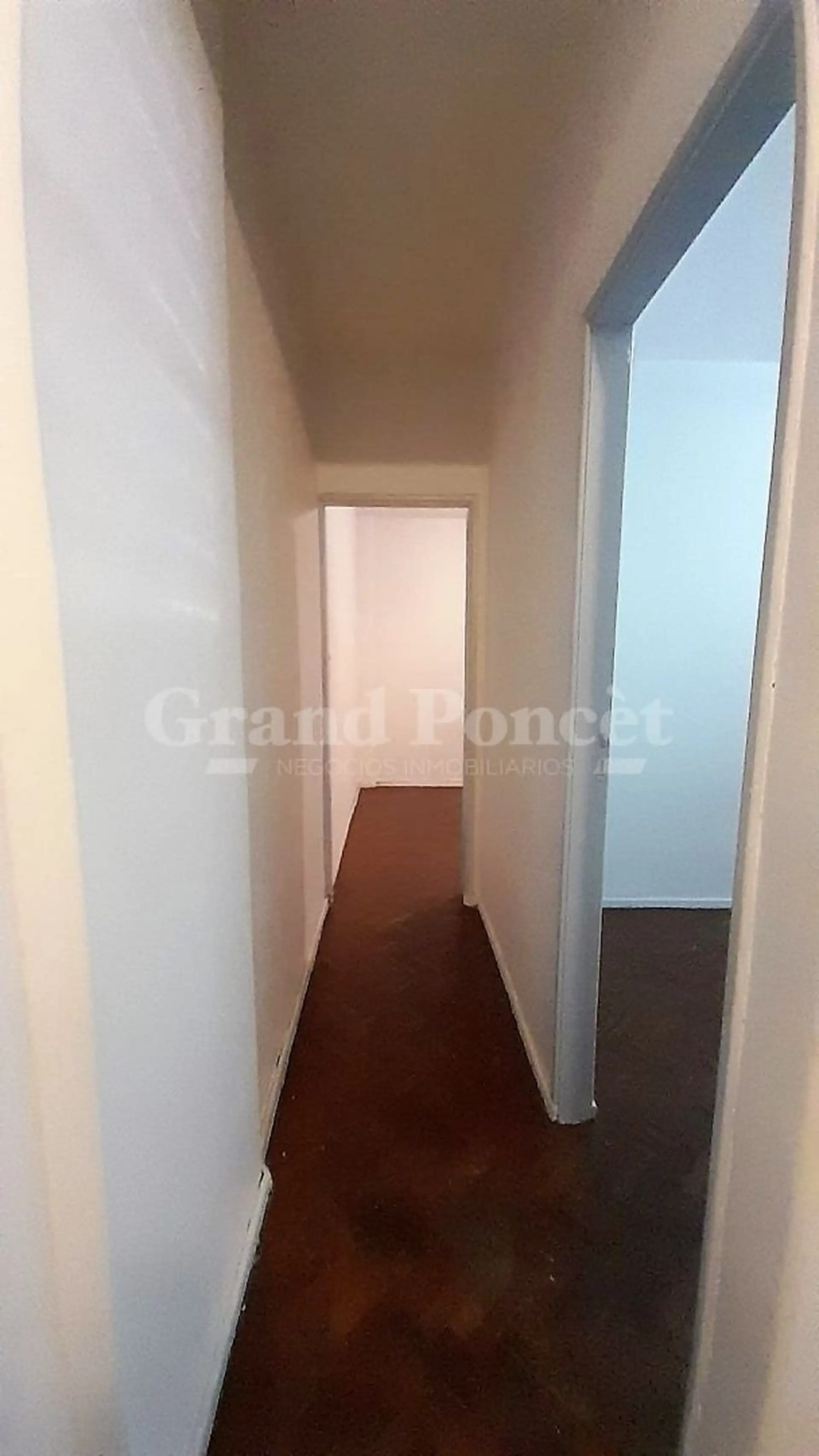 Apartamento com dois ambientes e meio, no térreo de frente, em San Telmo. Possui hall de entrada, cozinha, banheiro com box, corredor e 2 dormitórios. Tem 30 m² totais, com pisos de parquet e apto para uso profissional, com linha telefônica.