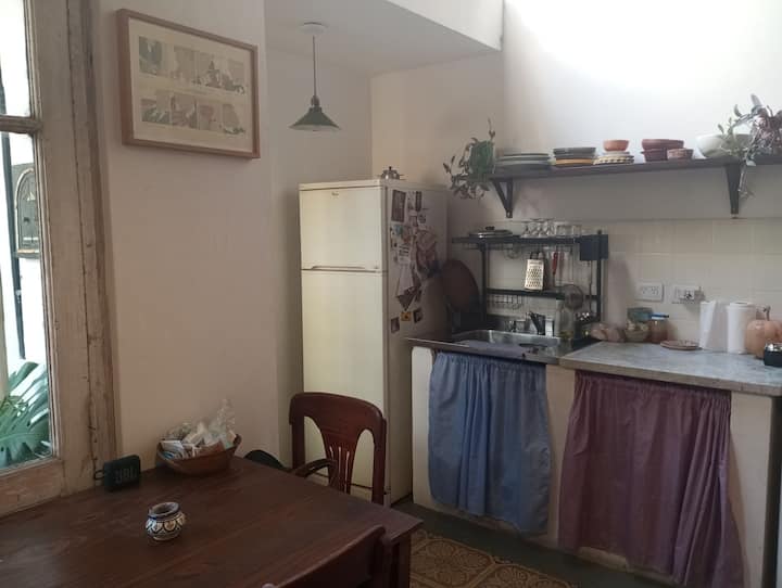 Studio em San Telmo, em uma acomodação antiga. Imóvel descrito como silencioso e com boa iluminação.