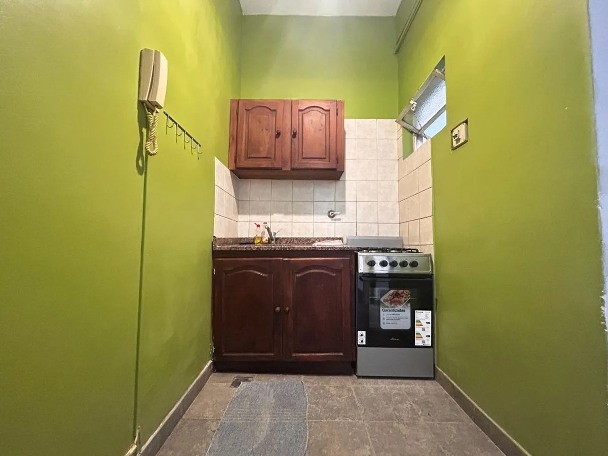 Apartamento de 2 ambientes no 3° andar, de frente para a rua, em San Telmo, sem varanda. Inclui sala de estar e jantar com pisos de parquet, janela para a frente e divisão para a cozinha, 1 dormitório com pisos de parquet, armário embutido e banheiro privativo completo com banheira, além de cozinha com móveis sob a bancada, armário superior, fogão a gás. Área de lavanderia separada, com termotanque a gás, bancada e prateleiras. Aluguel de $700.000, com condomínio (expensas) de aproximadamente $1