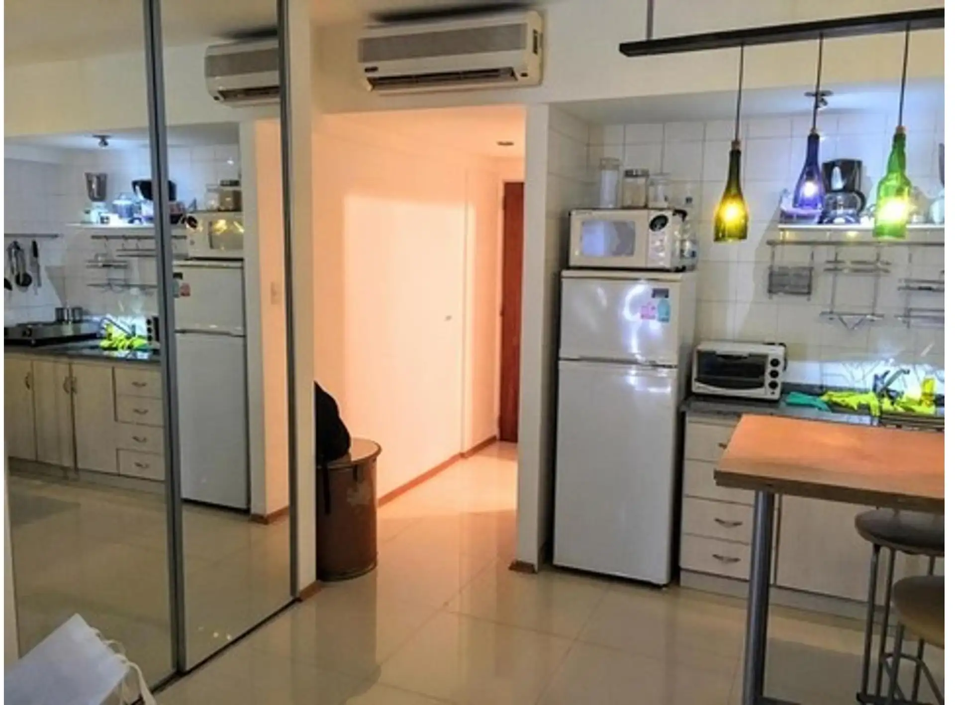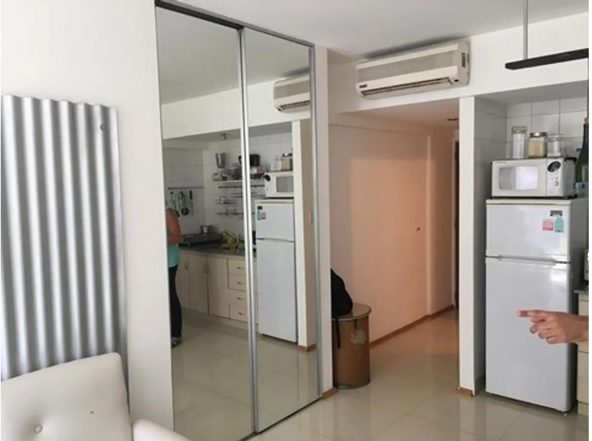 Apartamento em San Telmo, no 6º andar, com 1 quarto. Janelas do piso ao teto, muito iluminadas, com piso revestido com carpete. Banheiro completo, ar-condicionado frio e quente e cozinha completa com cooktop.