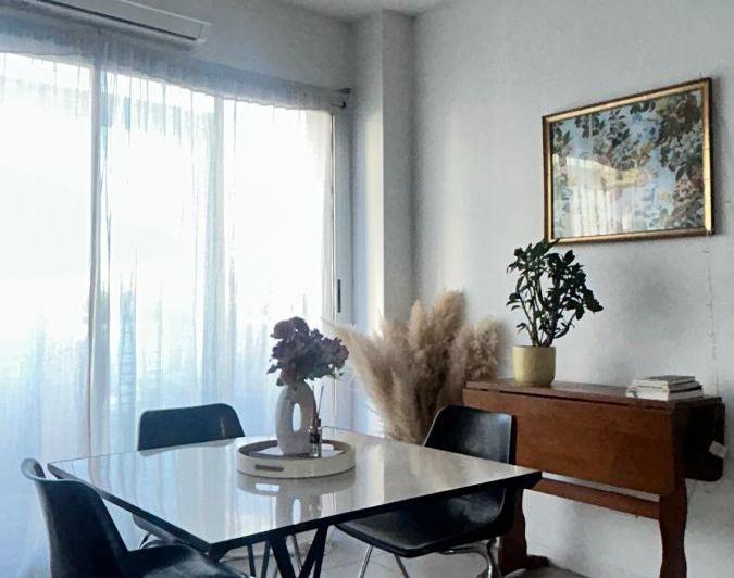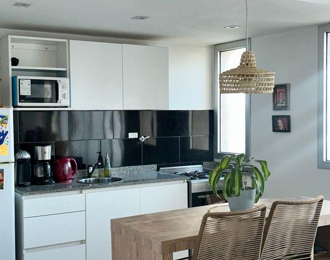 Apartamento tipo meio andar de 2 ambientes, com 52 m² totais, em San Telmo, com varanda com deck e vistas abertas. Cozinha com barra para refeições, living com espaço para sala de jantar com saída para a varanda e dormitório com espaço de armazenamento. Possui ar-condicionado frio/calor e ventilador, e está totalmente equipado. O gás está incluído no preço; não estão incluídos condomínio (aprox. $90.000), eletricidade e WiFi. Disponível a partir de 20/03/2026.