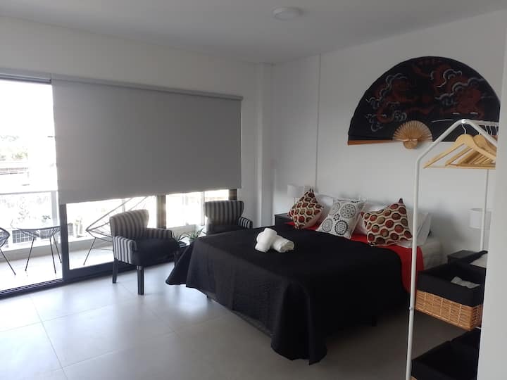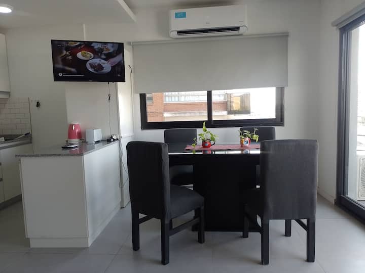 Apartamento tipo studio novo, em edifício de uso tranquilo, no centro de San Telmo. Fica a 200 metros de Puerto Madero e tem vista de frente a partir do 6º andar.