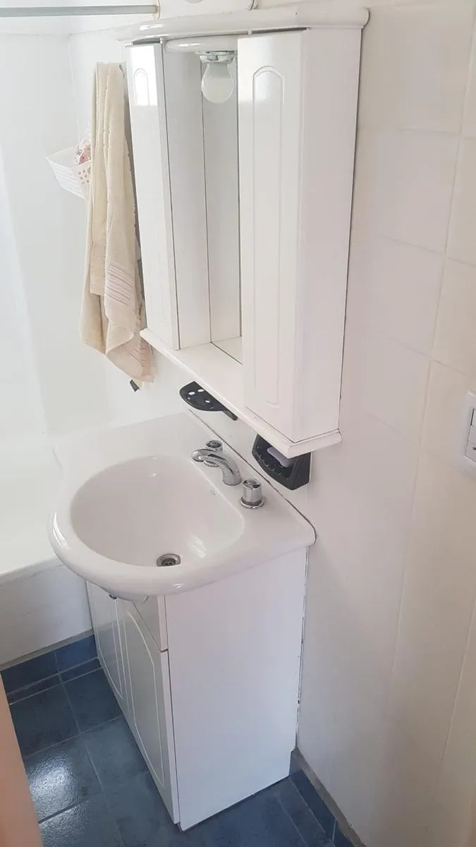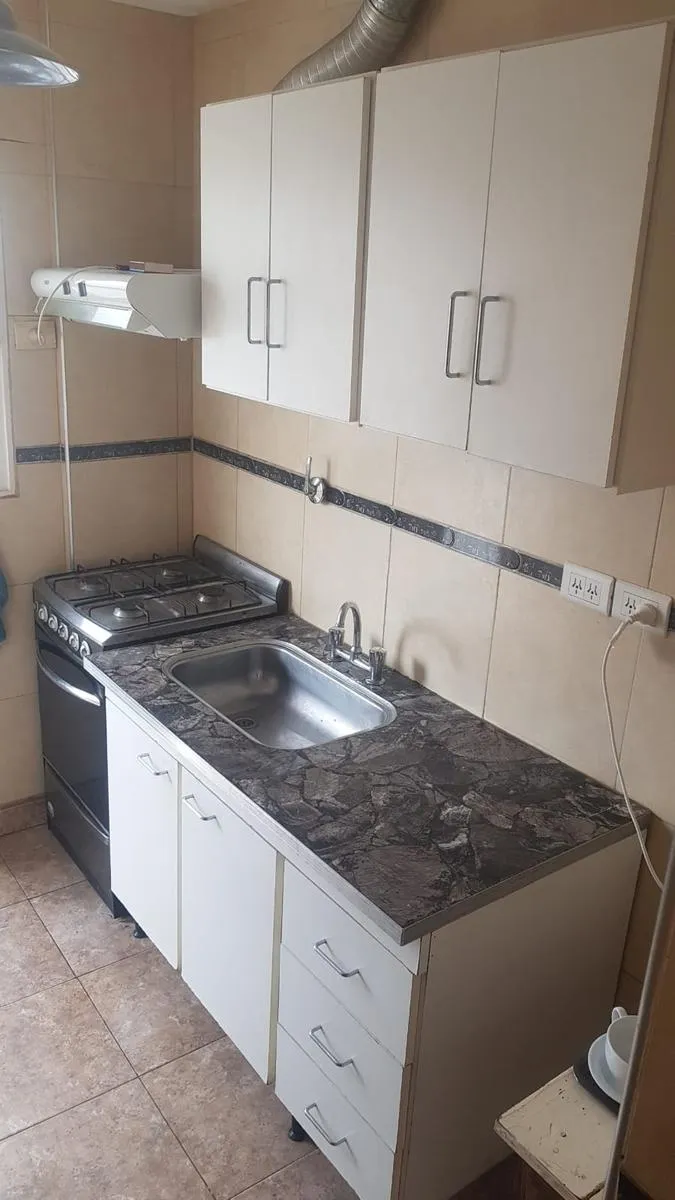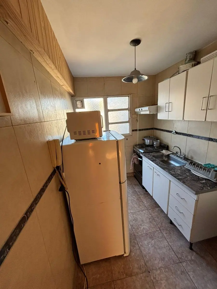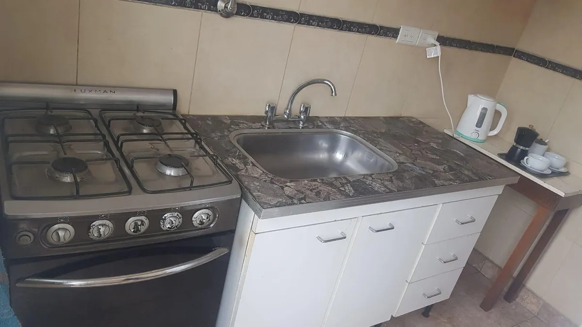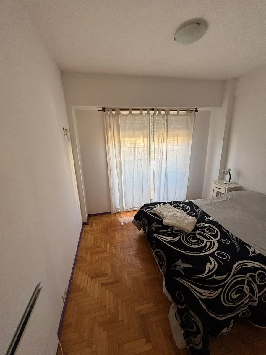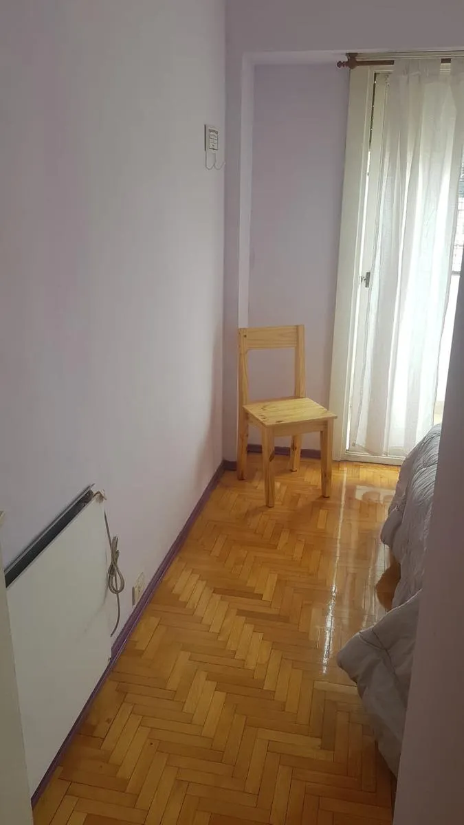 Apartamento de 2 ambientes com 45 m², varanda de fundos e vista lateral. Mobiliado e equipado, com pisos de parquet plastificados e ar-condicionado frio/quente. A unidade dispõe de sala com sofá-cama, TV de 32" e ventilador no quarto, além de cozinha com termotanque elétrico, fogão de 4 bocas com forno, micro-ondas, geladeira e cafeteira. O aluguel temporário é para até 2 pessoas e inclui água, Wi-Fi e condomínio; gás e luz ficam a cargo do inquilino. Disponível a partir de setembro de 2026.
