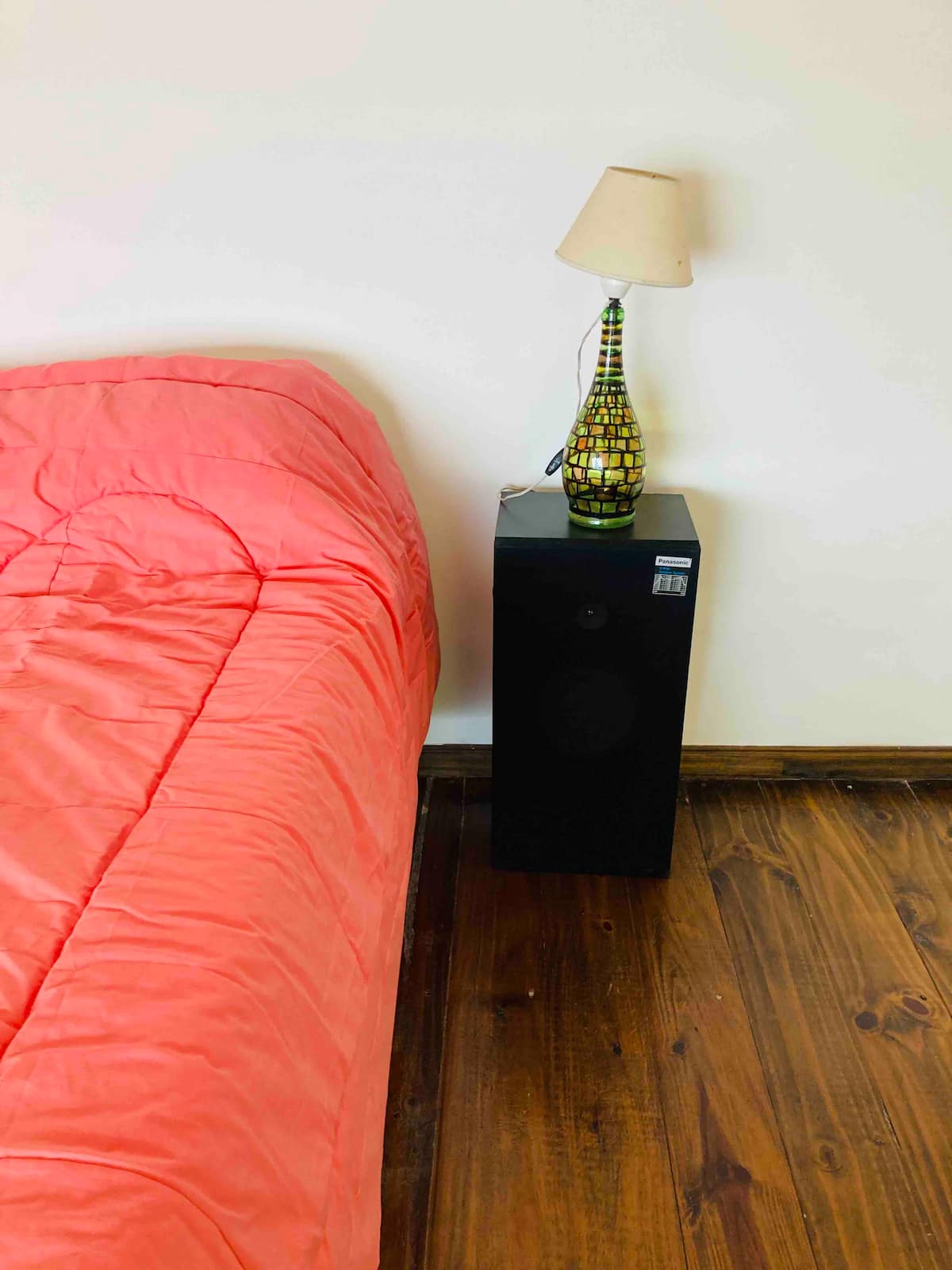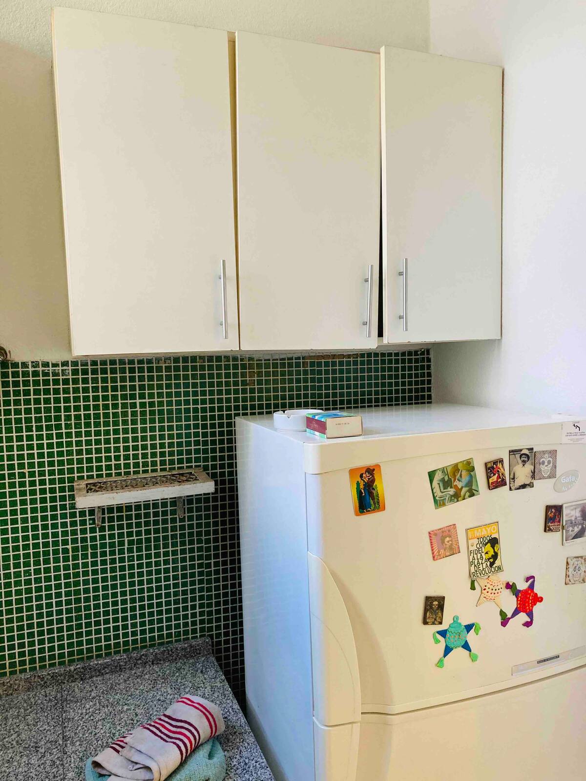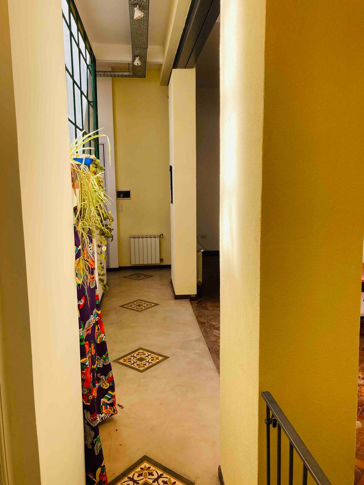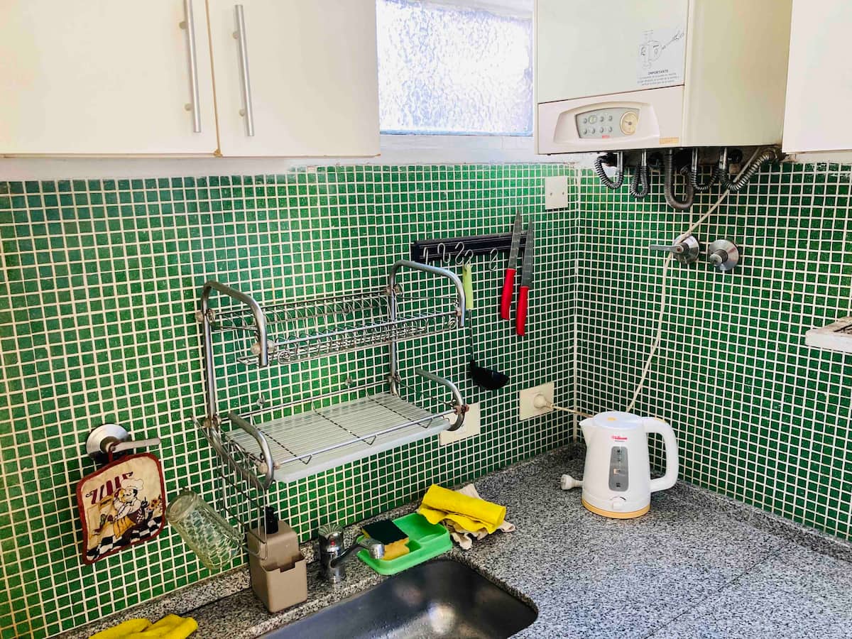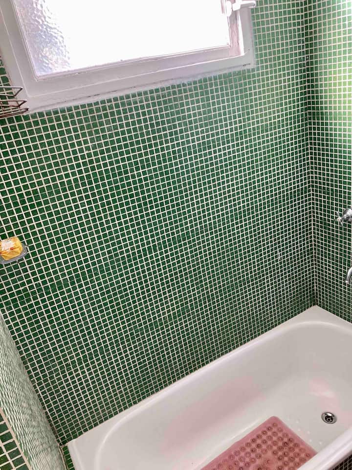 Loft em San Telmo com 45 m², além de 10 m² de mezanino, situado no 1º andar por escada. A área do mezanino abriga o quarto, com cortina blackout. Possui cozinha equipada, banheiro completo com banheira e bidê, aquecimento a boiler e ar-condicionado. Conta com janela grande com vidro colorido e uma ponte externa com plantas. Fica a 100 m da Plaza Dorrego e do Museu de Arte Moderna, a 150 m do Mercado de San Telmo e a 500 m do Parque Lezama, em rua de paralelepípedos, em edifício antigo com térreo