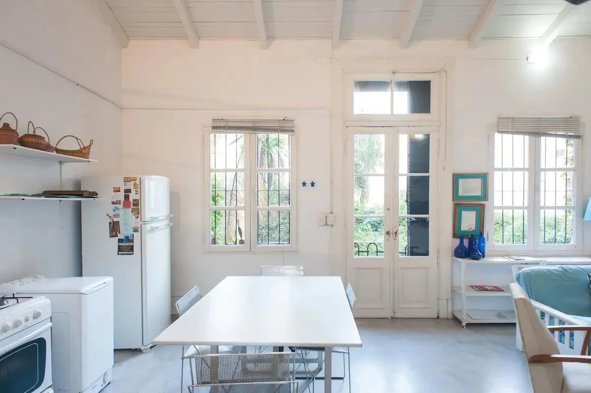 Apartamento tipo loft de 2 ambientes em PH, com mezanino e varanda. Fica no piso superior de uma casa antiga totalmente reformada, de fundos, com vista para o jardim de uso comum. É mobiliado e equipado, com disponibilidade a partir de 15 de maio. Contrato de aluguel de 6 meses a 2 anos, com fiança (caución) ou fiador proprietário; não são aceitos animais.