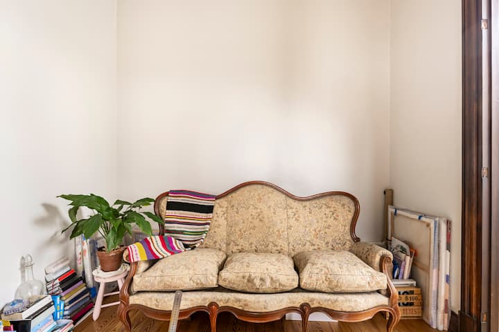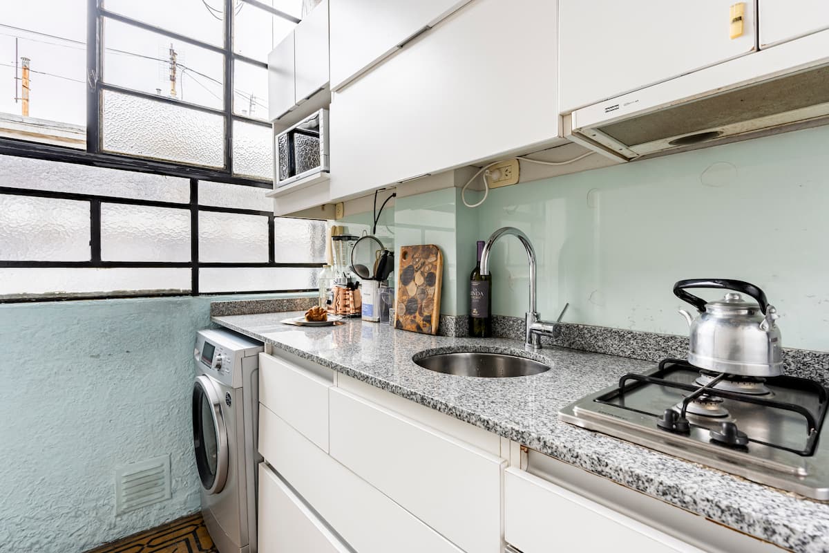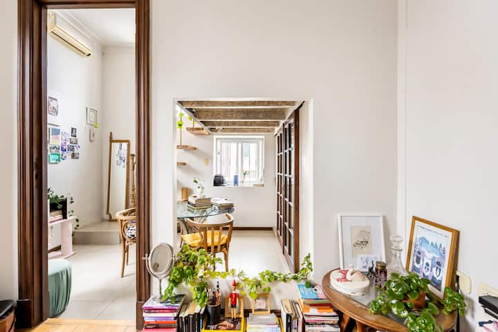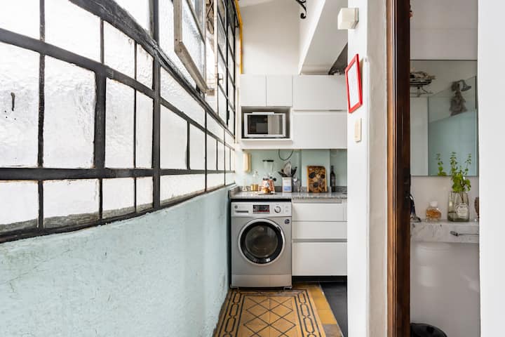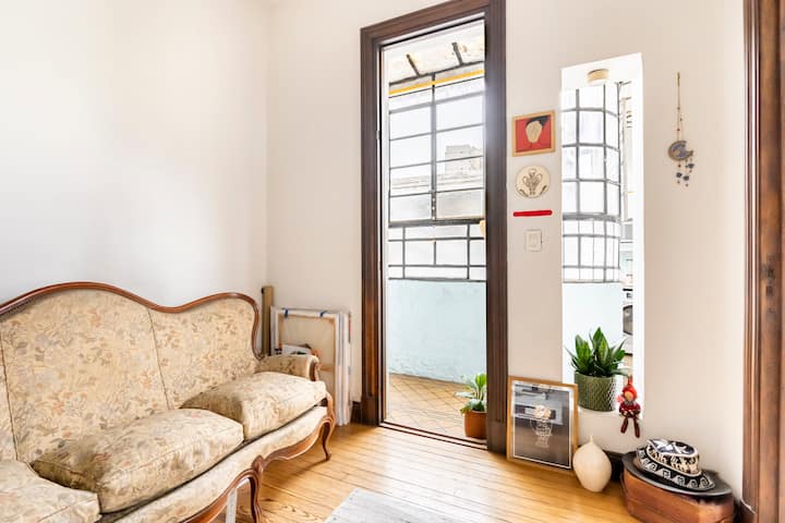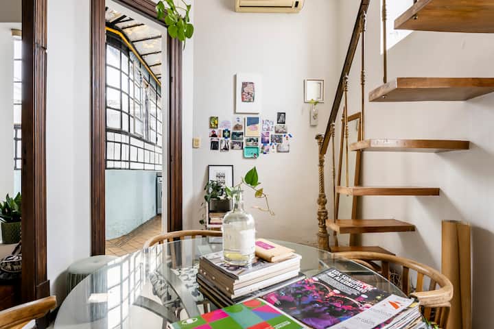 Loft reformado em prédio antigo em San Telmo, com 1 dormitório. Casa Minerva funciona como residência dos proprietários, com itens pessoais no imóvel, como livros, louças antigas e obras de arte. Há possibilidade de ruído durante os dias úteis por estar ao lado de uma escola primária, e o apartamento recebe bastante luz natural.