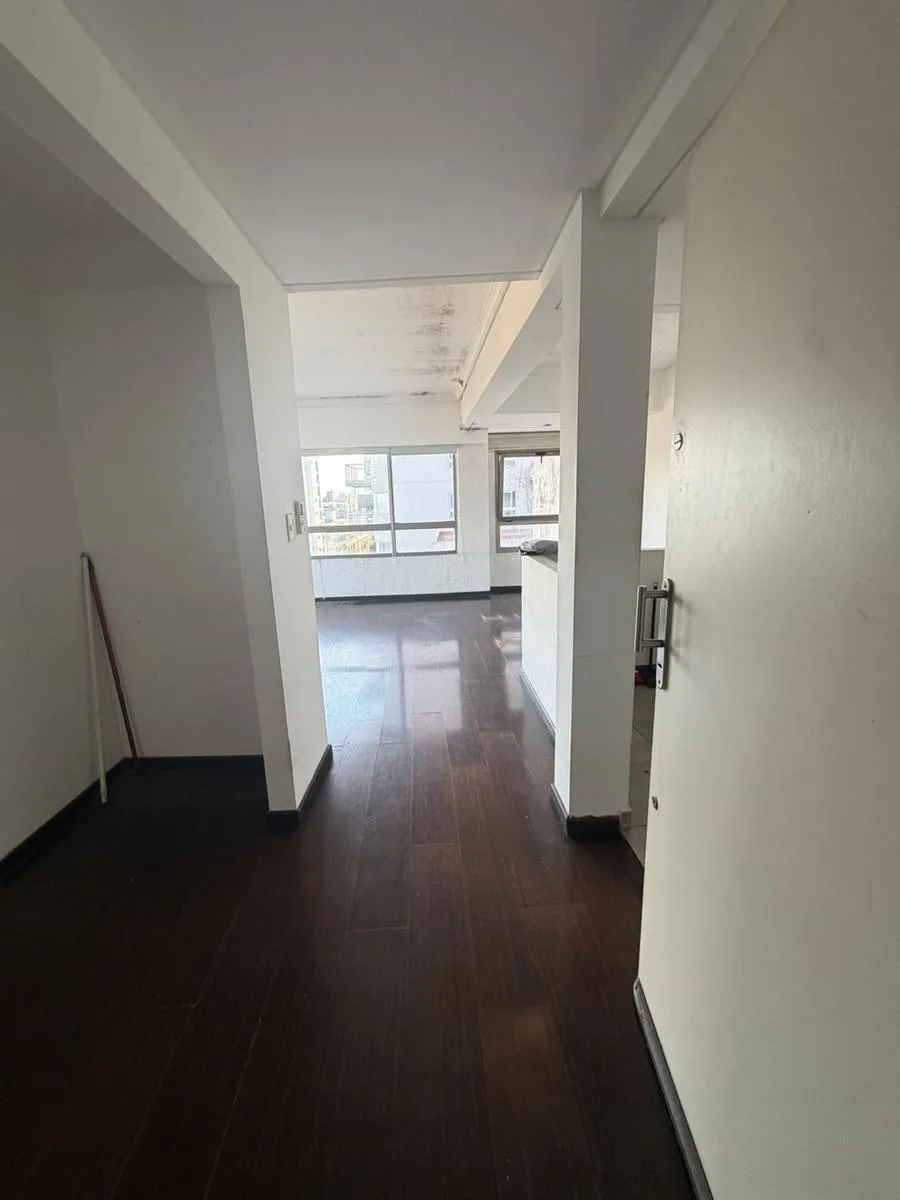 Apartamento de dois ambientes com 54 m² cobertos, de frente para a rua. O imóvel tem 1 quarto e 1 banheiro. Conta com calefação central e janelas com vidro duplo, balcão e cozinha equipada, além de área de jantar diário integrada ao living. Possui armários embutidos e detector de incêndio; há gerador elétrico e segurança na portaria. Serviços: água corrente, gás natural e eletricidade.