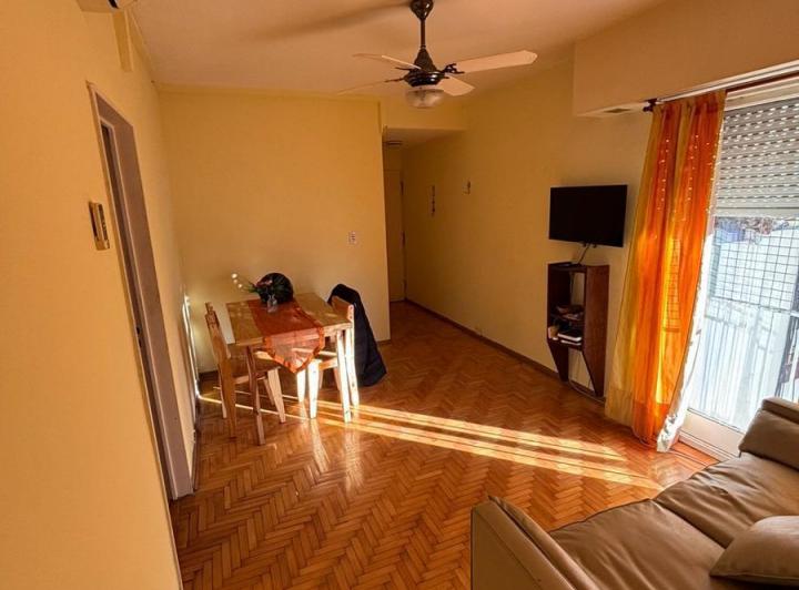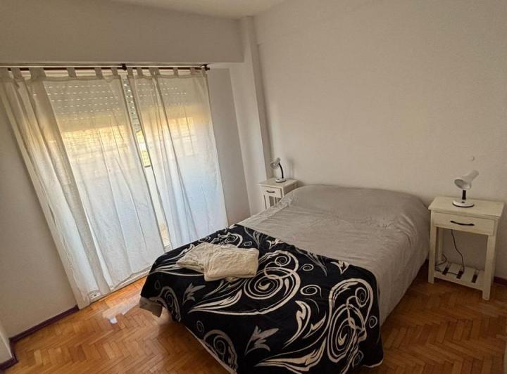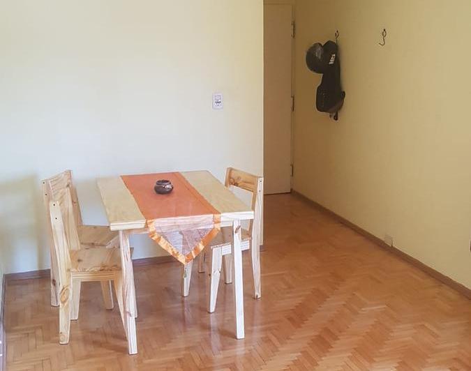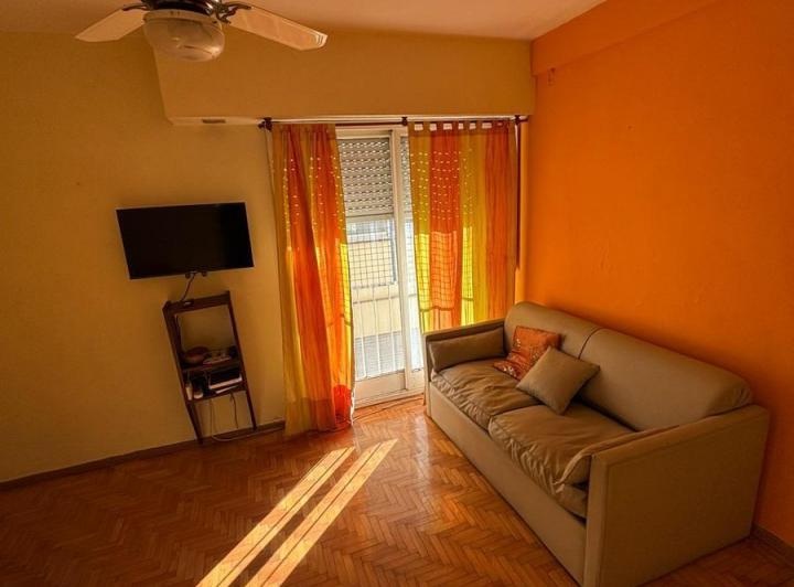 Apartamento de 2 ambientes em San Telmo, com 45 m² no total, com varanda ampla voltada para os fundos. Mobiliado e equipado, com piso de parquet plastificado e ar-condicionado frio/quente. Sala com mesa de madeira para 4 cadeiras, sofá-cama, TV de 32" e biblioteca; dormitório com cama de casal, guarda-roupa amplo, mesas de cabeceira, ventilador e porta-janel a para a varanda. Cozinha completa com micro-ondas, cafeteira, chaleira elétrica, geladeira, forno e fogão de 4 bocas, além de termotanque