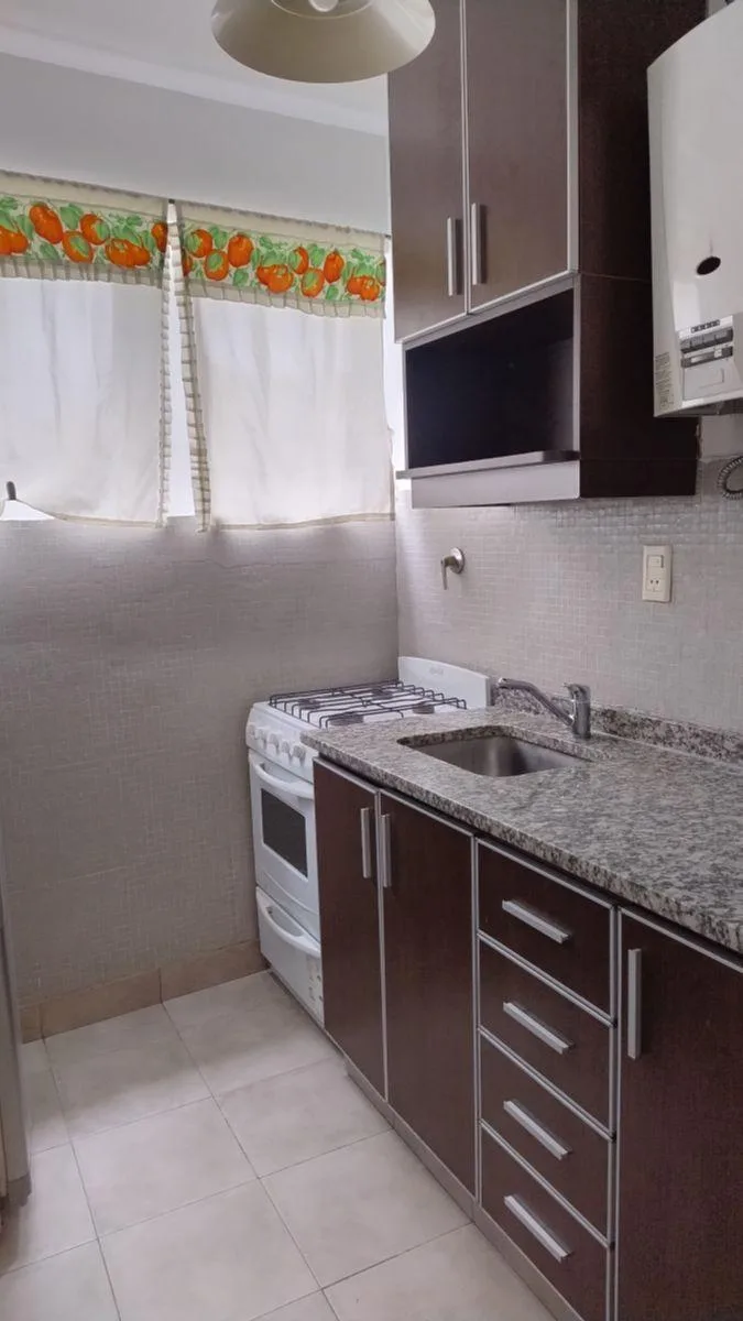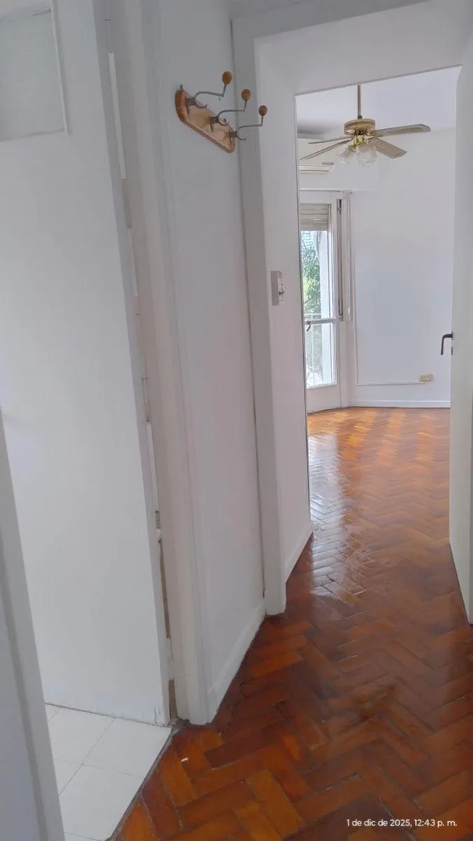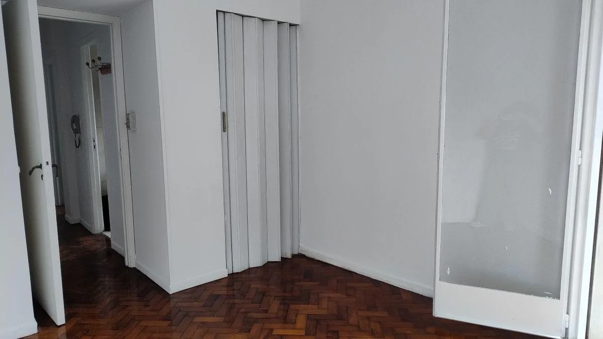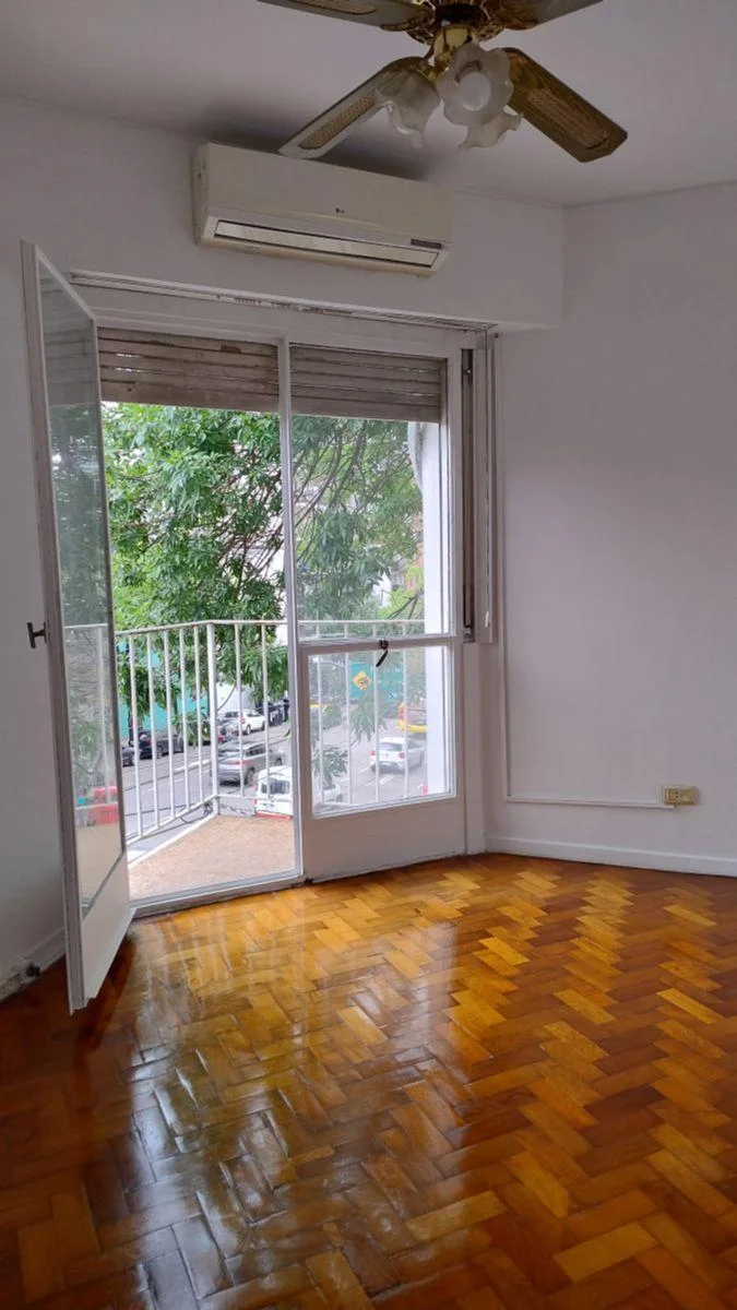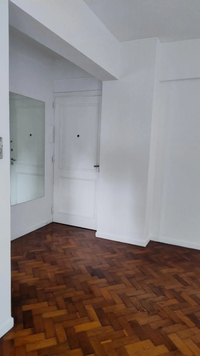 Apartamento de 2 ambientes com 45 m² de área construída e 46 m² de área total, no bairro de San Telmo. Fica no lado leste, tem 1 dormitório, sala de estar e jantar, cozinha integrada, 1 banheiro completo e hall de entrada. Possui varanda, ar-condicionado e é entregue recém-pintado. O prédio tem elevador e encarregado. Contrato de 2 anos, com ajuste trimestral por ICL e pagamento de 1 mês adiantado e 2 meses de depósito. Exige comprovação de renda (inquilino e fiador) e garantia por propriedade o