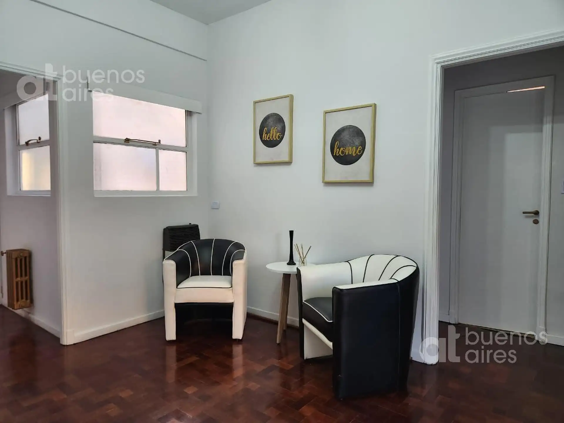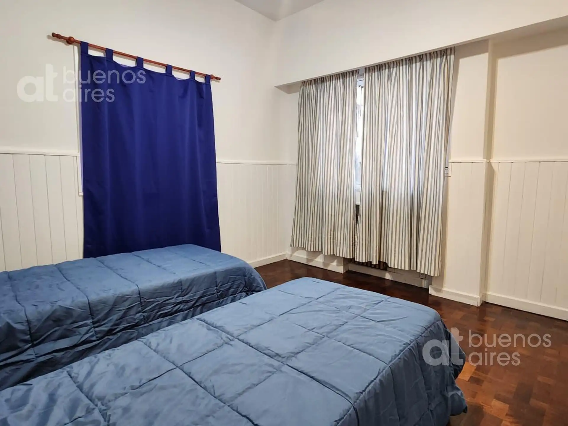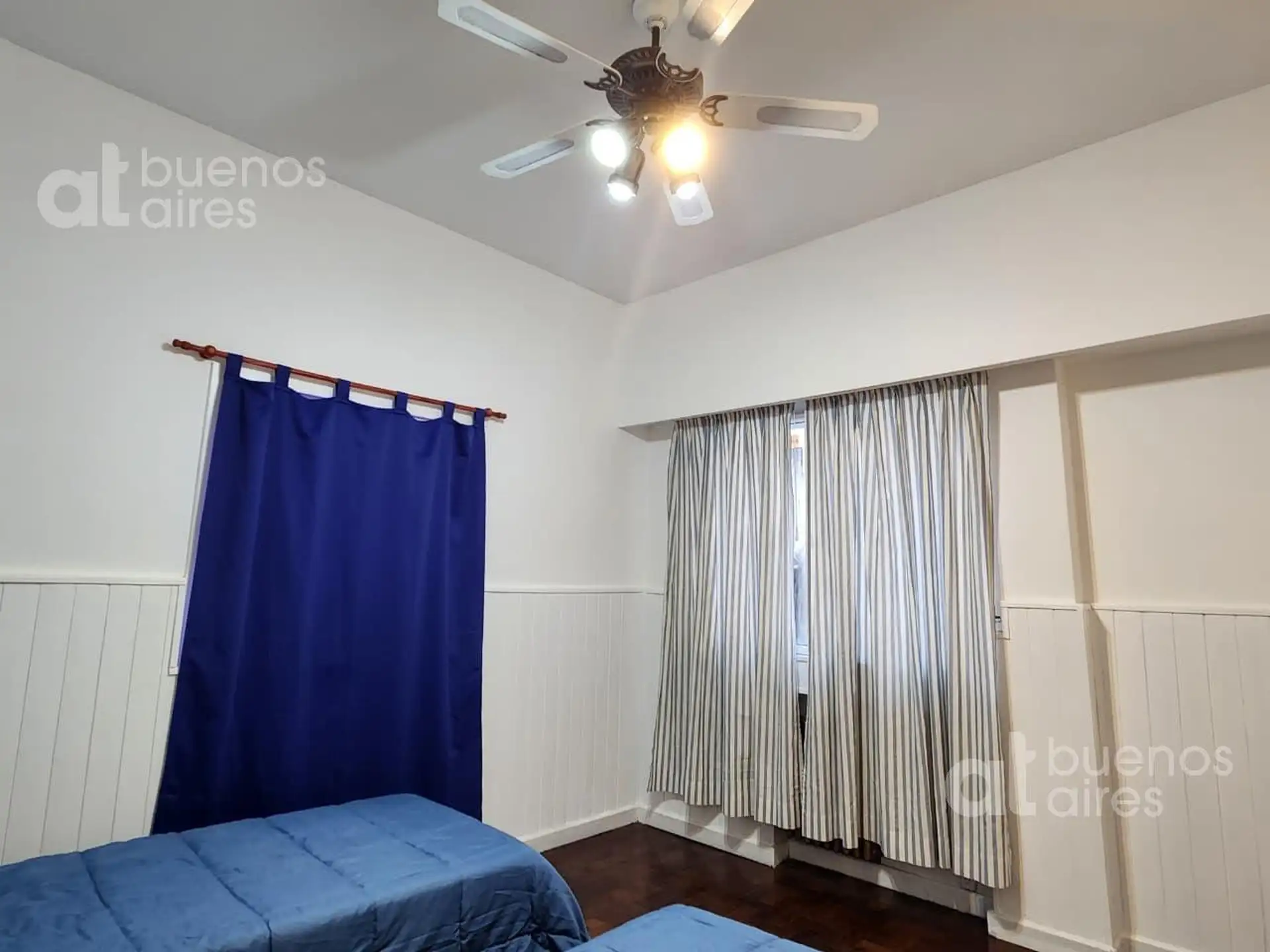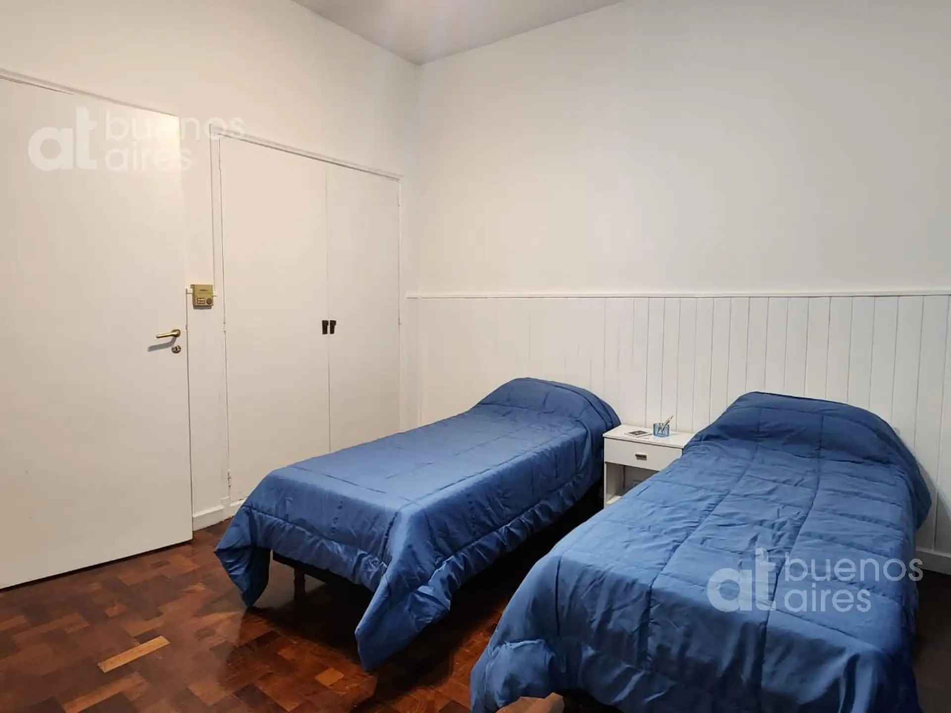 Apartamento de dois ambientes, de fundos (contrafrente), mobiliado e totalmente equipado, com 1 quarto e capacidade para 3 pessoas. O imóvel tem sala e sala de jantar com grande janela, ventilador de teto no dormitório e armário embutido. A cozinha é independente, com geladeira com freezer, forno, fogão a gás, micro-ondas e armários; há 1 banheiro completo. Disponível a partir de 10/04/2026. O valor anunciado é “tudo incluído”, com exceção de luz e gás, que ficam a cargo do inquilino.