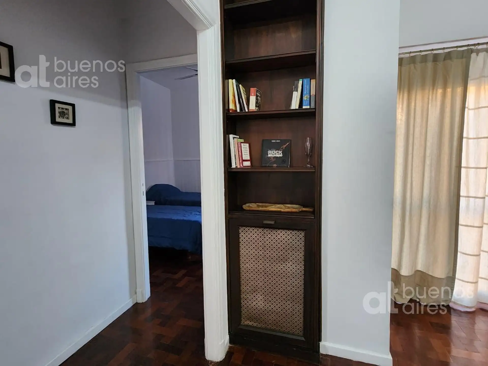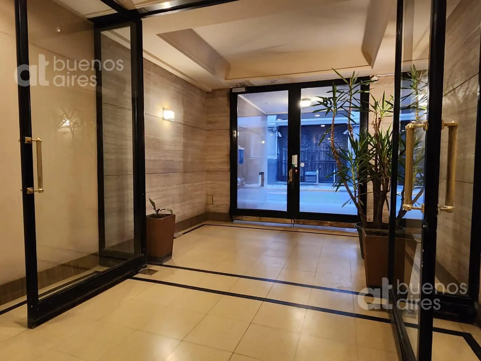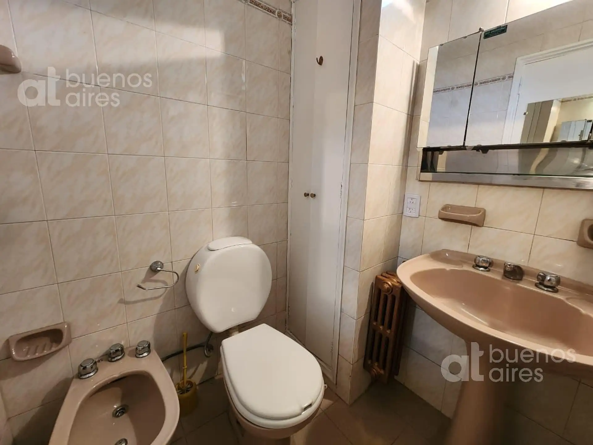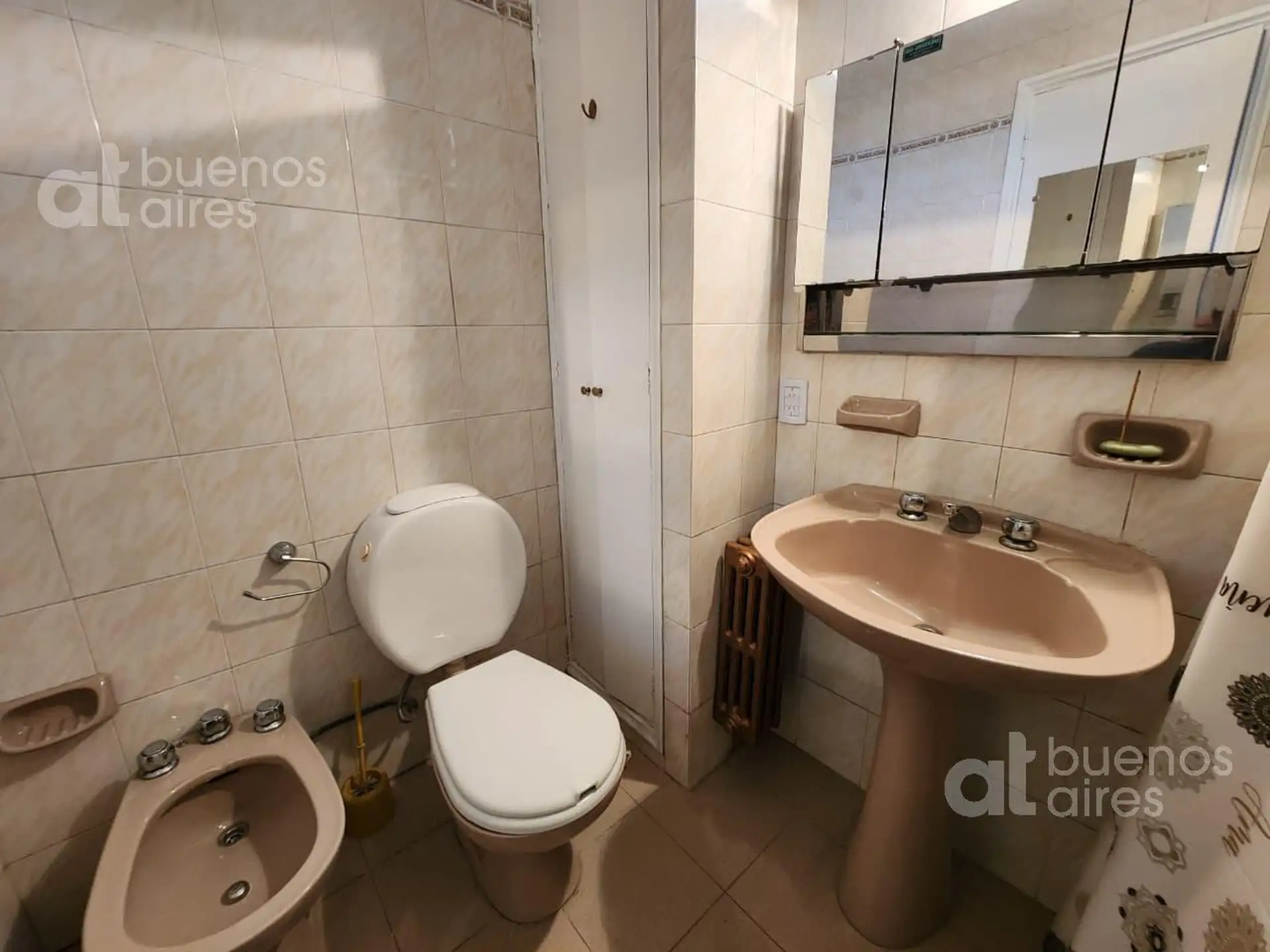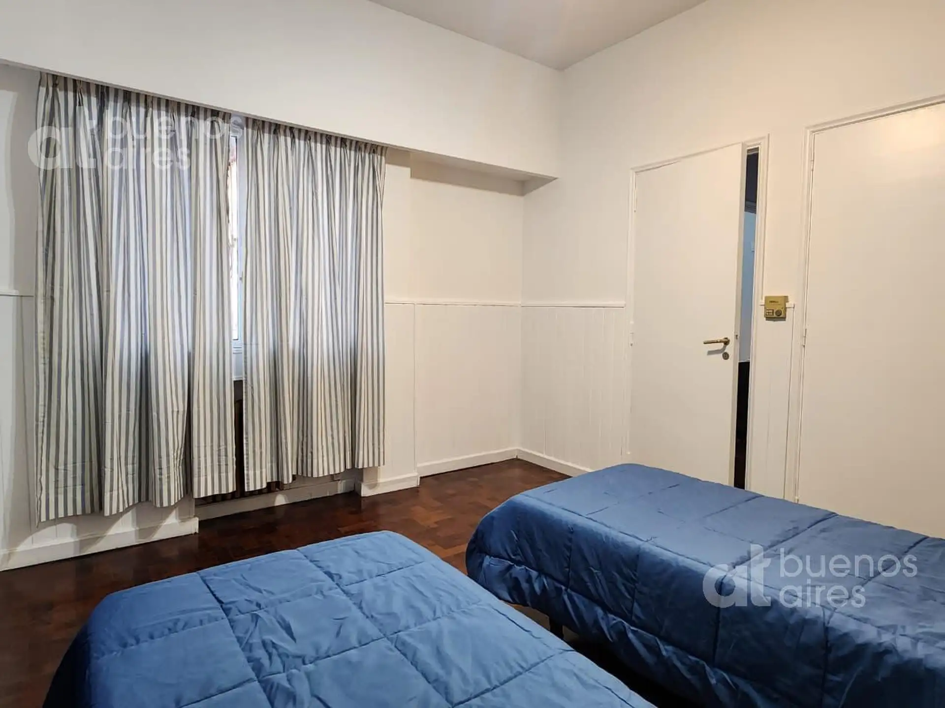 Apartamento de dois ambientes, de fundos (contrafrente), mobiliado e totalmente equipado, com 1 quarto e capacidade para 3 pessoas. O imóvel tem sala e sala de jantar com grande janela, ventilador de teto no dormitório e armário embutido. A cozinha é independente, com geladeira com freezer, forno, fogão a gás, micro-ondas e armários; há 1 banheiro completo. Disponível a partir de 10/04/2026. O valor anunciado é “tudo incluído”, com exceção de luz e gás, que ficam a cargo do inquilino.
