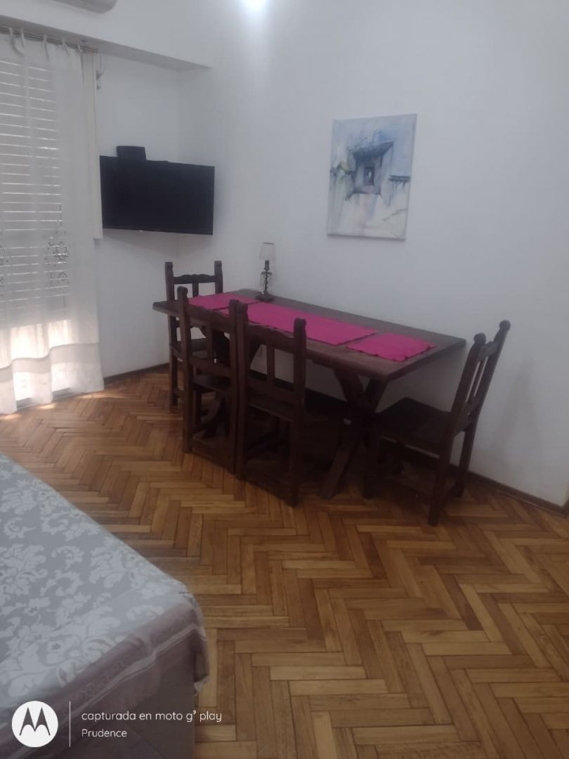 Apartamento de dois ambientes com 35 m² em San Telmo, lateral, com varanda do tipo francês. Mobiliado com sala de estar e jantar, quarto com cama de casal e armário amplo, cozinha equipada e banheiro completo. Inclui TV e Wi-Fi, ar-condicionado f/c e segurança no prédio. Não inclui lençóis nem toalhas. Condomínio aprox. de 100.000 ARS; demais serviços a cargo do inquilino. Não são aceitos animais. Locação temporária de 3 meses.