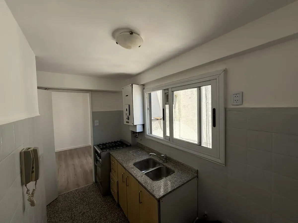 Apartamento de 2 ambientes em San Telmo, no 9º andar, de fundos. Conta com sala de estar e jantar com ar-condicionado, quarto com amplo armário embutido e banheiro completo com exaustor. Cozinha independente com ventilação para o exterior, fogão e forno a gás, conexão para lavadora e banheiro completo com ventilação para o exterior; água quente por calefón. Janelas e portas novas em todos os ambientes. Condomínio aprox. de ARS 150.000. Contrato de 2 anos com reajuste trimestral pelo IPC. Requere