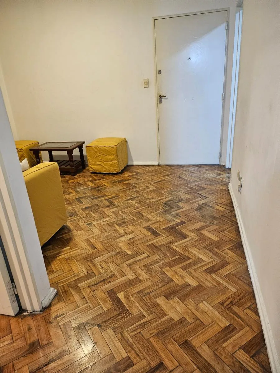 Apartamento para locação em San Telmo com 2 ambientes e 32 m². Piso de parquet e alguns móveis. Área de estar de 4,15 x 2,9 m, dormitório de 3 x 2,6 m com placard, banheiro completo com ventilação externa e cozinha de 3,36 x 1,90 m com área de lavanderia integrada. Não é permitido ter animais de estimação. Requisitos: 1 mês de adiantamento em dinheiro e 1 mês de depósito em dinheiro, reajustes semestrais pelo índice ICL, apenas com seguro fiança; comprovante de renda. Não aceita garantia proprie