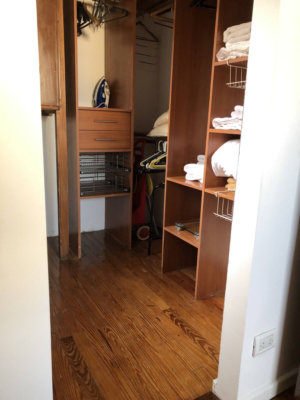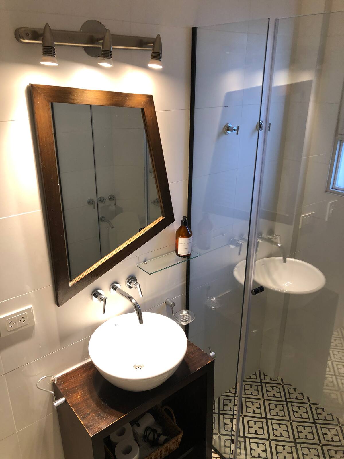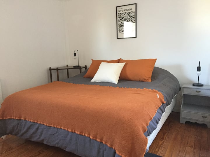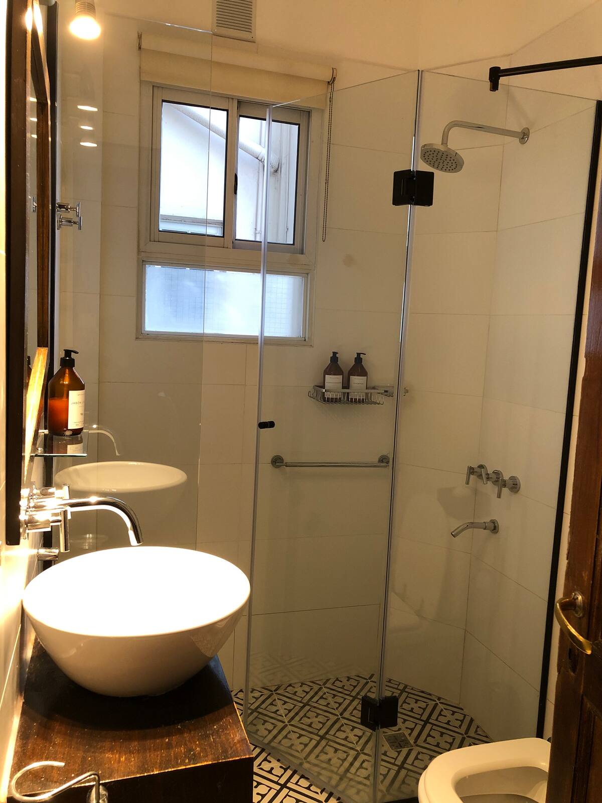 Apartamento em San Telmo com sala e cozinha totalmente equipada. Inclui geladeira com congelador, máquina de lavar automática, chaleira elétrica, cafeteira e liquidificador. O quarto tem cama king size, ar-condicionado, smart TV e armário/dressing room, além de mesa de trabalho. O banheiro é acessível a partir do quarto e da sala. A conexão de internet e a velocidade dependem exclusivamente do provedor.