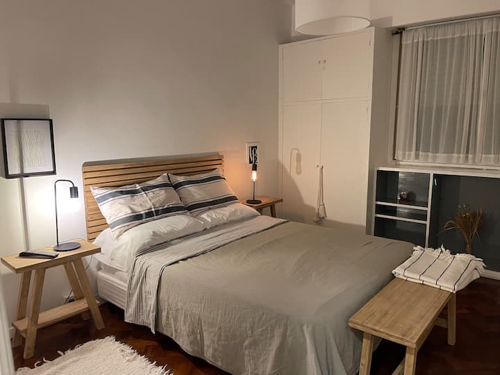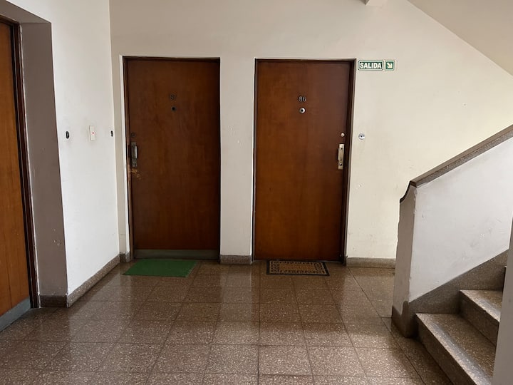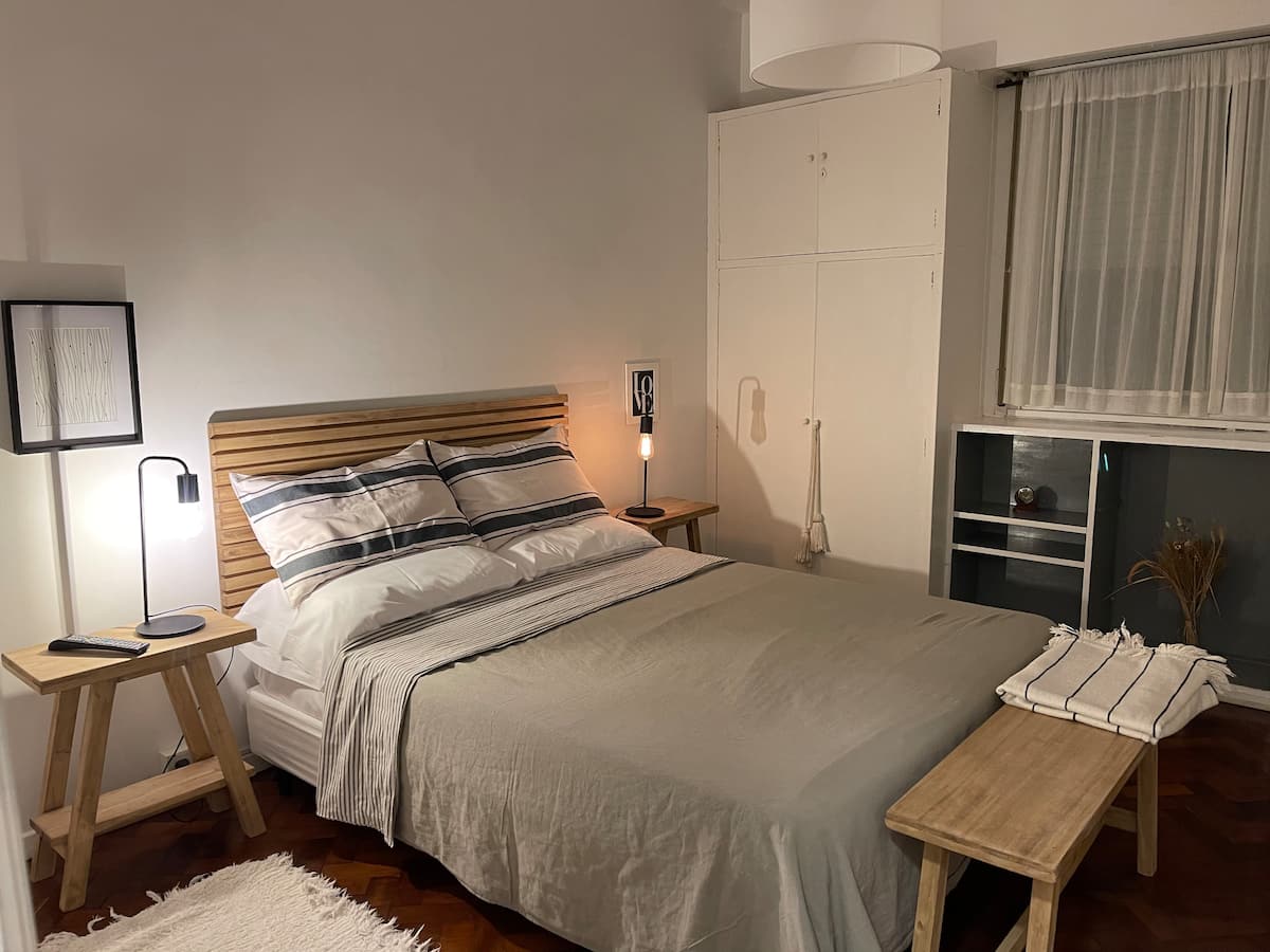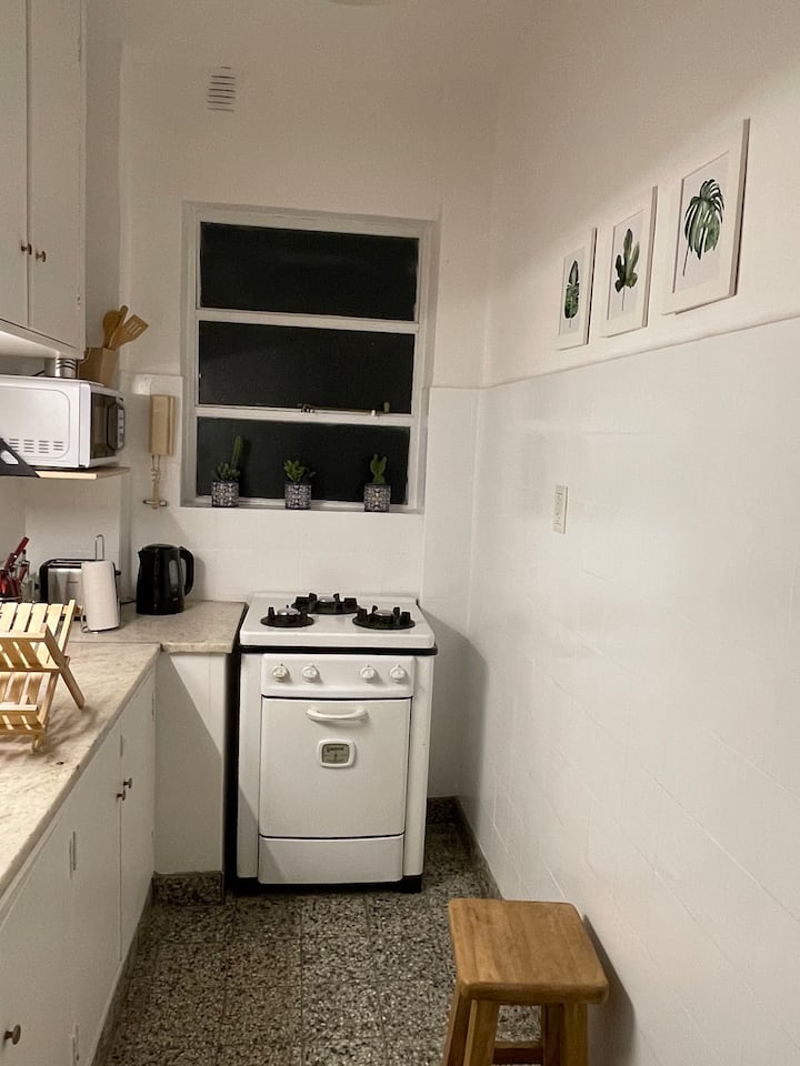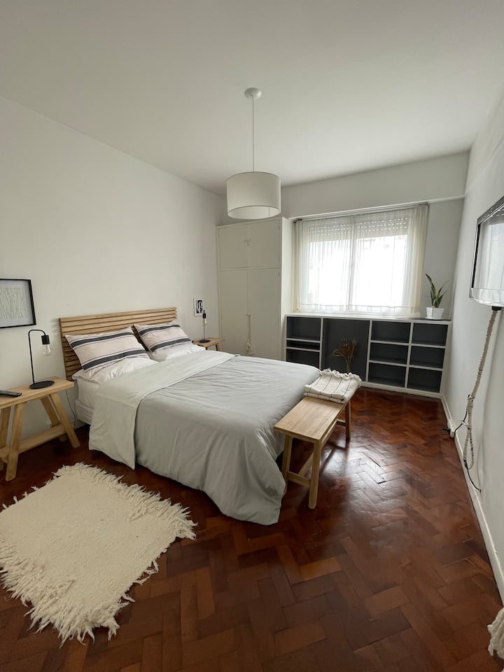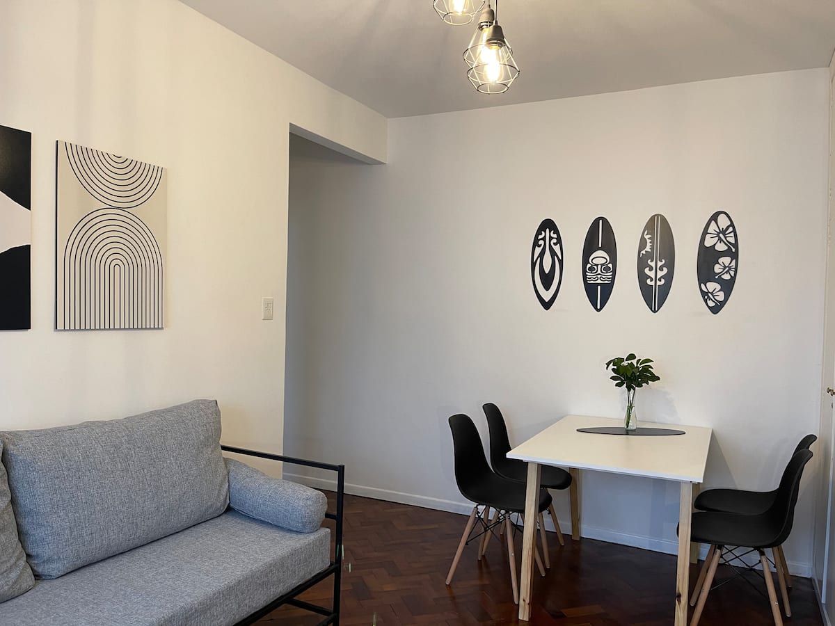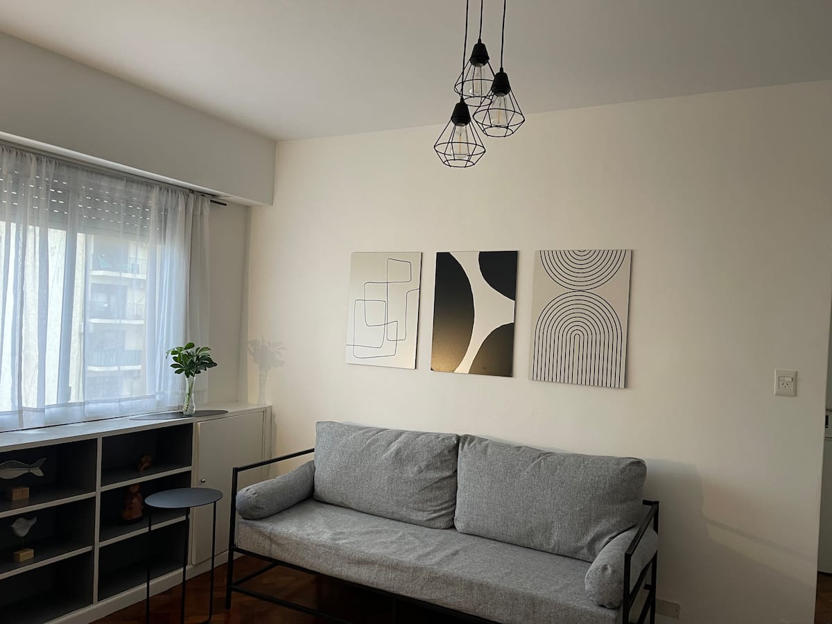 Apartamento com 1 quarto, sala, cozinha separada e 1 banheiro, no 7º andar em San Telmo. Tem vista aberta e recebe luz natural. O prédio dispõe de 2 elevadores. Há 2 TVs com serviço S-Mart e acesso a cabo; no quarto há cama de casal e na sala, sofá-cama.