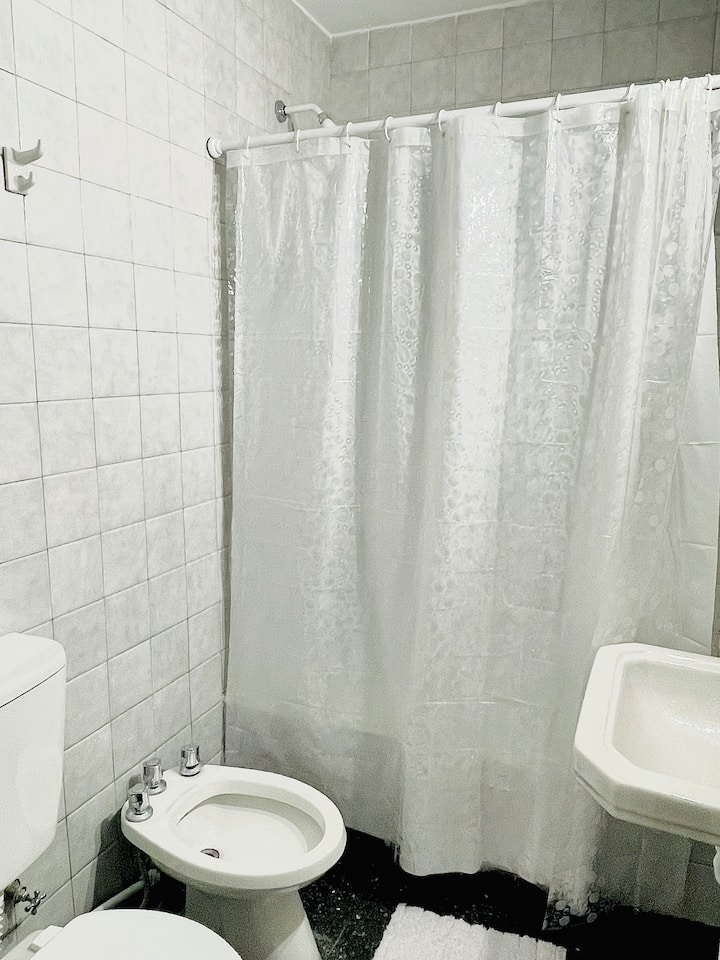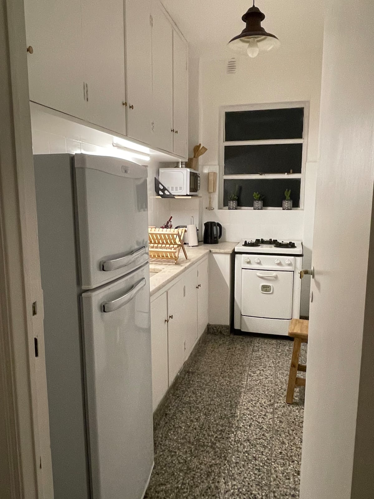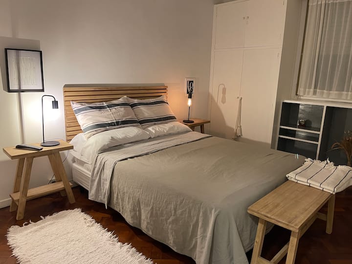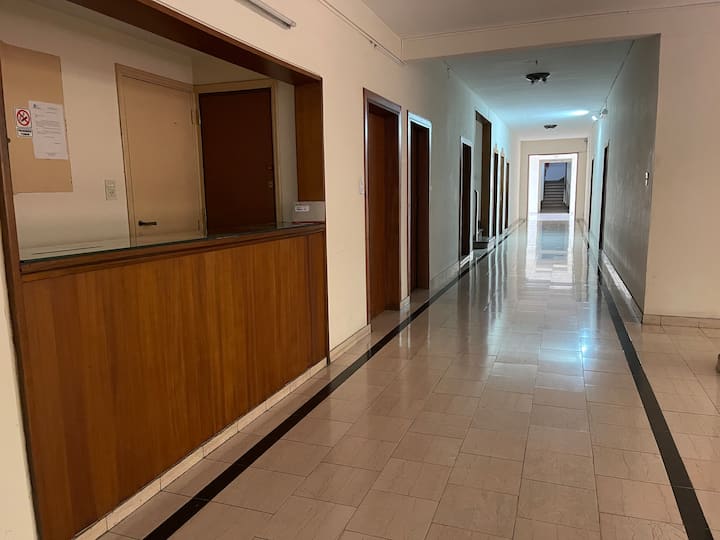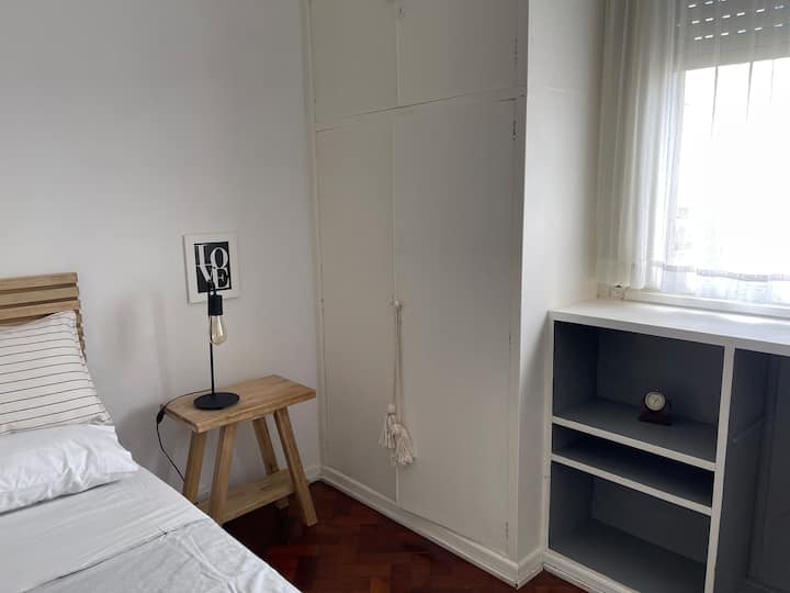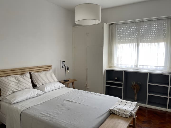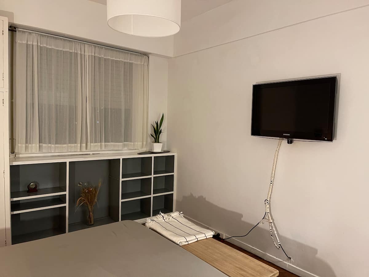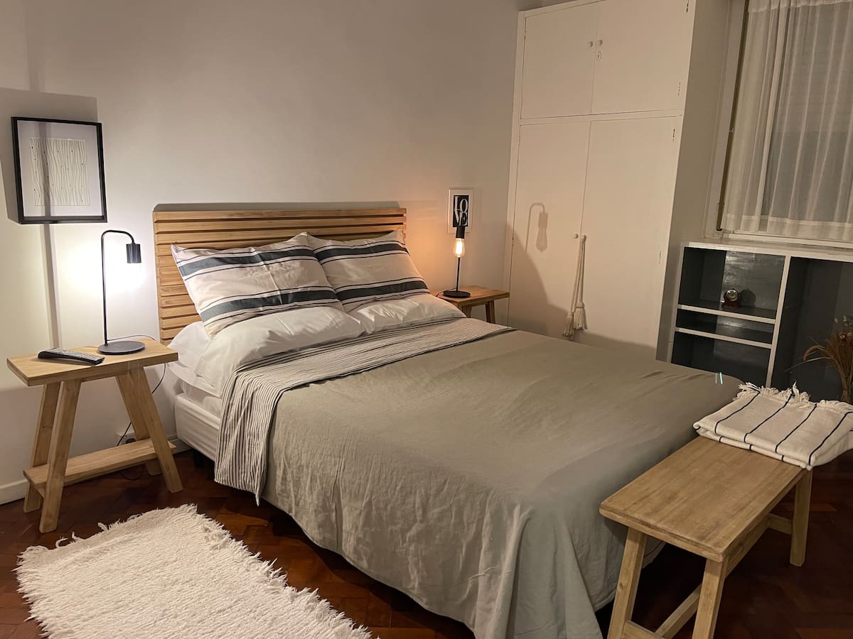 Apartamento com 1 quarto, sala, cozinha separada e 1 banheiro, no 7º andar em San Telmo. Tem vista aberta e recebe luz natural. O prédio dispõe de 2 elevadores. Há 2 TVs com serviço S-Mart e acesso a cabo; no quarto há cama de casal e na sala, sofá-cama.