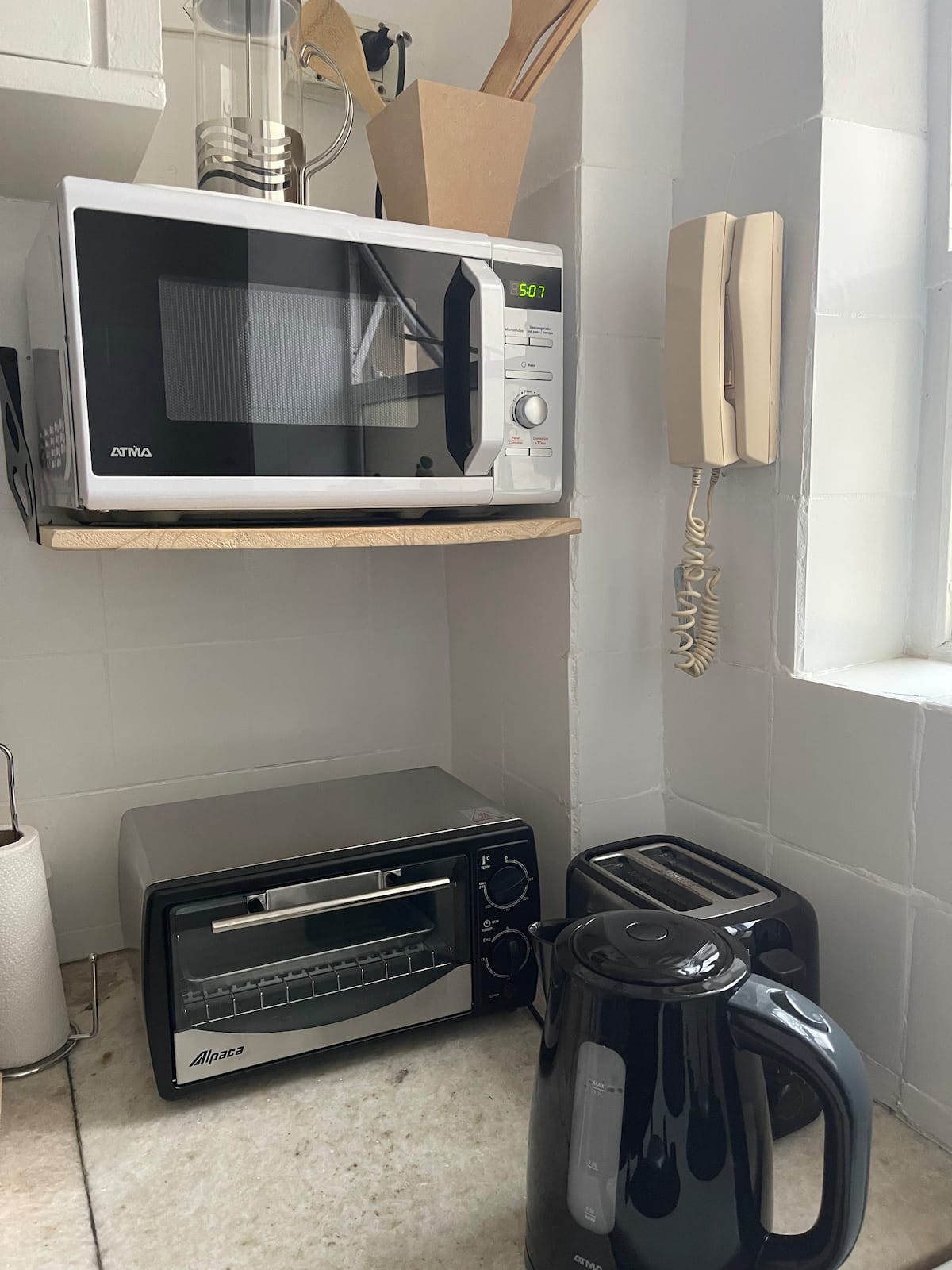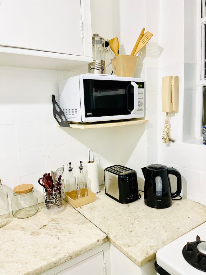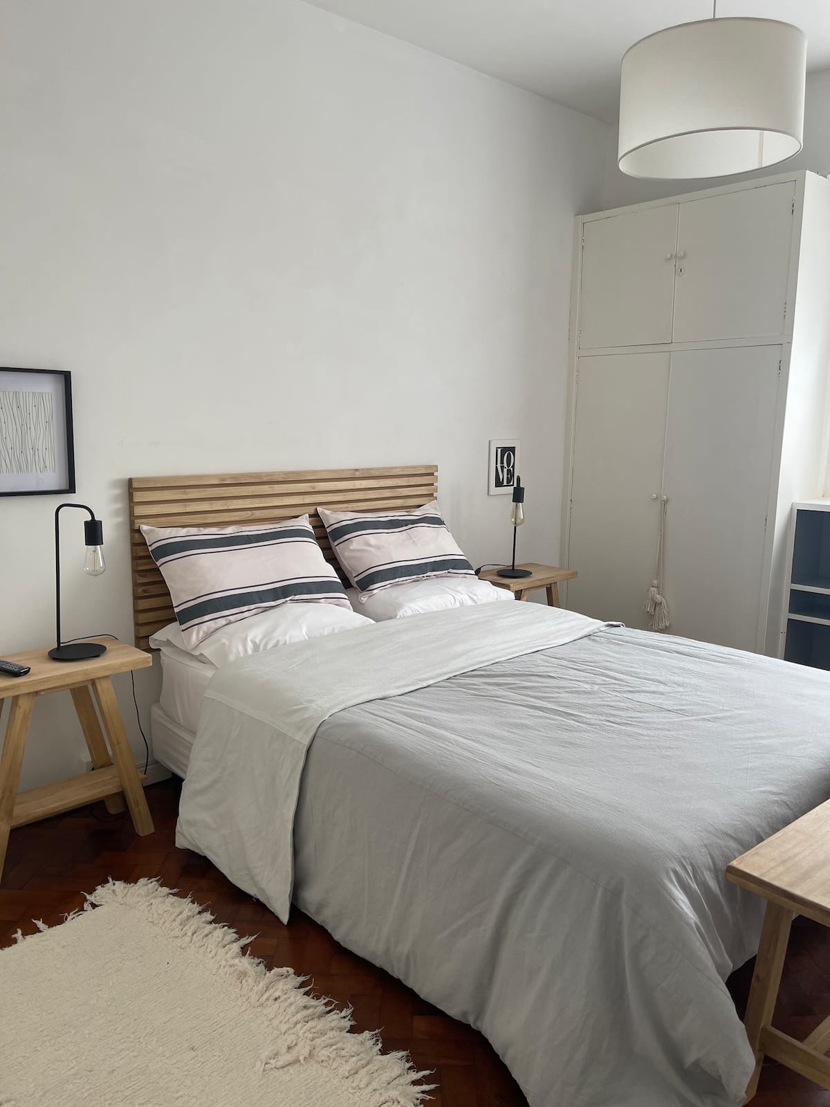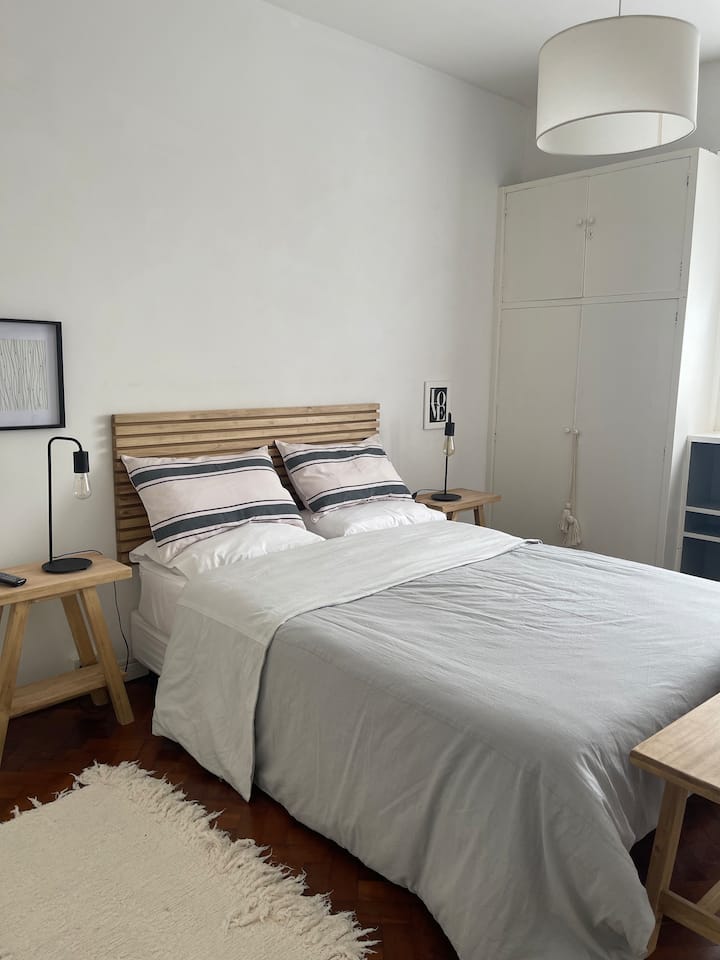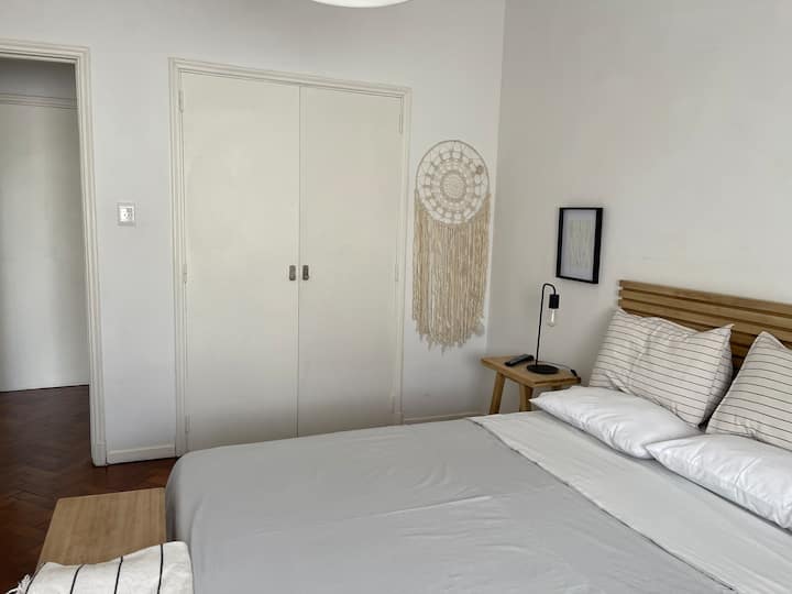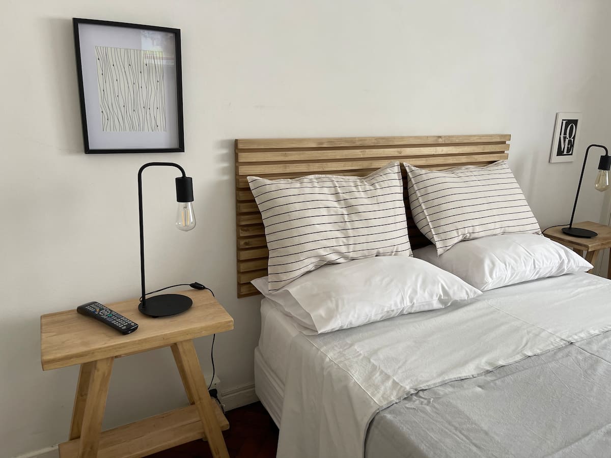 Apartamento com 1 quarto, sala, cozinha separada e 1 banheiro, no 7º andar em San Telmo. Tem vista aberta e recebe luz natural. O prédio dispõe de 2 elevadores. Há 2 TVs com serviço S-Mart e acesso a cabo; no quarto há cama de casal e na sala, sofá-cama.