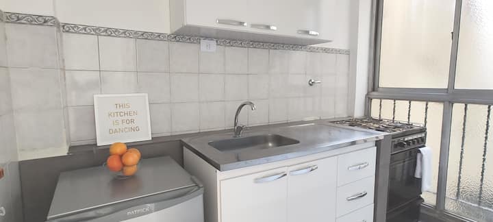 Apartamento em San Telmo, em edifício de habitação permanente e silencioso, sem amenidades. O acesso é por chave para o elevador e para a unidade. A localização fica a 2 quadras da estação C do metrô, da Av. 9 de Julio e do Metrobus; o Mercado de San Telmo, Plaza Dorrego, a Feira, bares, lojas de antiguidades e locais de tango ficam a 4 quadras. É possível caminhar até Plaza de Mayo e Puerto Madero.