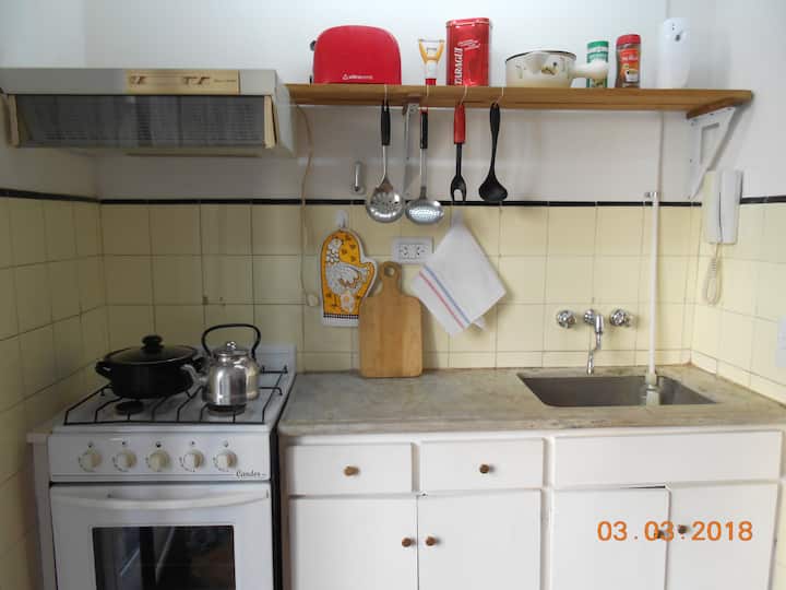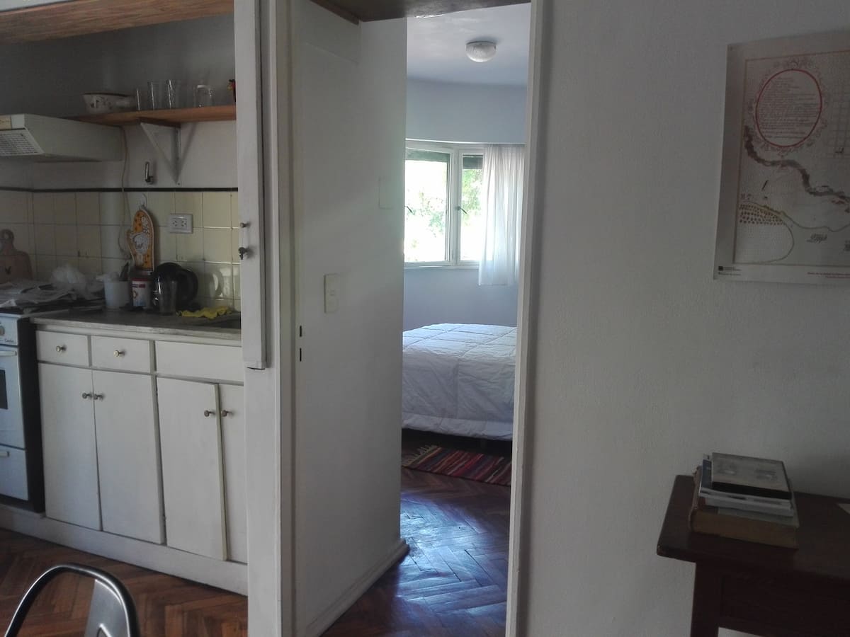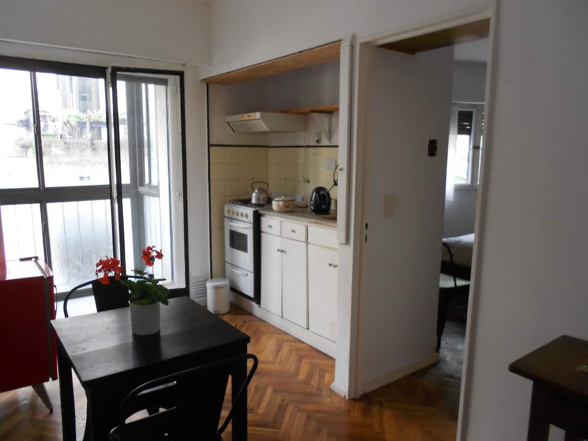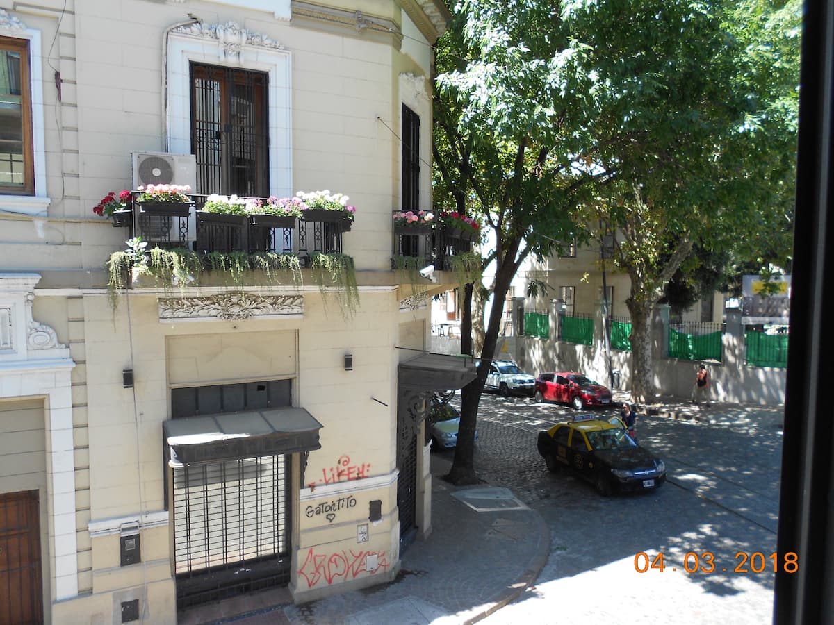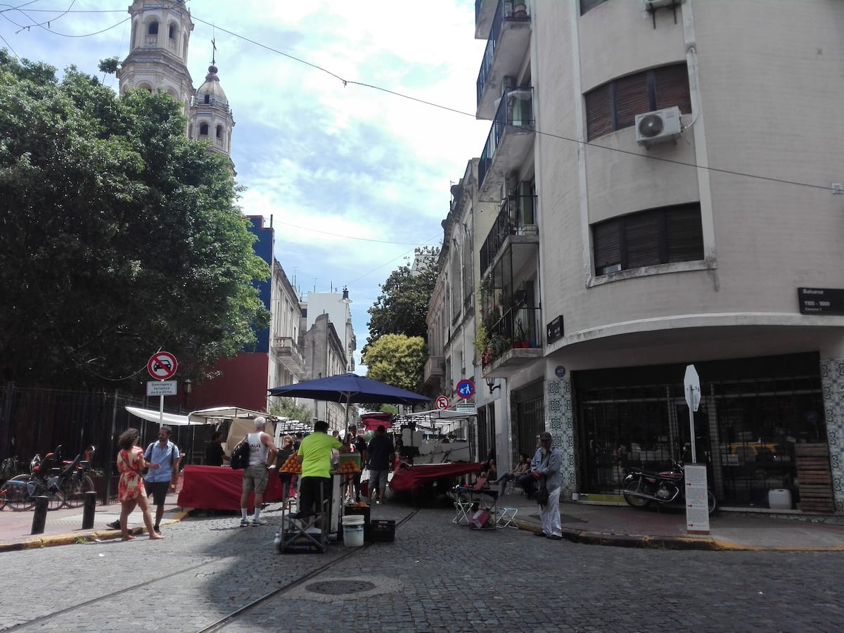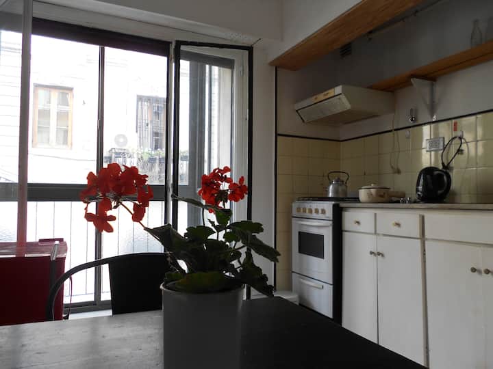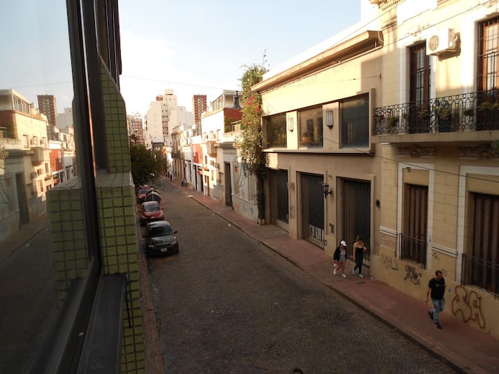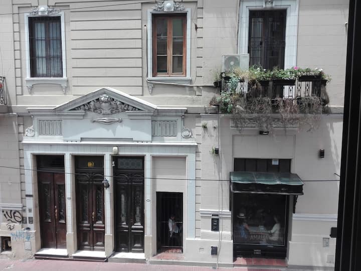 Apartamento em San Telmo, a 1 quarteirão da Plaza Dorrego. Fica a 1 quarteirão do Bajo Metrobus e próximo ao Mercado de San Telmo. A unidade tem varanda com vista para o exterior. O edifício não tem rampa para acesso, o que o torna inadequado para pessoas com mobilidade reduzida.
