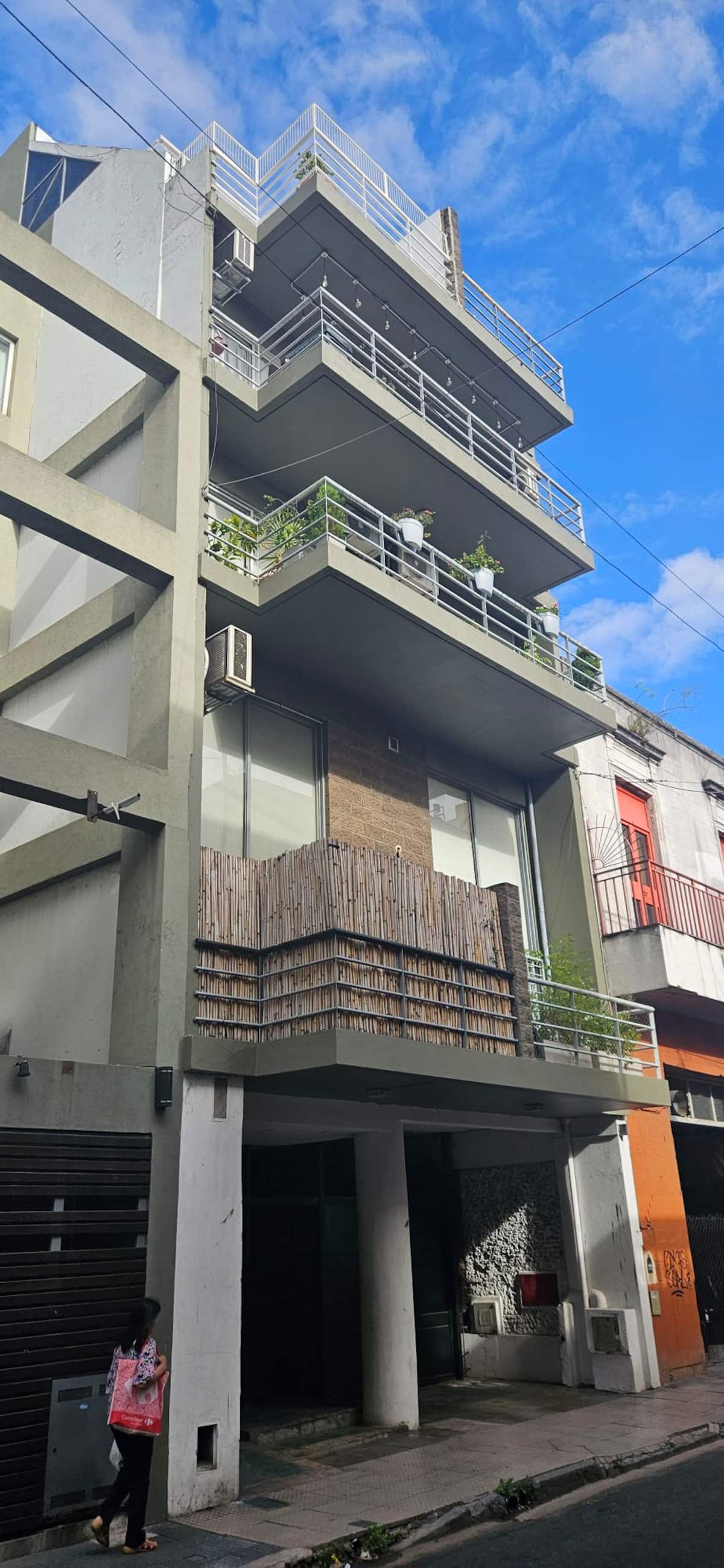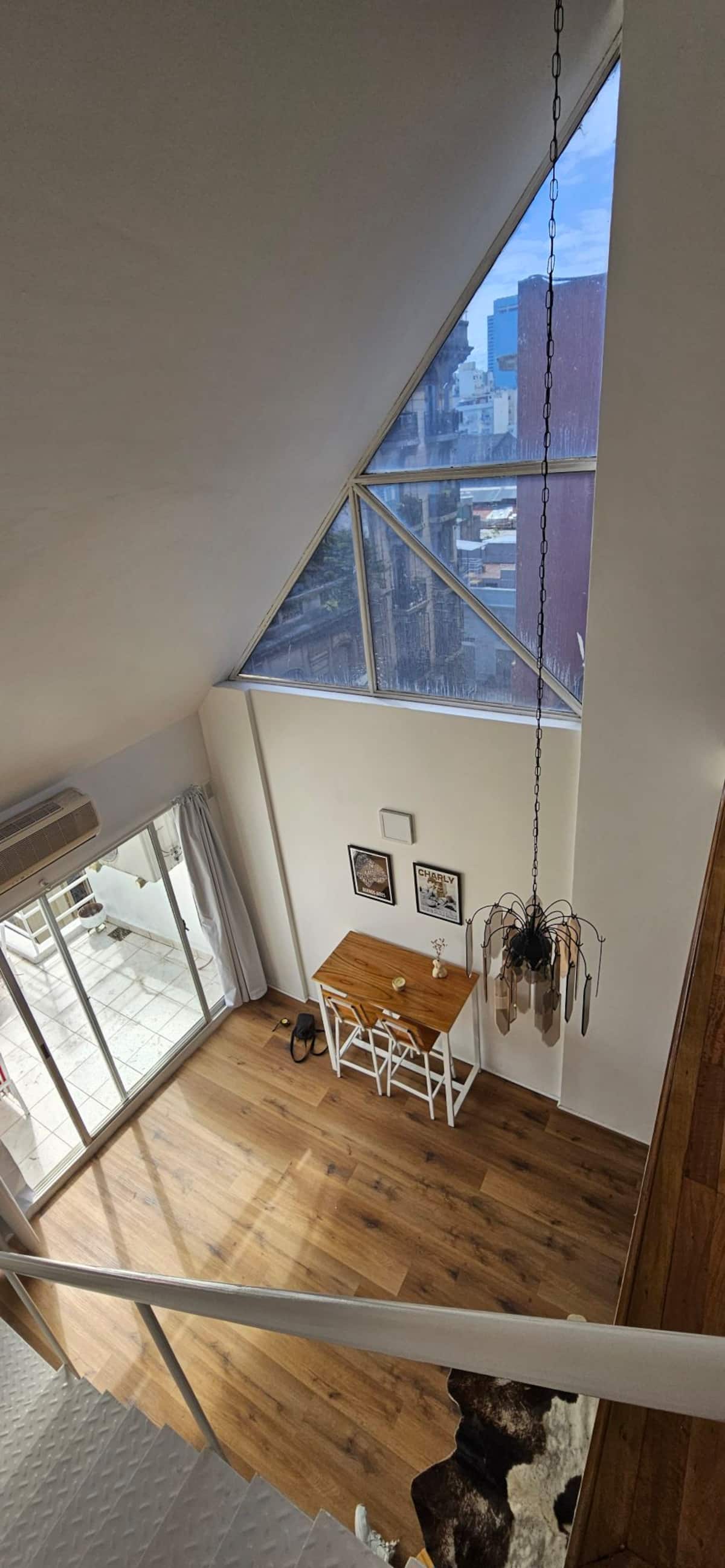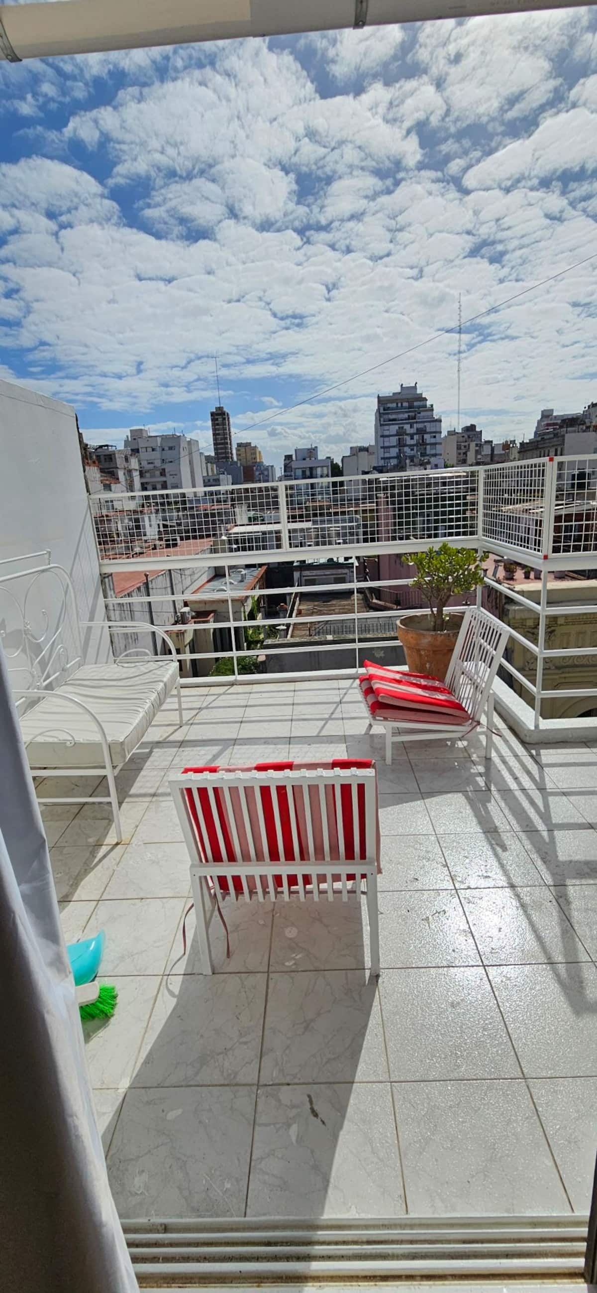 Apartamento em San Telmo com 1 quarto e terraço na varanda. Fica no último andar. A descrição menciona vista.