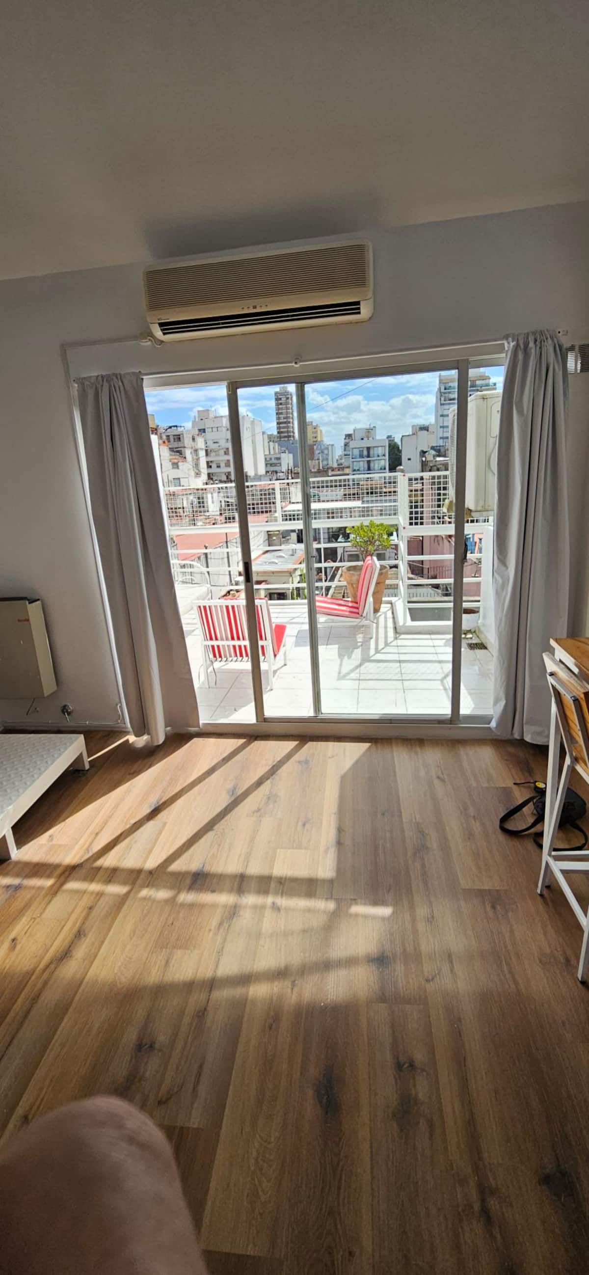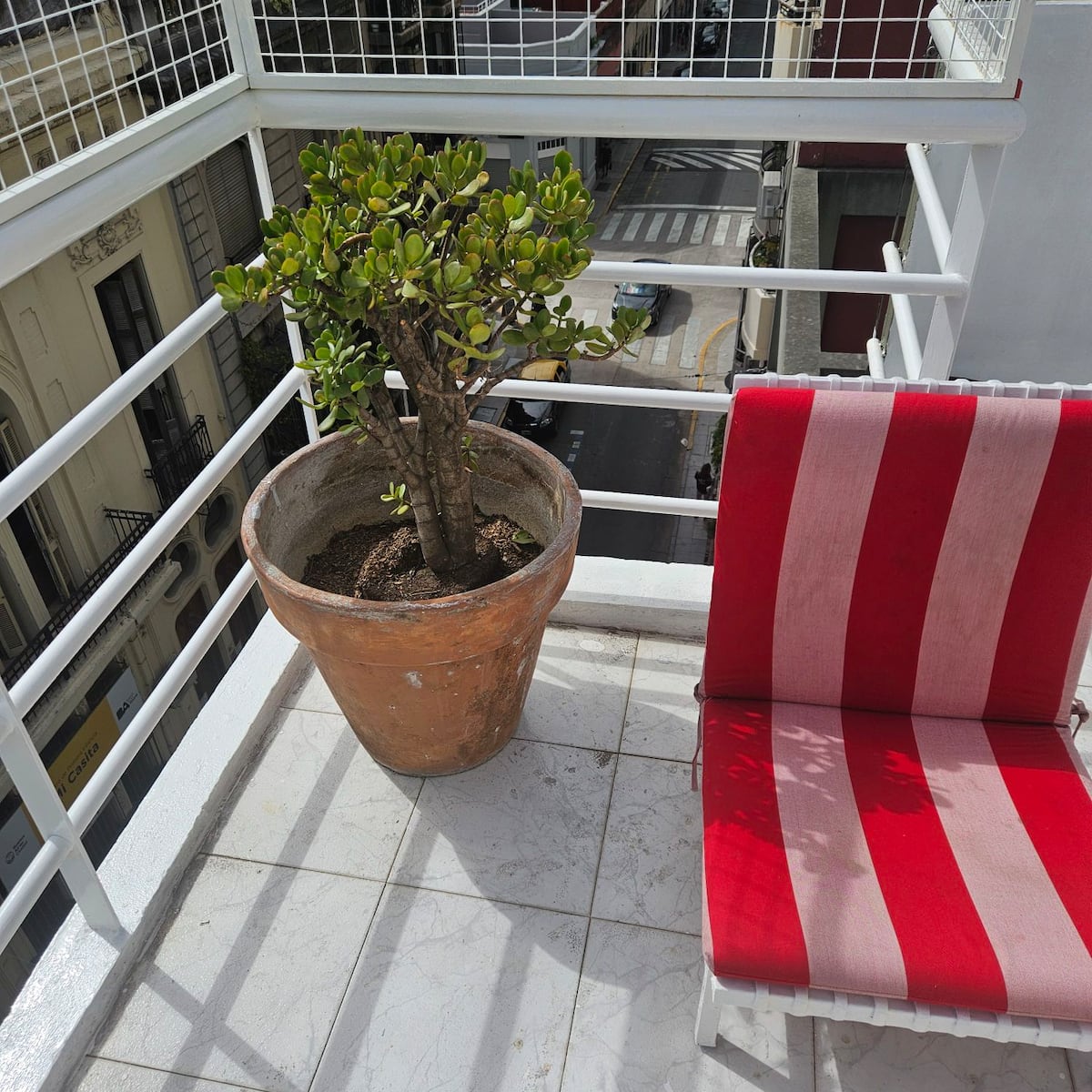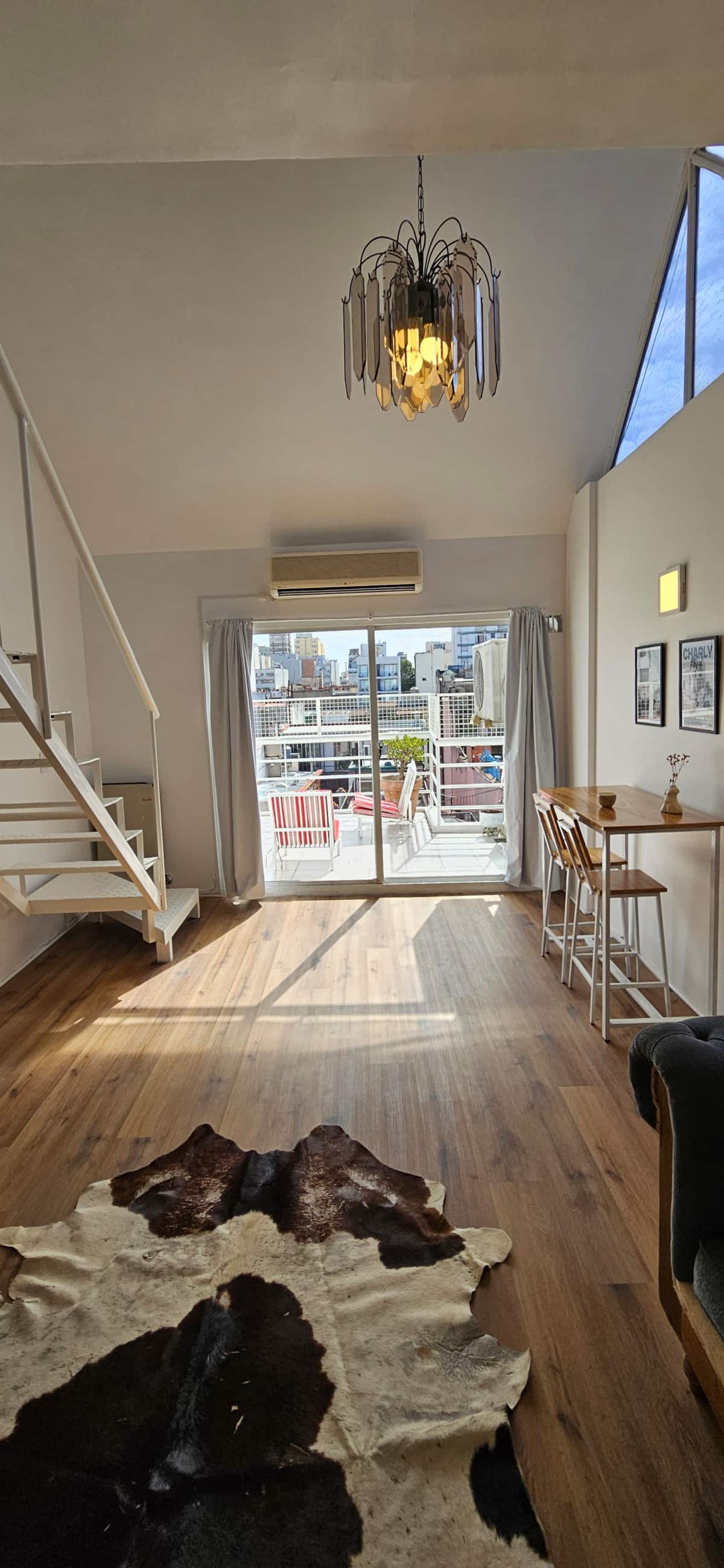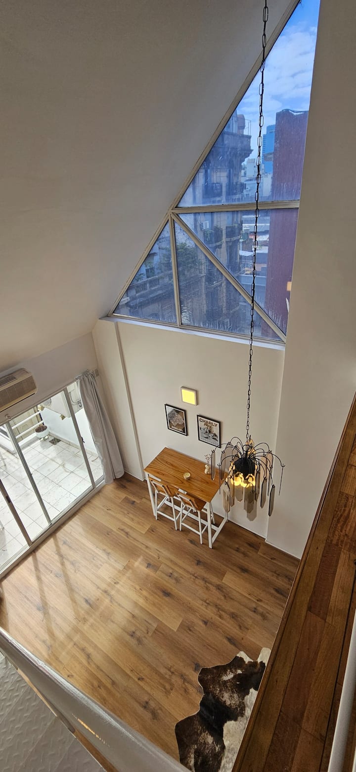 Apartamento em San Telmo com 1 quarto e terraço na varanda. Fica no último andar. A descrição menciona vista.