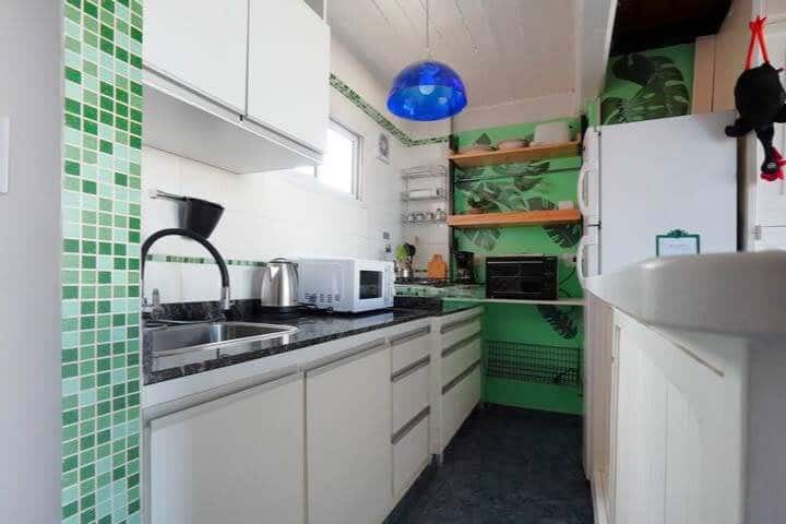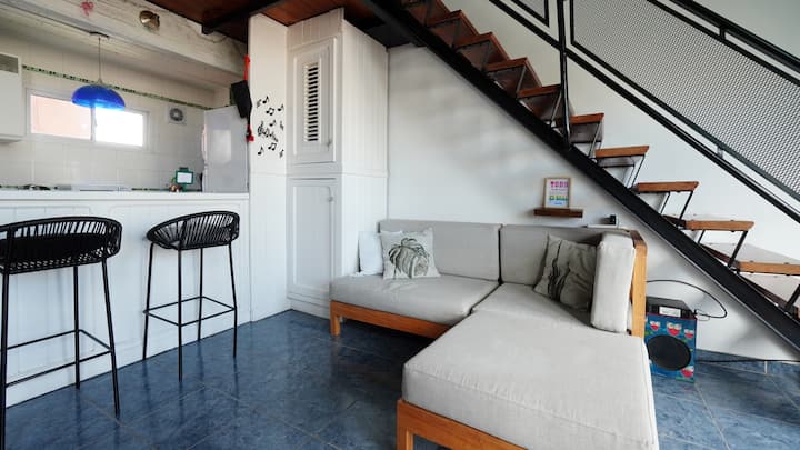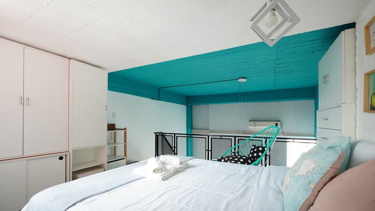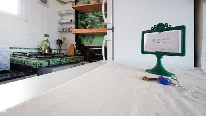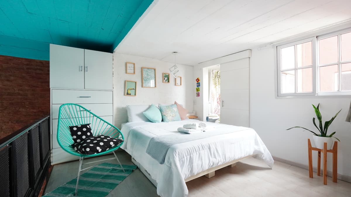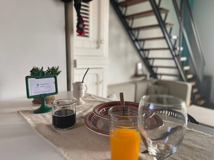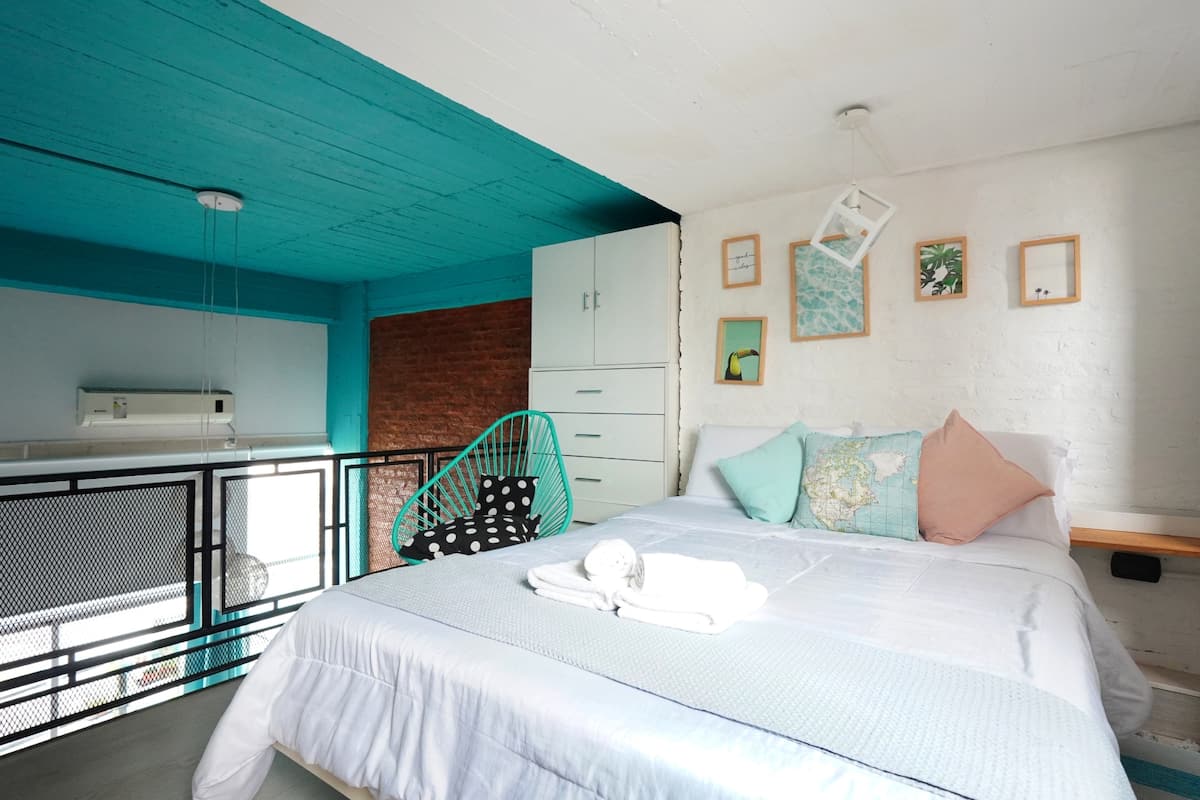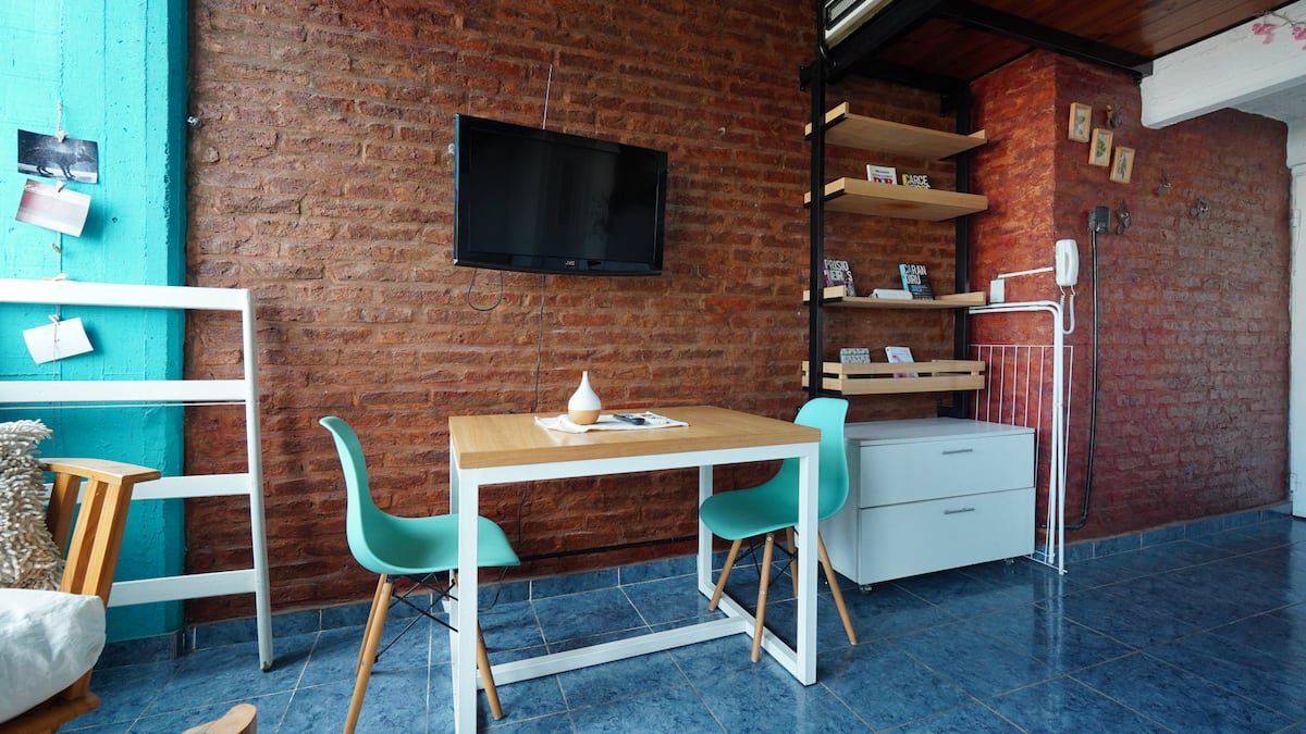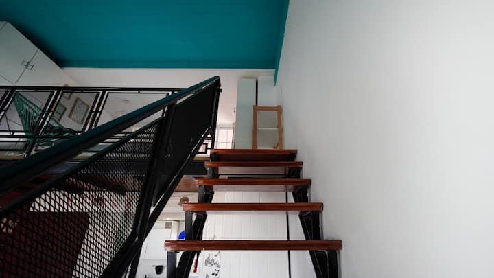 Apartamento duplex em San Telmo com 1 quarto. A unidade tem acesso a áreas comuns do prédio. Por ser do tipo duplex, há necessidade de subir escadas; o quarto e o único banheiro ficam no 2º andar. A cozinha e o quarto são entregues equipados, com máquina de lavar e Wi-Fi de alta velocidade.
