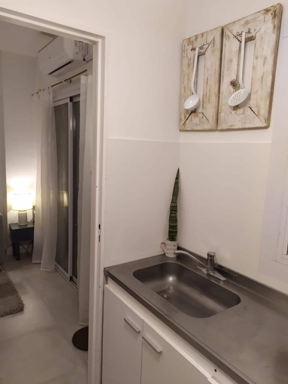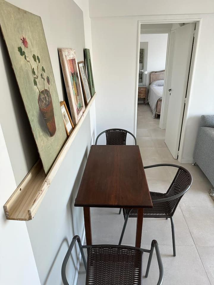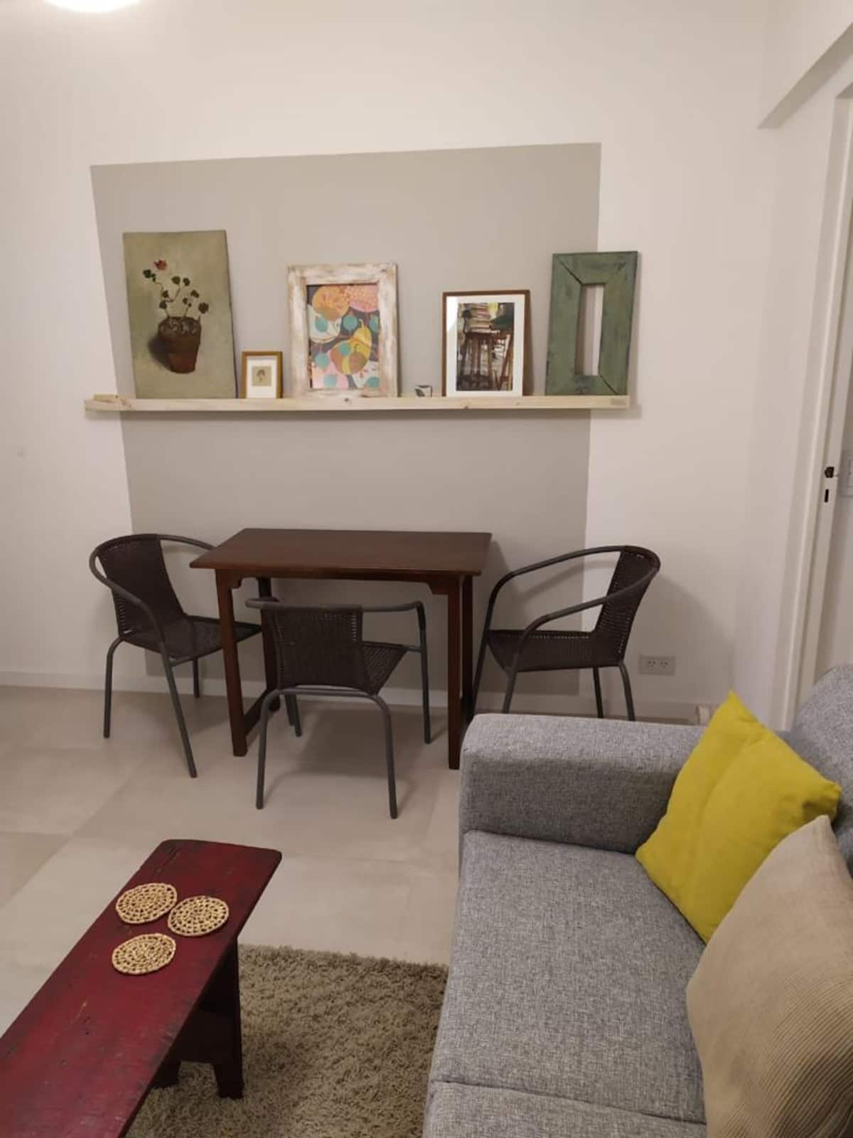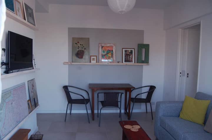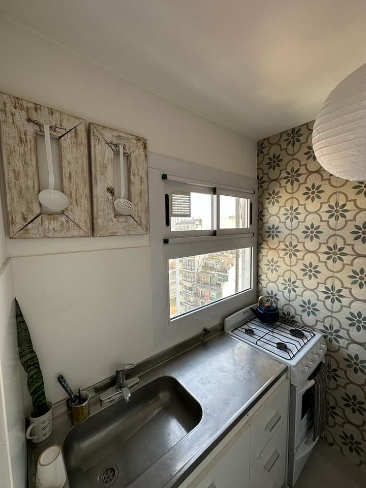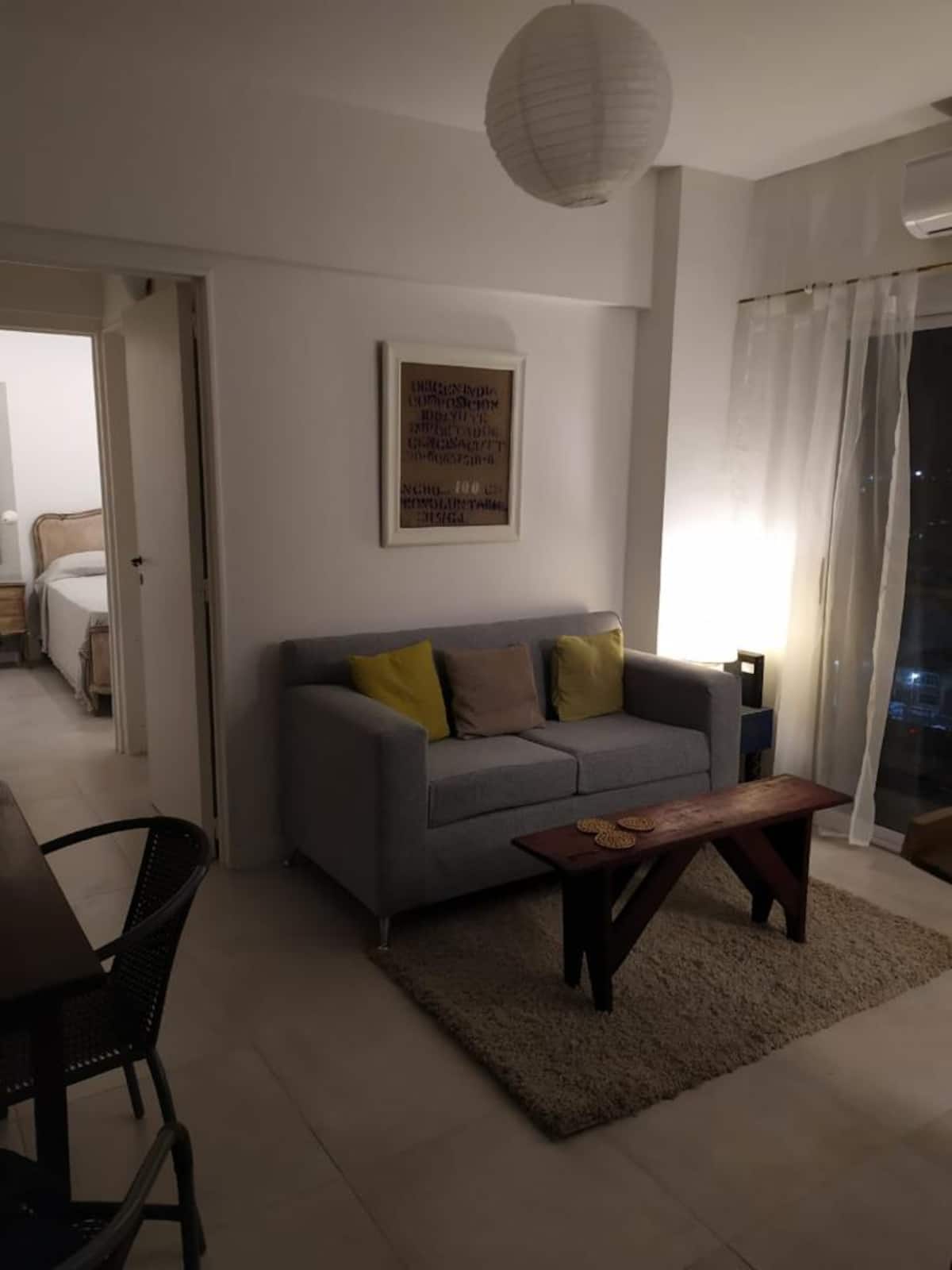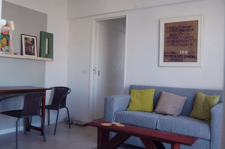 Apartamento novo em San Telmo, 30 m², com quarto, banheiro completo, cozinha completa e sala, além de uma varanda pequena. O imóvel tem TV e Wi-Fi, mas não tem TV a cabo; a televisão é do tipo Smart TV. Chaves podem ser buscadas em Recoleta ou Villa Crespo em caso de emergência ou quando não for possível coordenar.