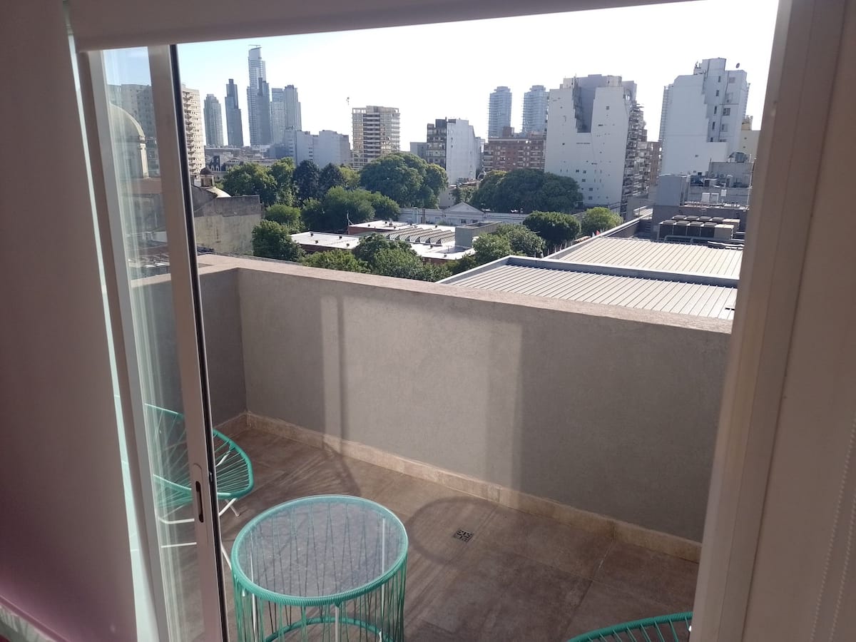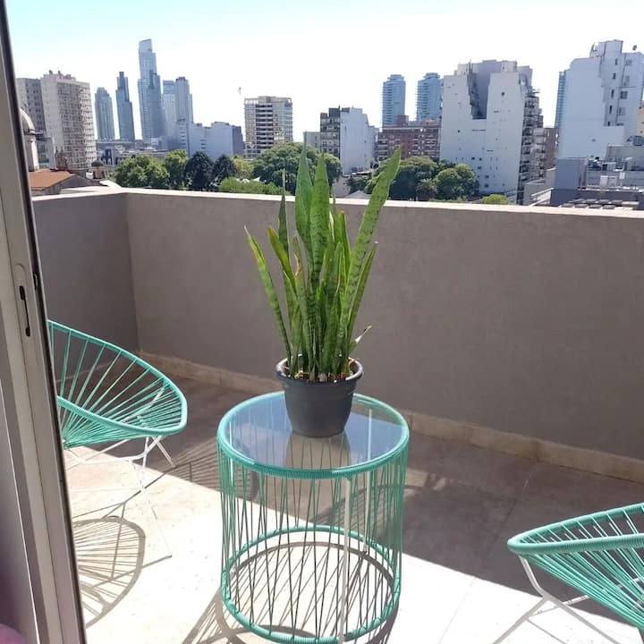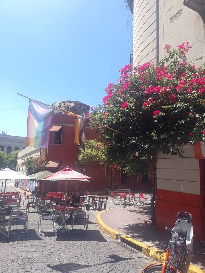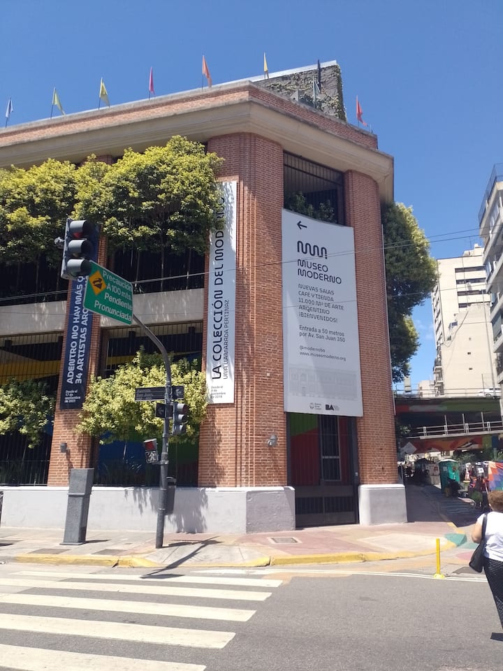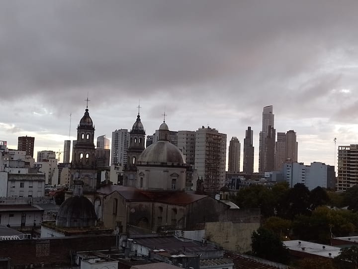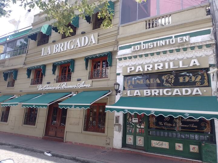 Apartamento em San Telmo com vista panorâmica. Fica em uma rua principal, a 1 quadra de Plaza Dorrego e a 4 quadras de Puerto Madero. O apartamento tem ar-condicionado para resfriar e aquecer e inclui smart TV, Wi-Fi, cafeteira elétrica, micro-ondas, torradeira elétrica, chaleira elétrica, ferro de passar roupas, secador de cabelo, fogão e forno. O acesso é por chave eletrônica, com elevador e hall. A hospedagem é limitada a no máximo 2 pessoas.