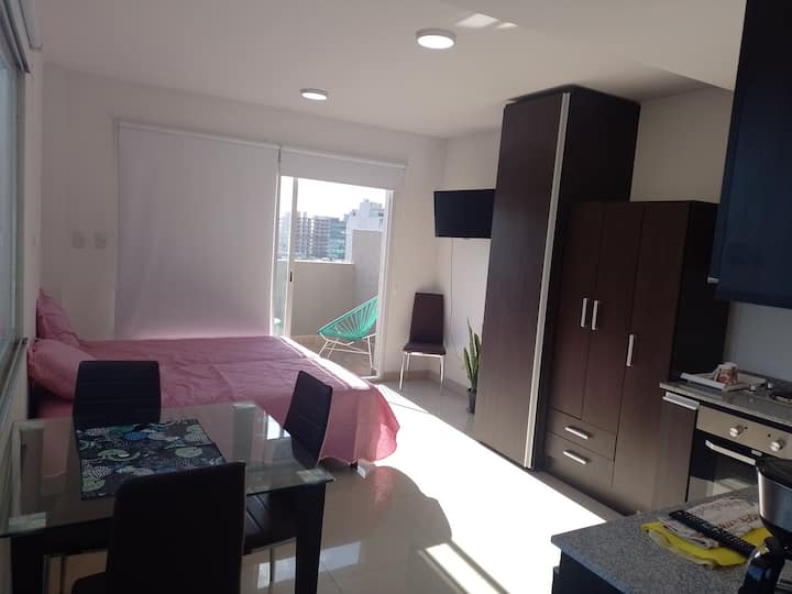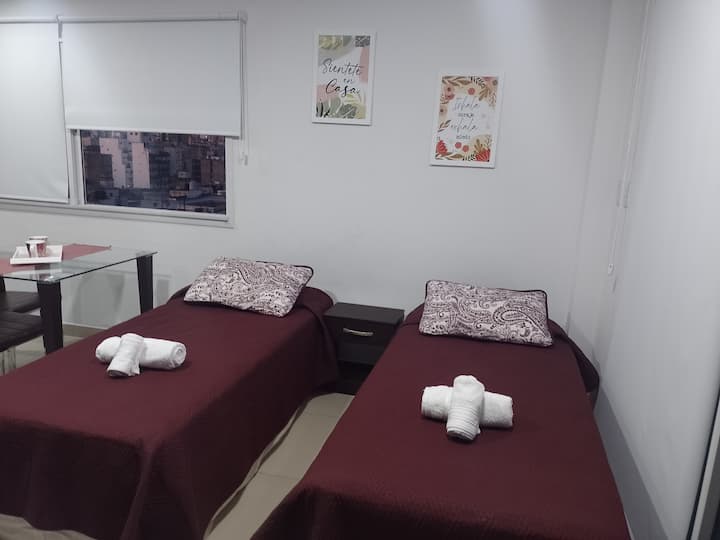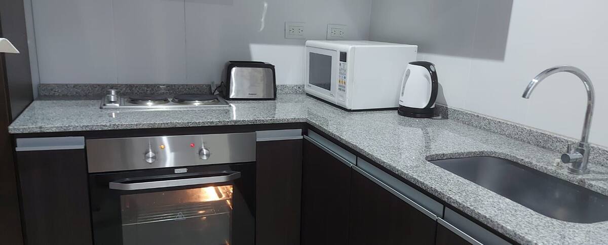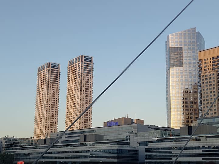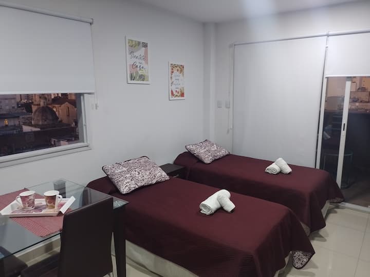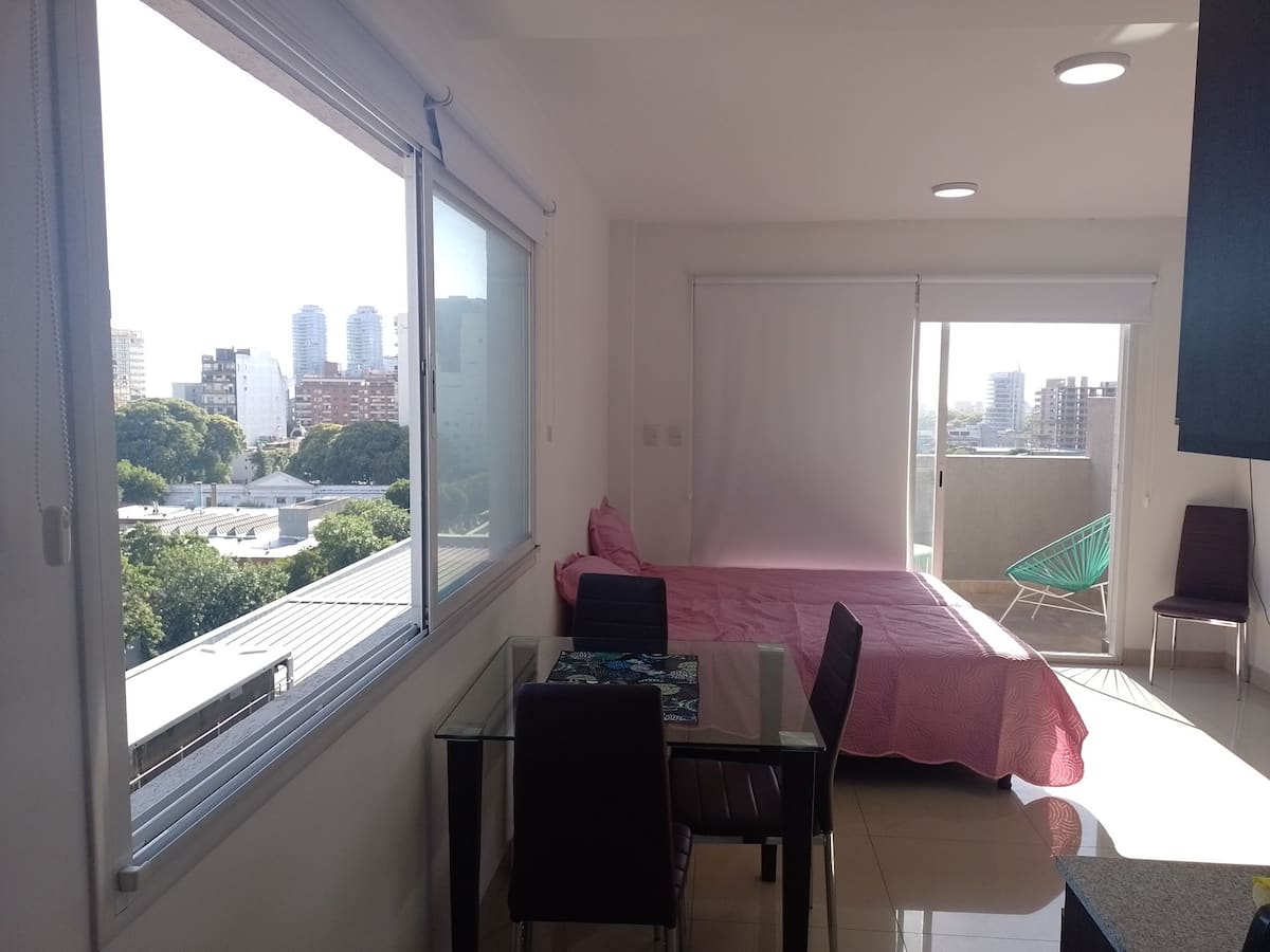 Apartamento em San Telmo com vista panorâmica. Fica em uma rua principal, a 1 quadra de Plaza Dorrego e a 4 quadras de Puerto Madero. O apartamento tem ar-condicionado para resfriar e aquecer e inclui smart TV, Wi-Fi, cafeteira elétrica, micro-ondas, torradeira elétrica, chaleira elétrica, ferro de passar roupas, secador de cabelo, fogão e forno. O acesso é por chave eletrônica, com elevador e hall. A hospedagem é limitada a no máximo 2 pessoas.