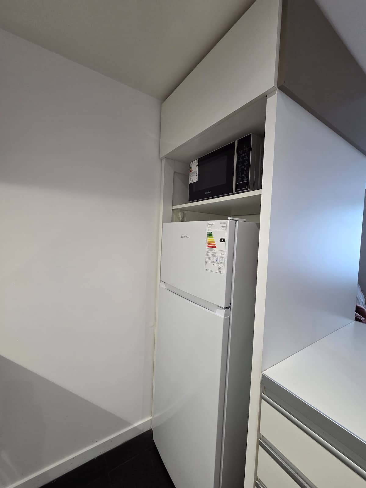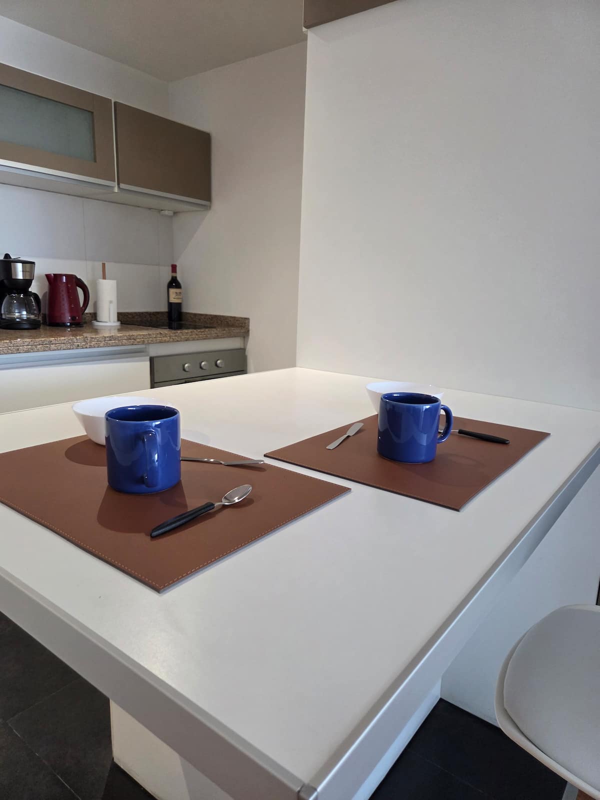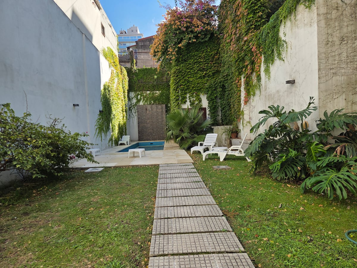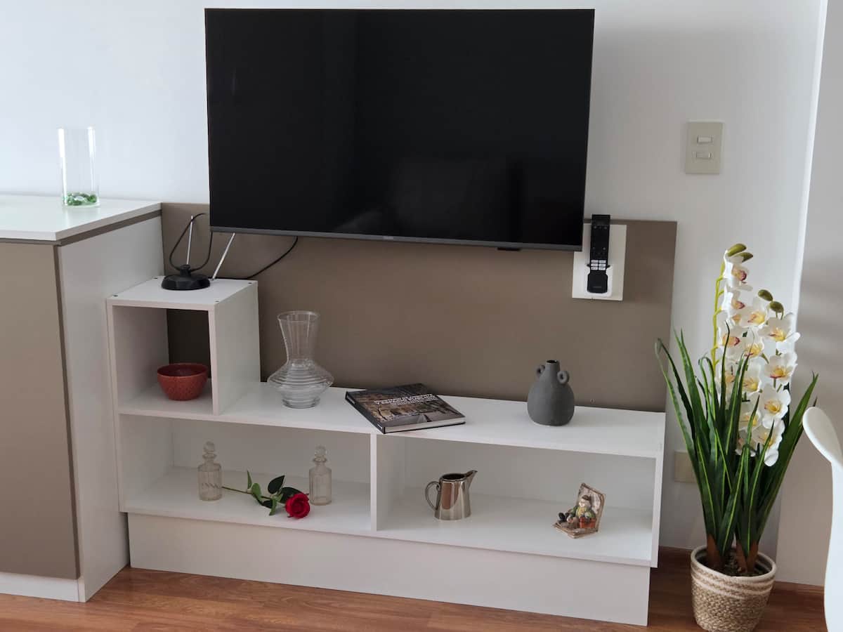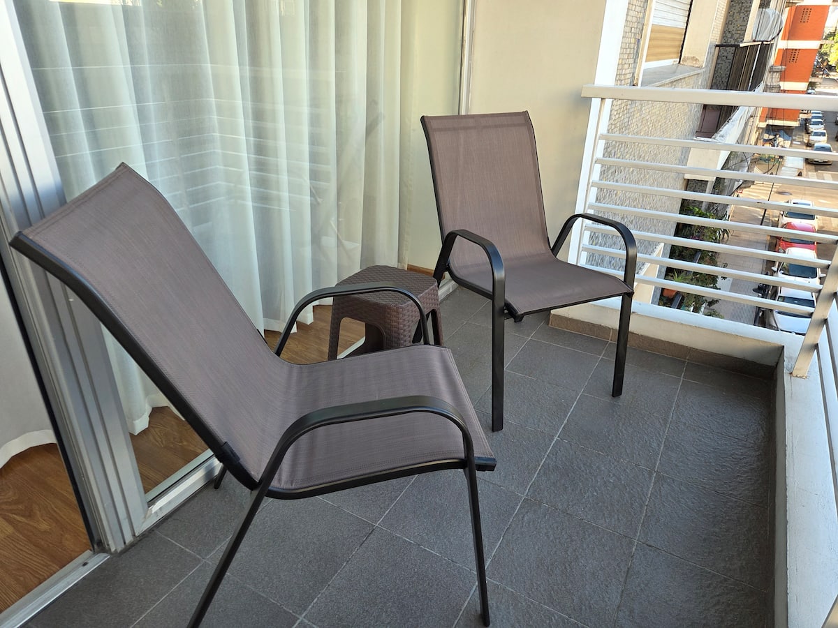 Apartamento de 38 m² em San Telmo, com 1 quarto e mobiliado. Inclui cama king-size e TV LED de 43 polegadas. Possui varanda com vista para a rua. O condomínio tem câmeras de segurança, área de lavanderia, jardim e piscina.