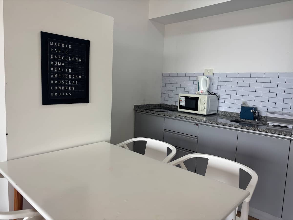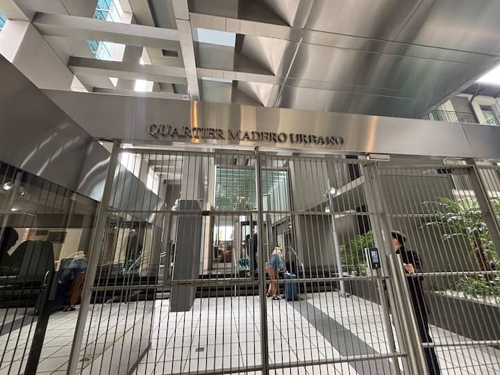 Apartamento em prédio Quartier, em San Telmo. O edifício oferece segurança 24 horas, piscina, sauna e jacuzzi. A unidade é descrita como equipada para estadias temporárias.