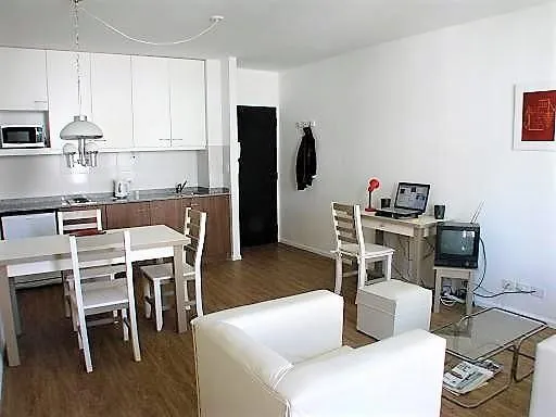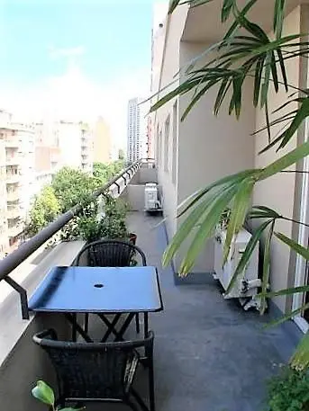 Apartamento de dois ambientes mobiliado em San Telmo, com 44 m² cobertos e varanda. A unidade tem living com cozinha integrada, varanda corrida, corredor, banheiro completo e 1 dormitório. O apartamento possui pisos laminados, pé-direito de 2,6 m e aquecimento e água quente centrais por caldeira, além de ar-condicionado split frio e quente. O condomínio está incluído no aluguel.